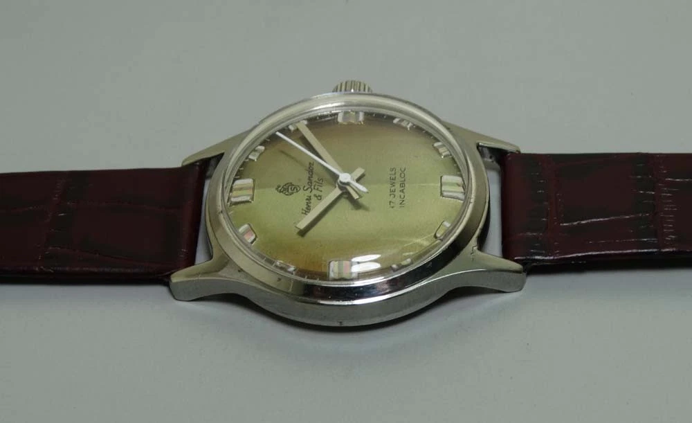Superb Vintage Henri Sandoz Winding Mens Swiss Wrist Watch Old r722 Used Antique