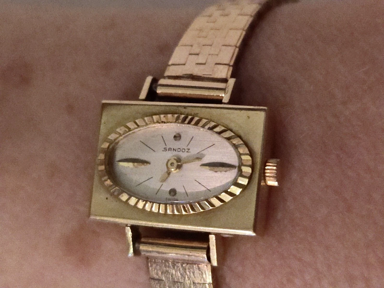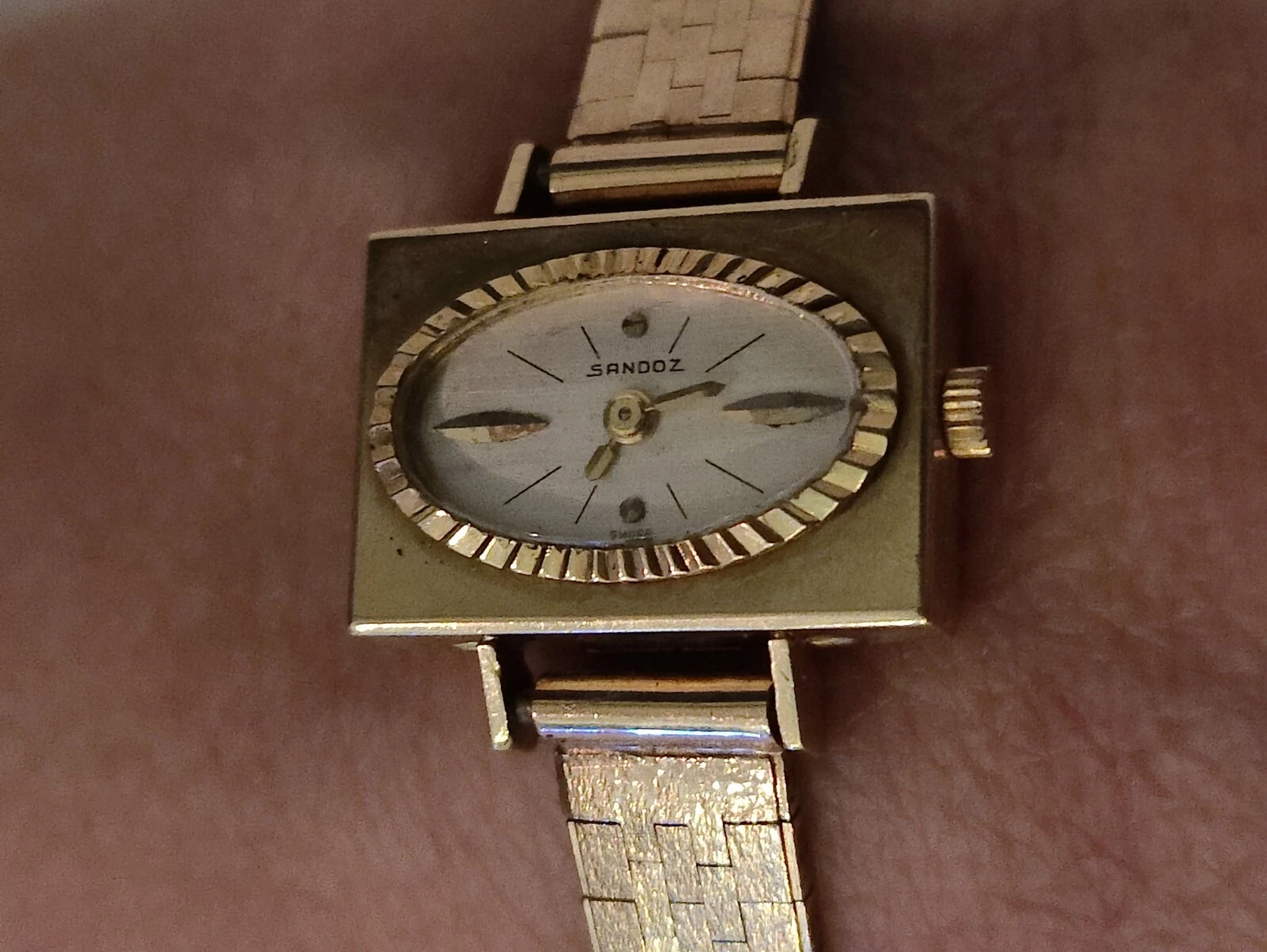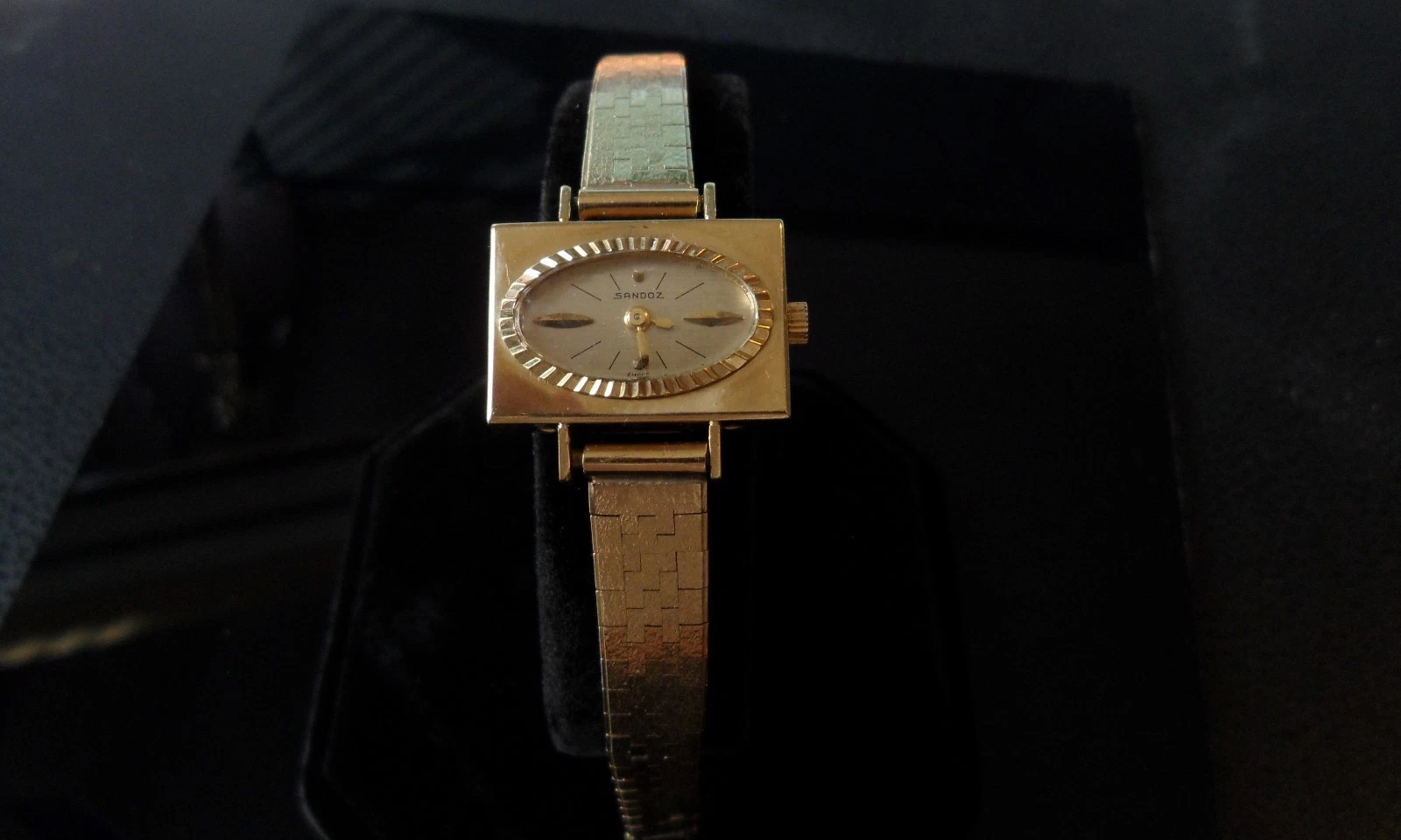 1940's VINTAGE SANDOZ 18K YG Women's Watch, SAPHIRE, Mechanical, 12-hour Dial.