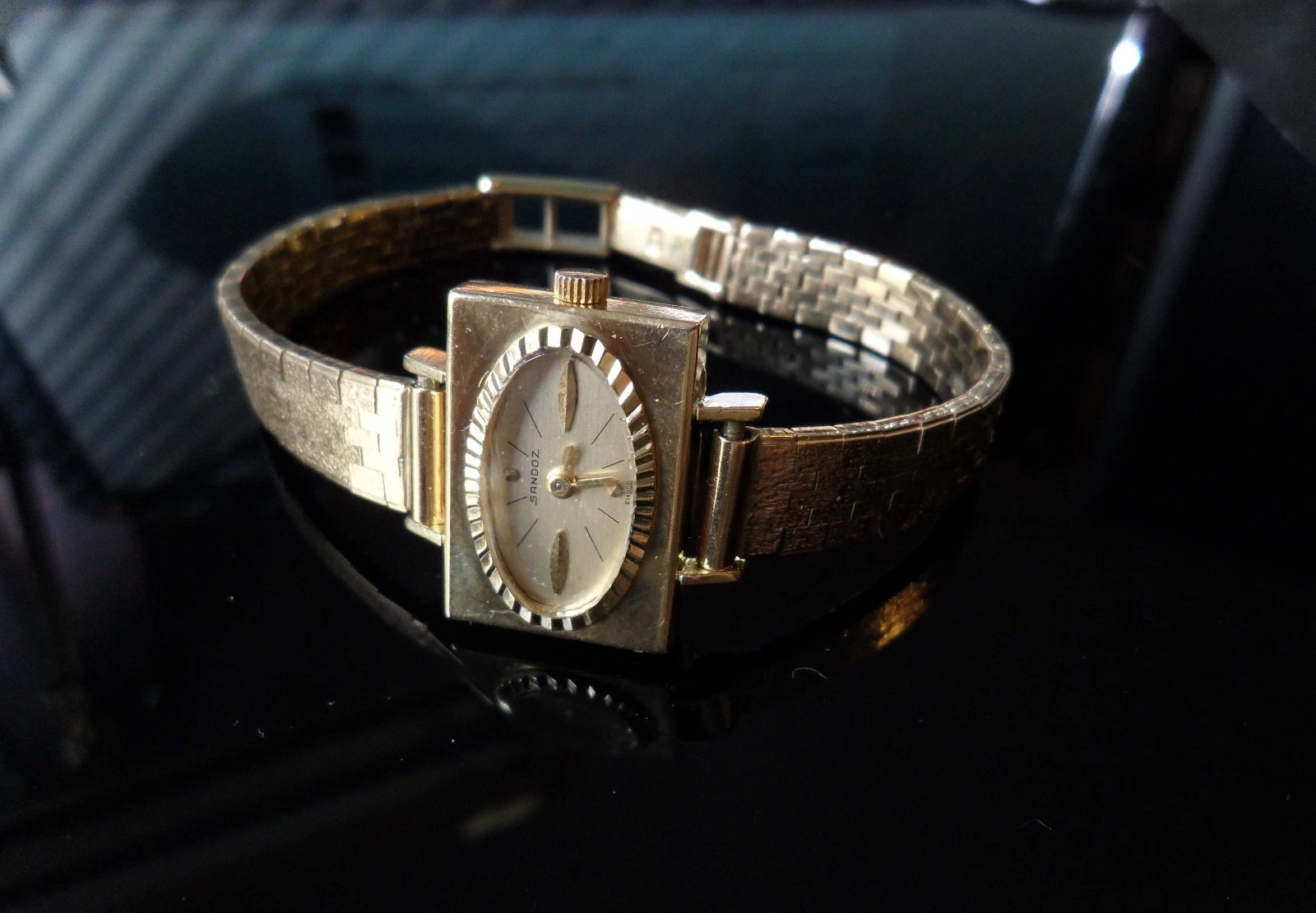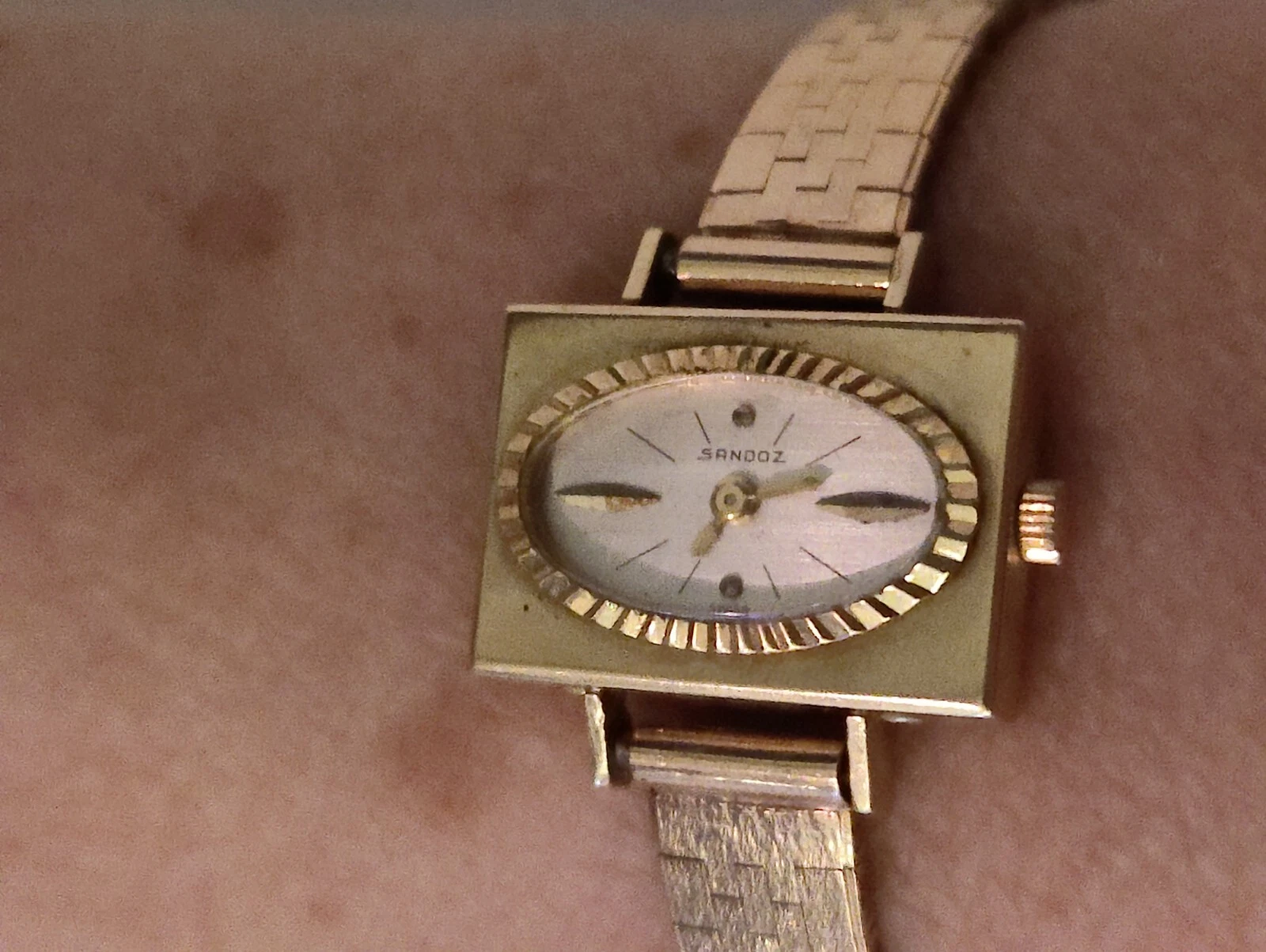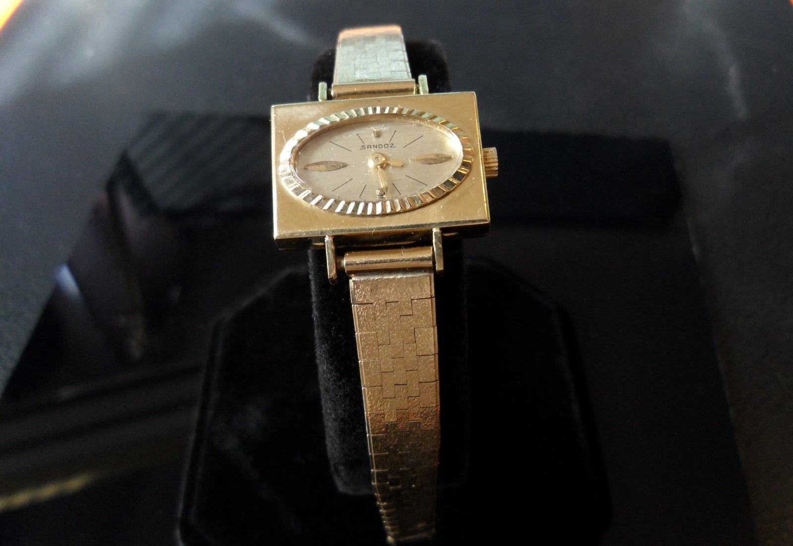 1940's VINTAGE SANDOZ 18K YG Women's Watch, SAPHIRE, Mechanical, 12-hour Dial.