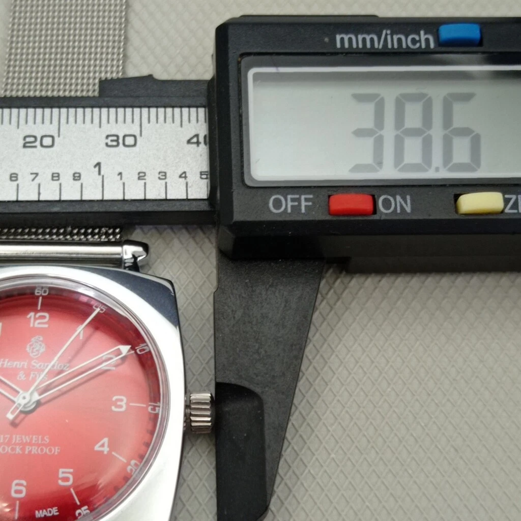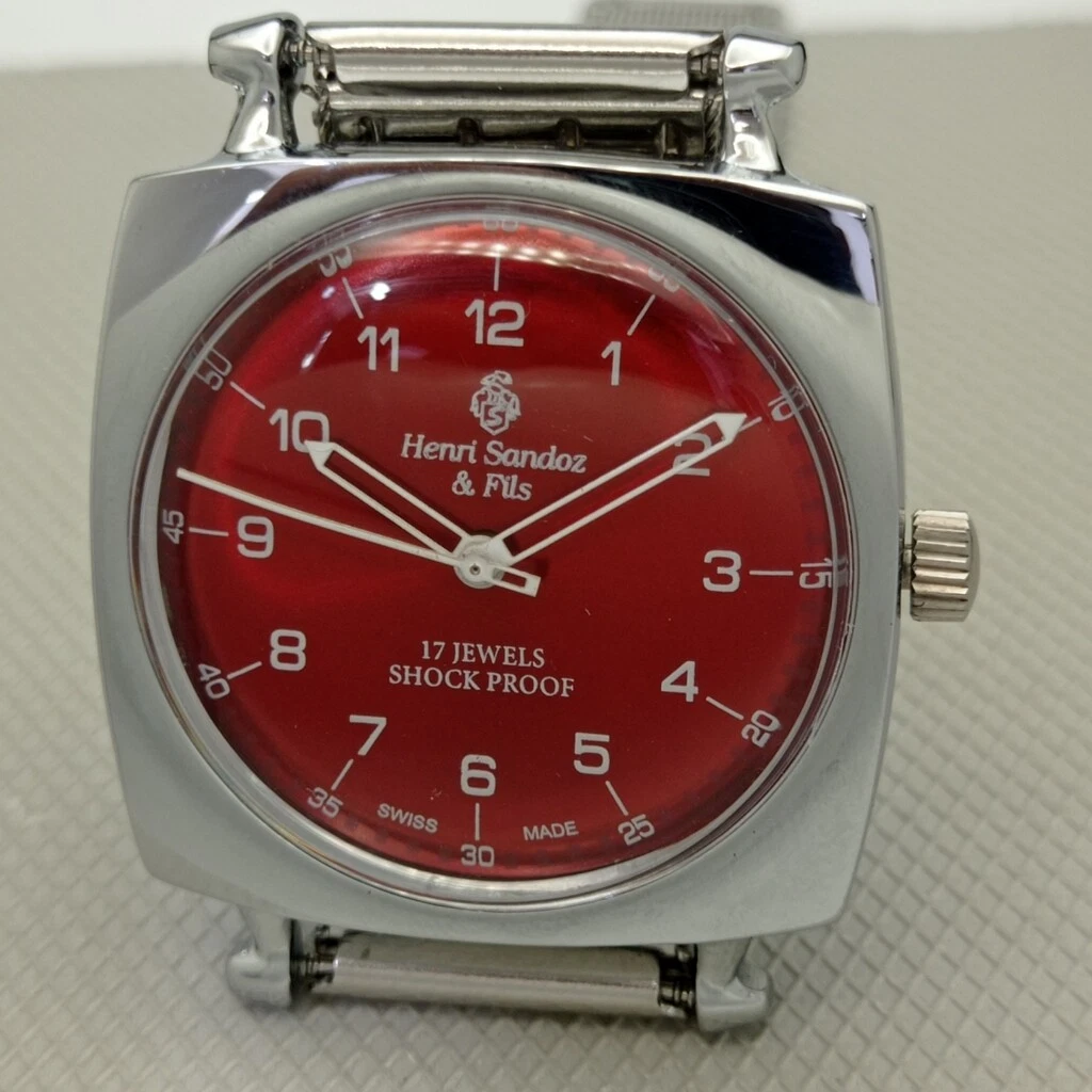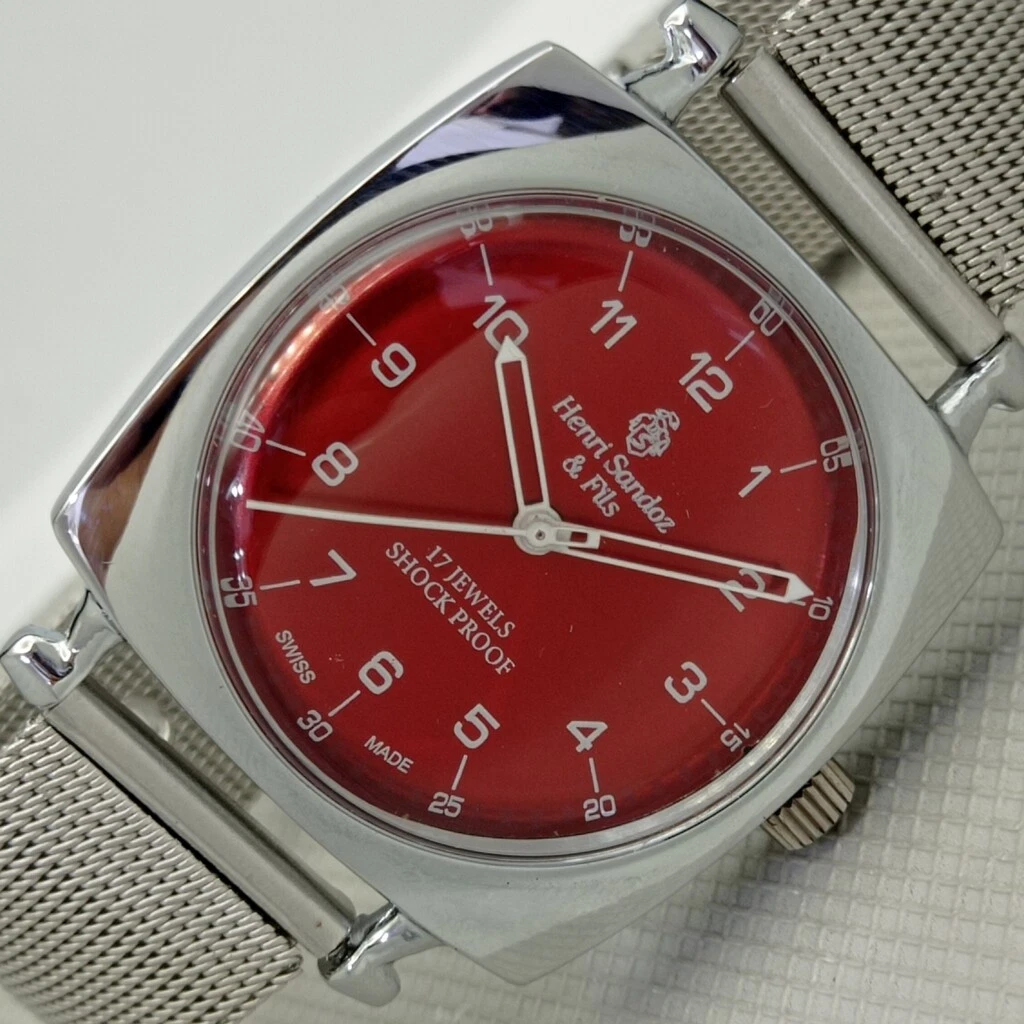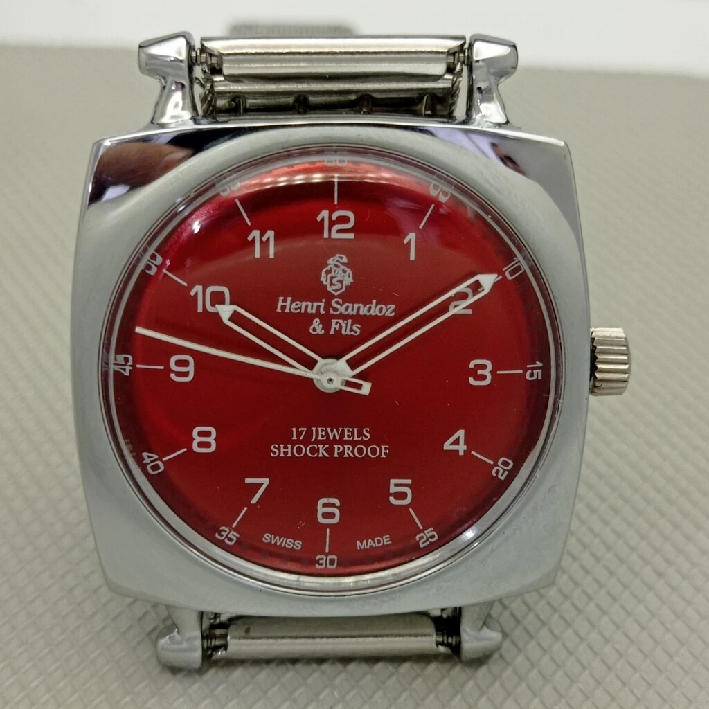 VINTAGE HENRI SANDOZ & FILS SWISS HAND-WINDING MENS RED COLOR DIAL WATCH a116-U