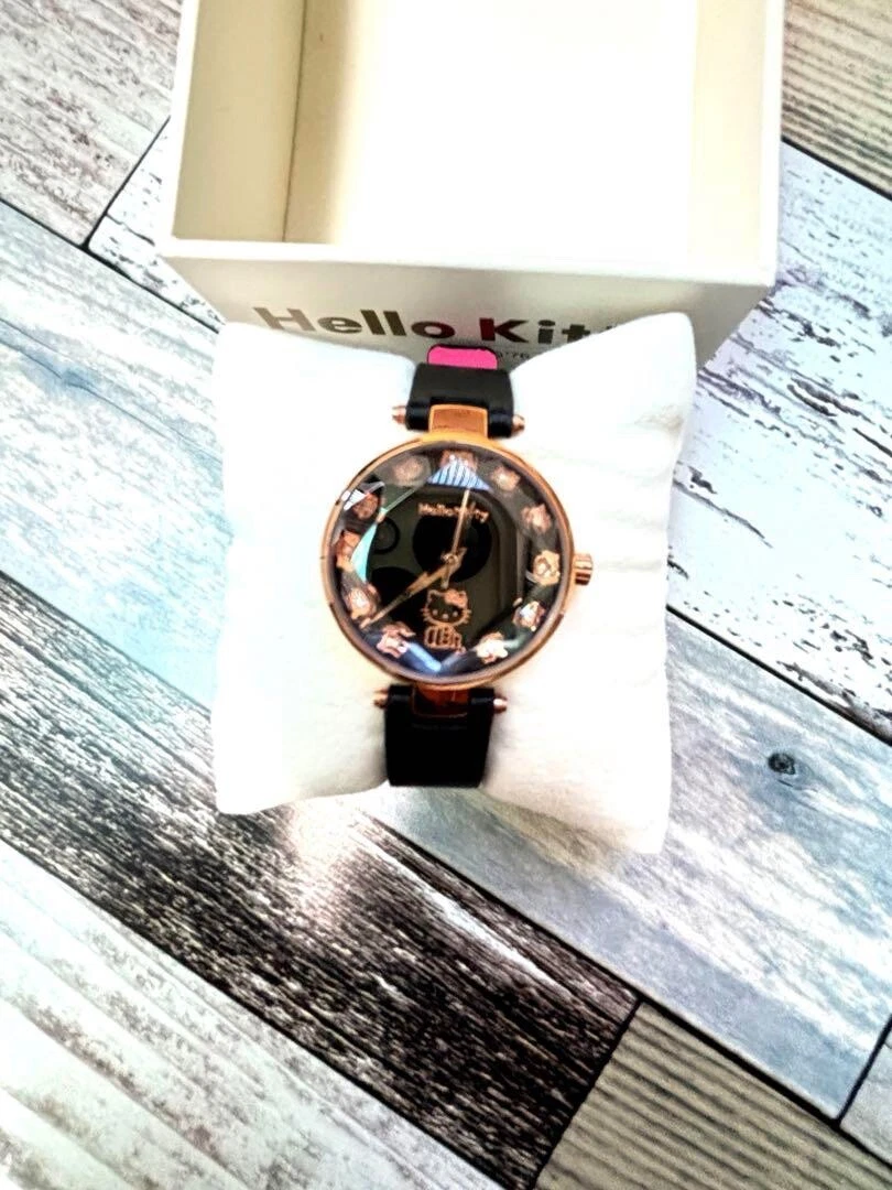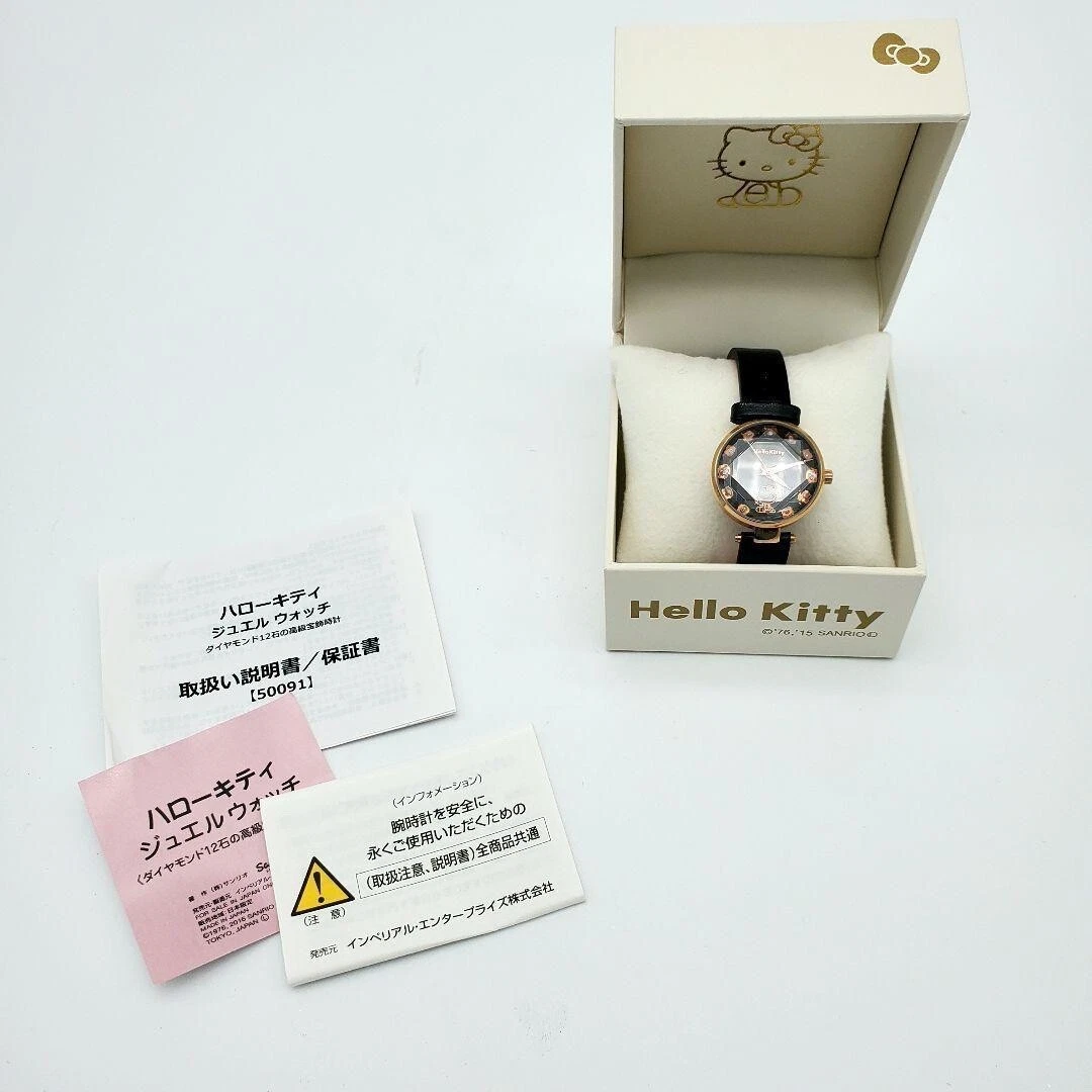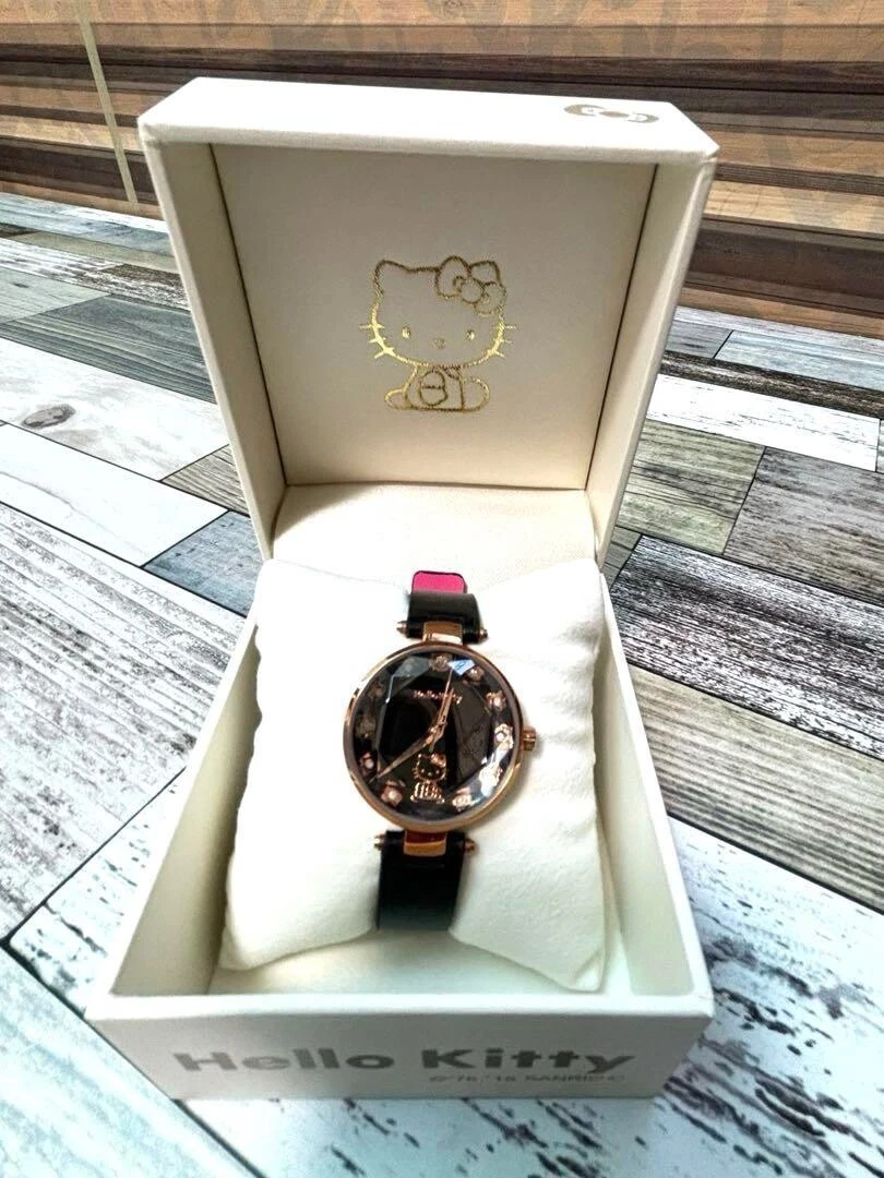 Hello kitty 12 Diamonds Kawaii Black wristwatch Women Sanrio Unused Box