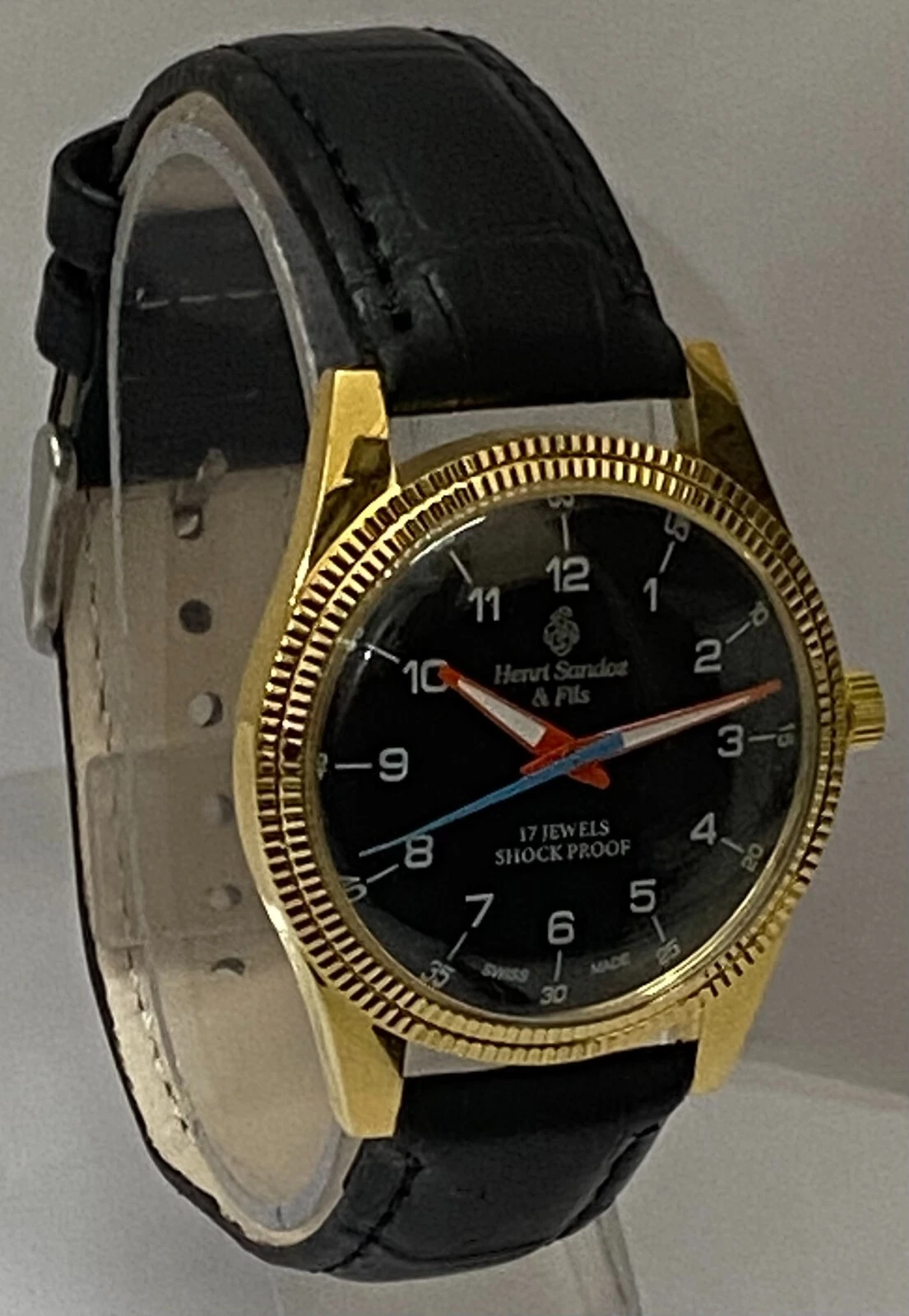 For Sale Henri Sandoz 17 Jewels Black Dial Hand Winding 17 Jewels Wrist Watch