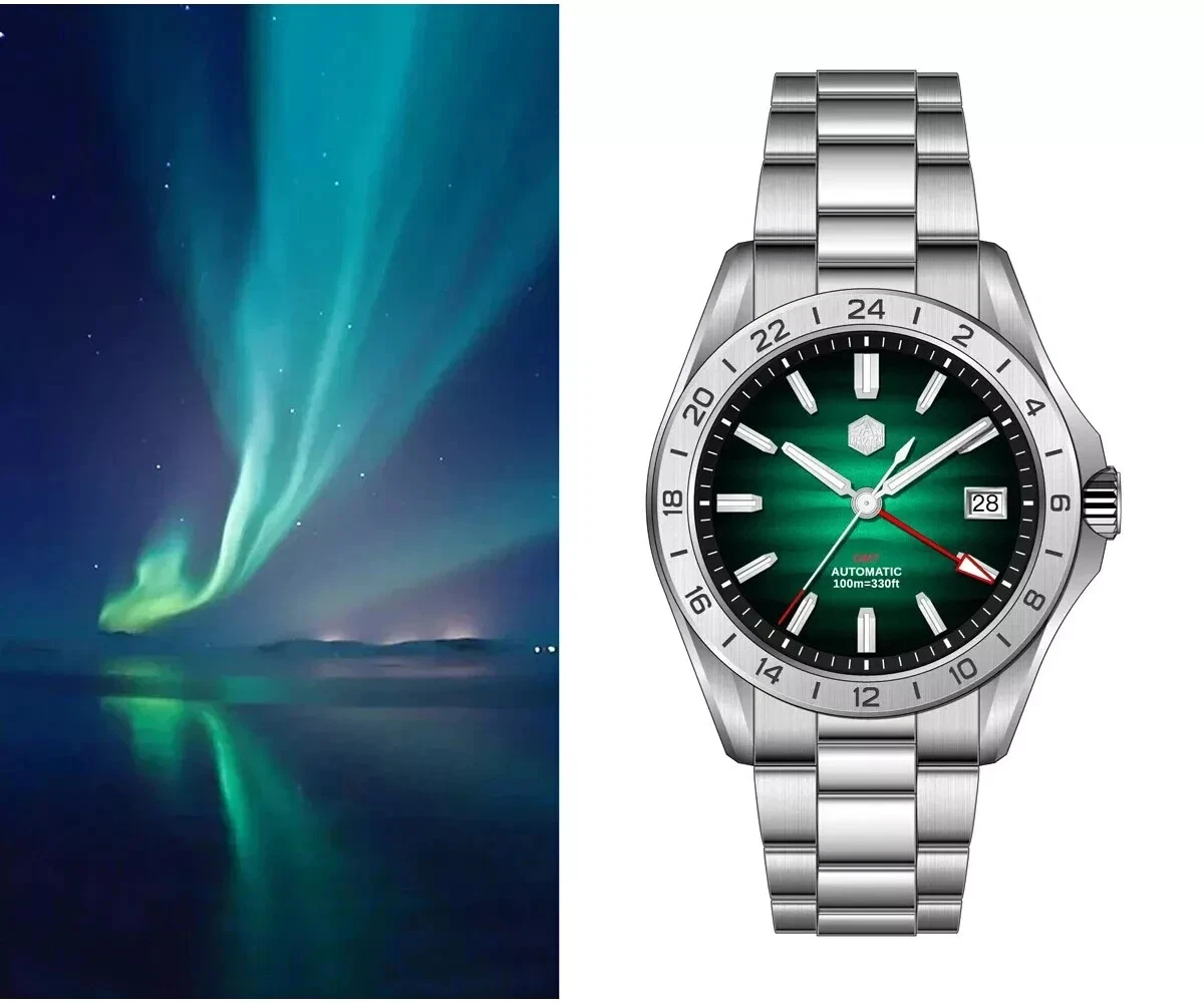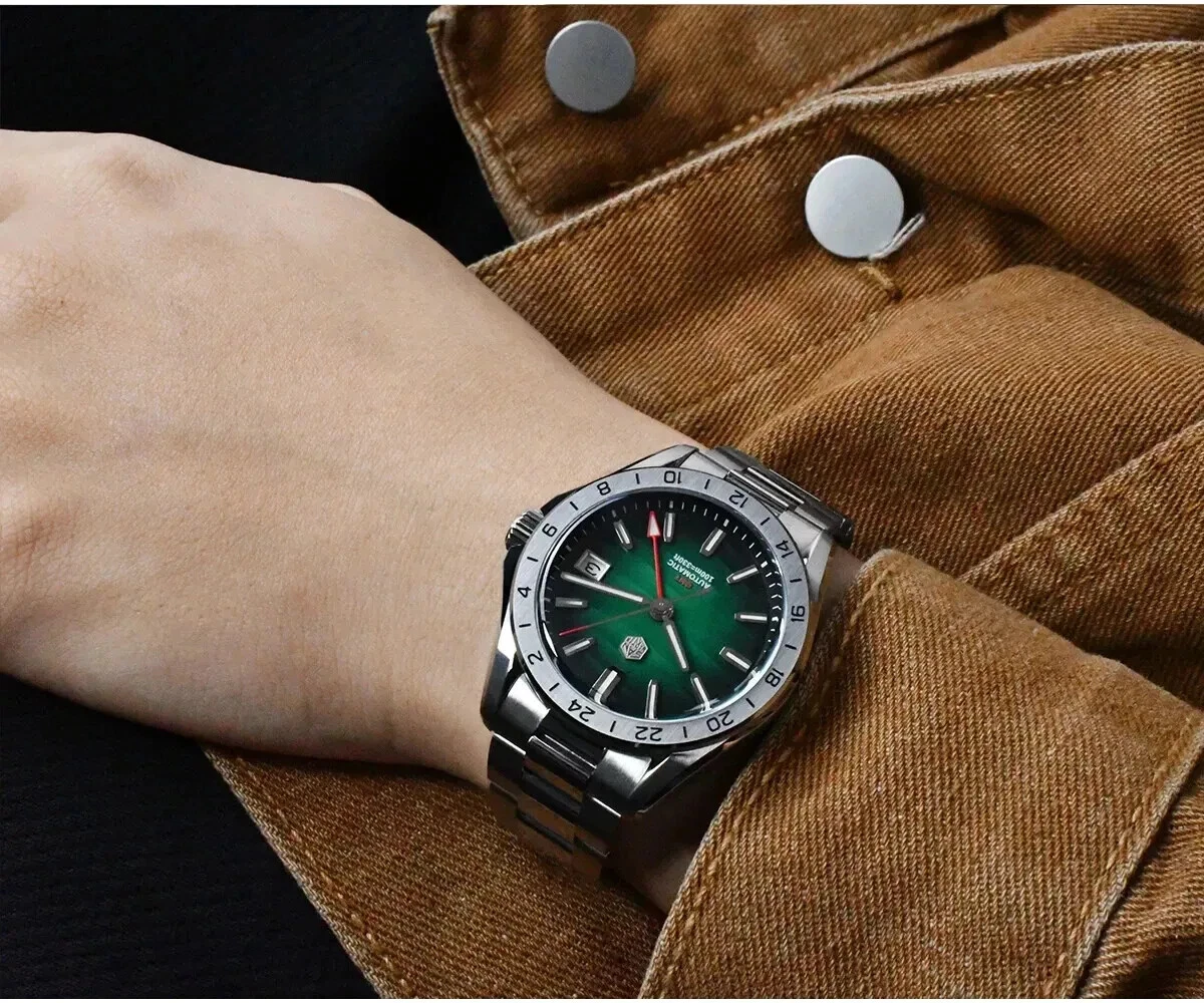 New 2024 San Martin Green Sand GMT Watch 39mm Automatic Steel 100M Seiko NH34