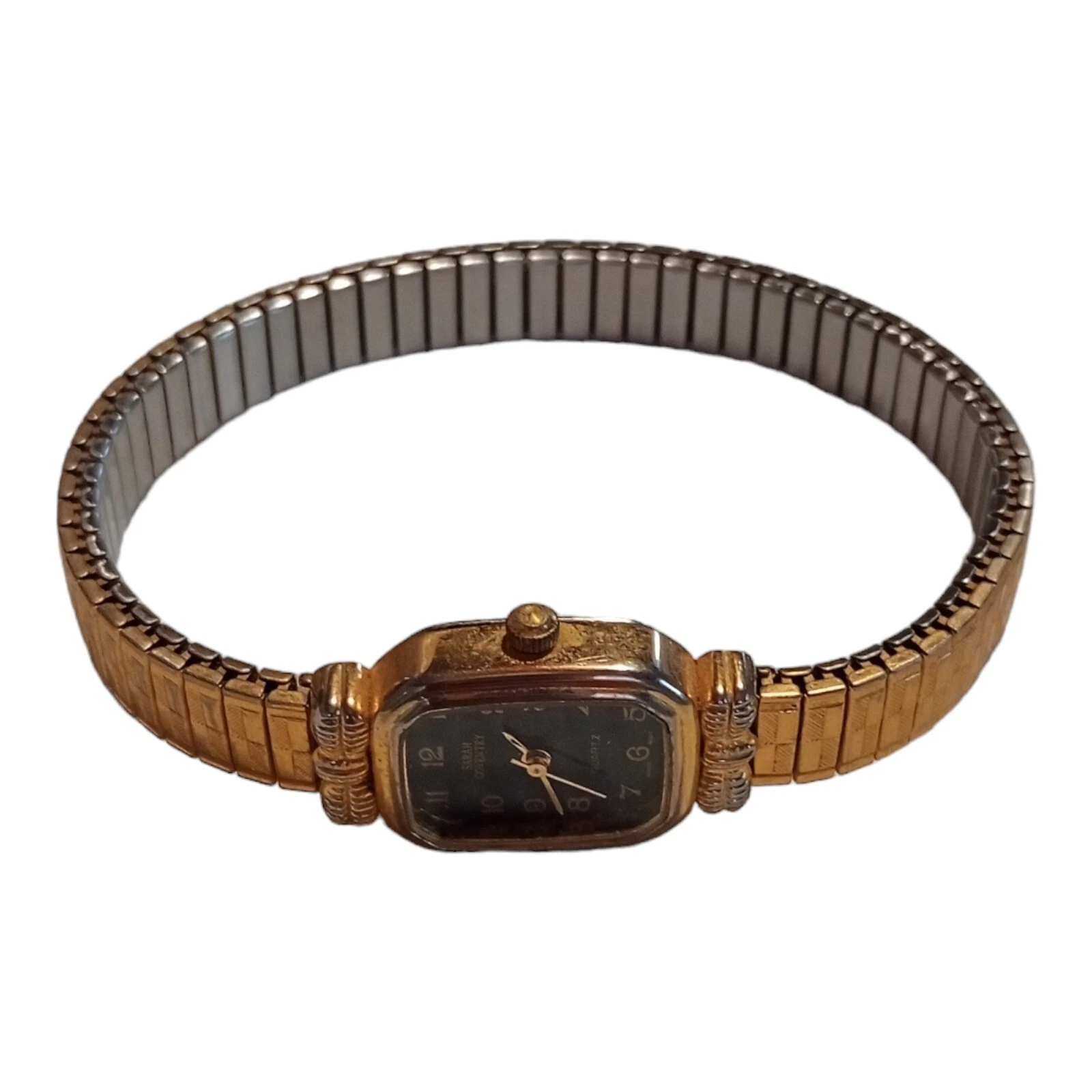 Vintage Sarah Coventry Plus Stretch Band Bezel Gold Tone Stainless Steel Watch