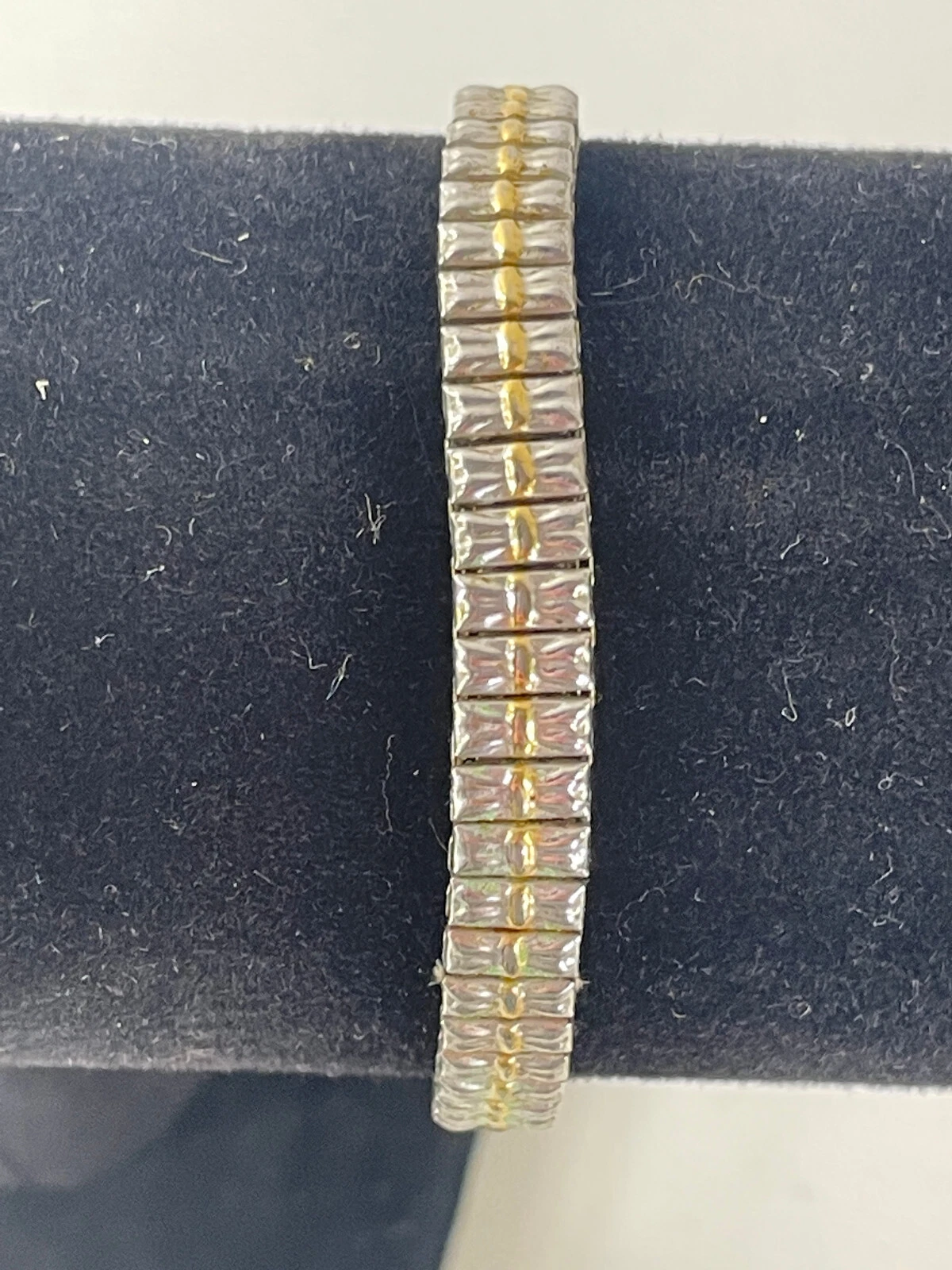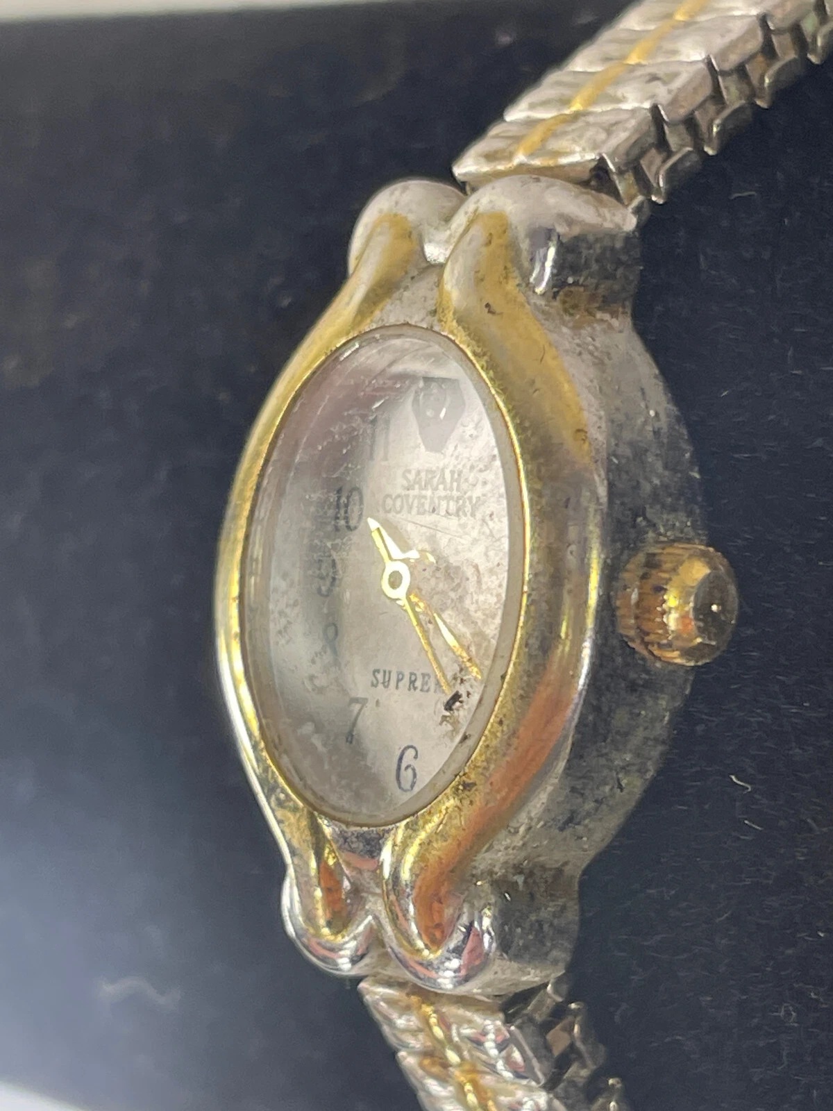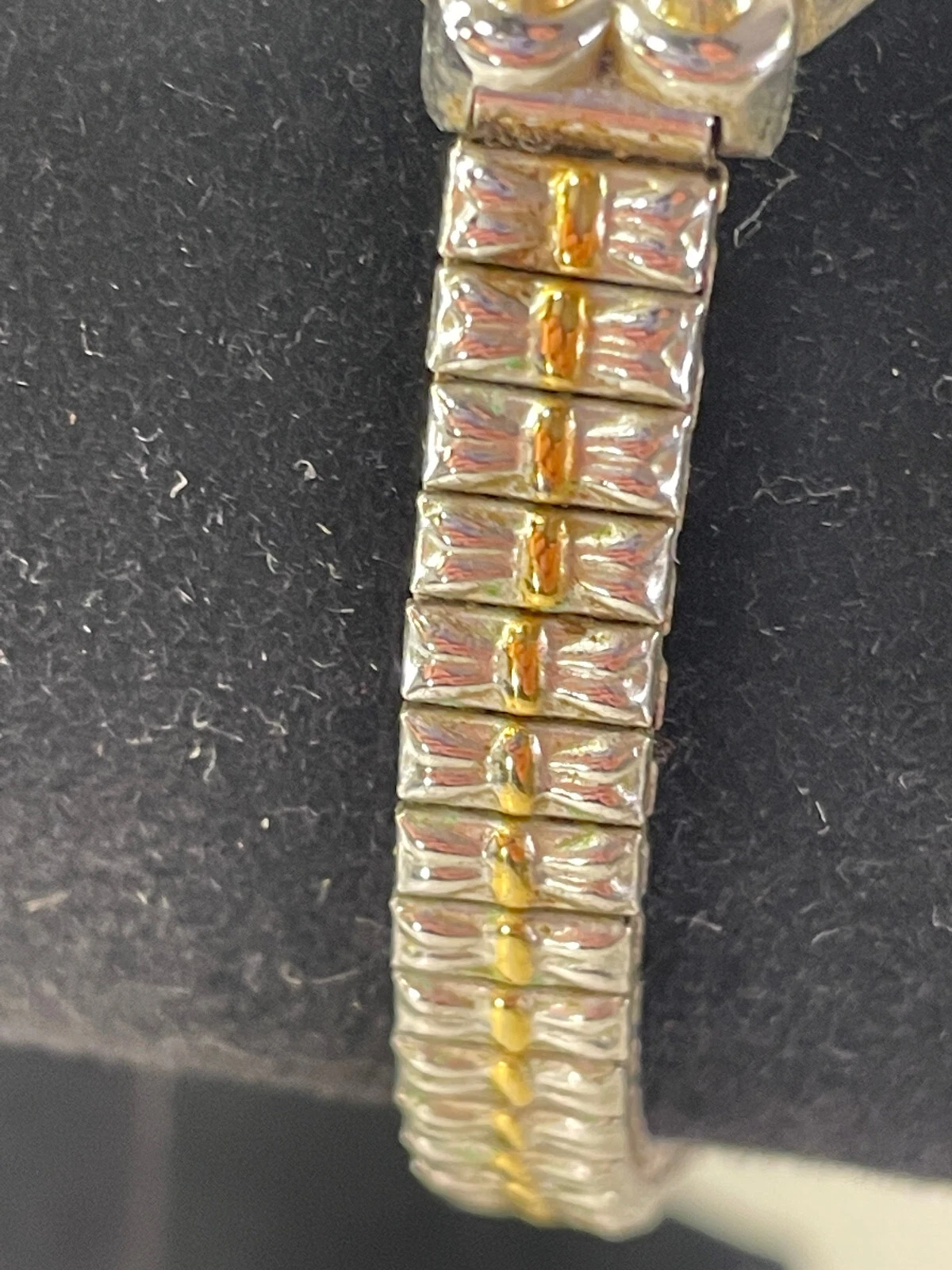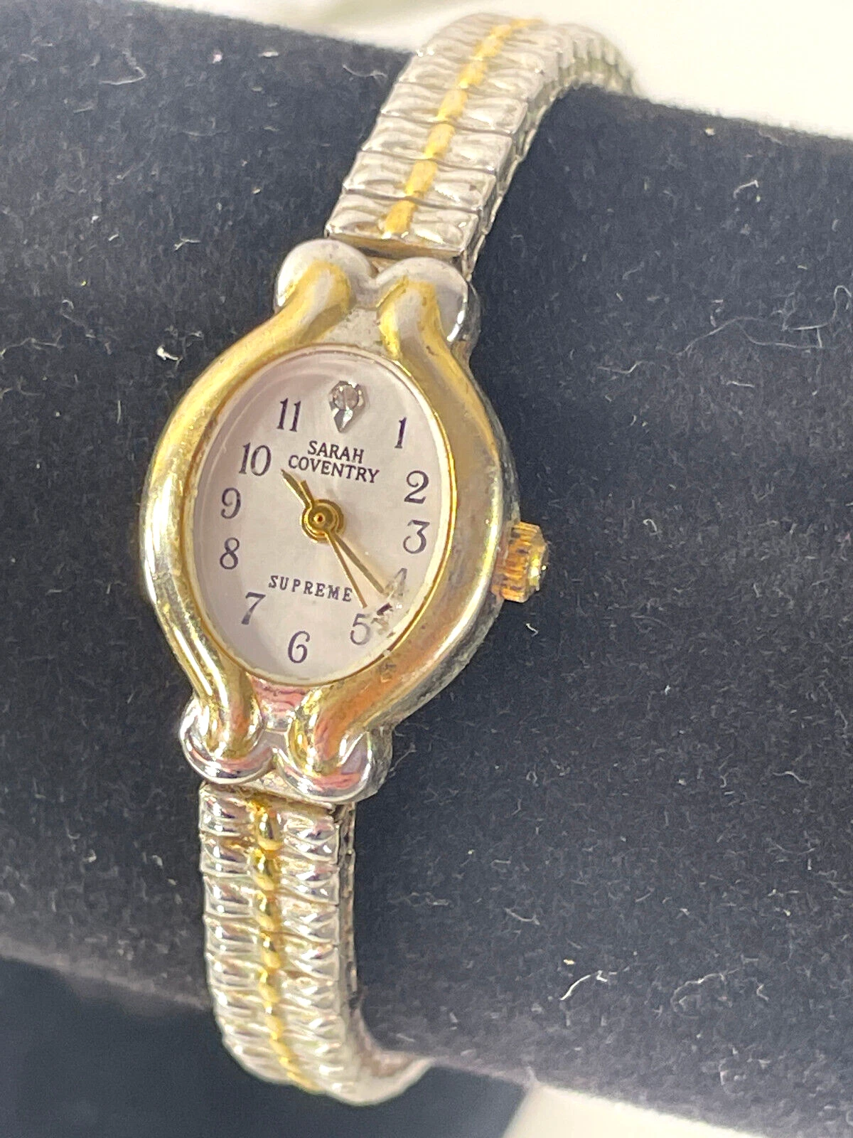 Sarah Coventry Supreme Silver Tone Dial Two Tone Stretch Band Watch NEEDS BAT.