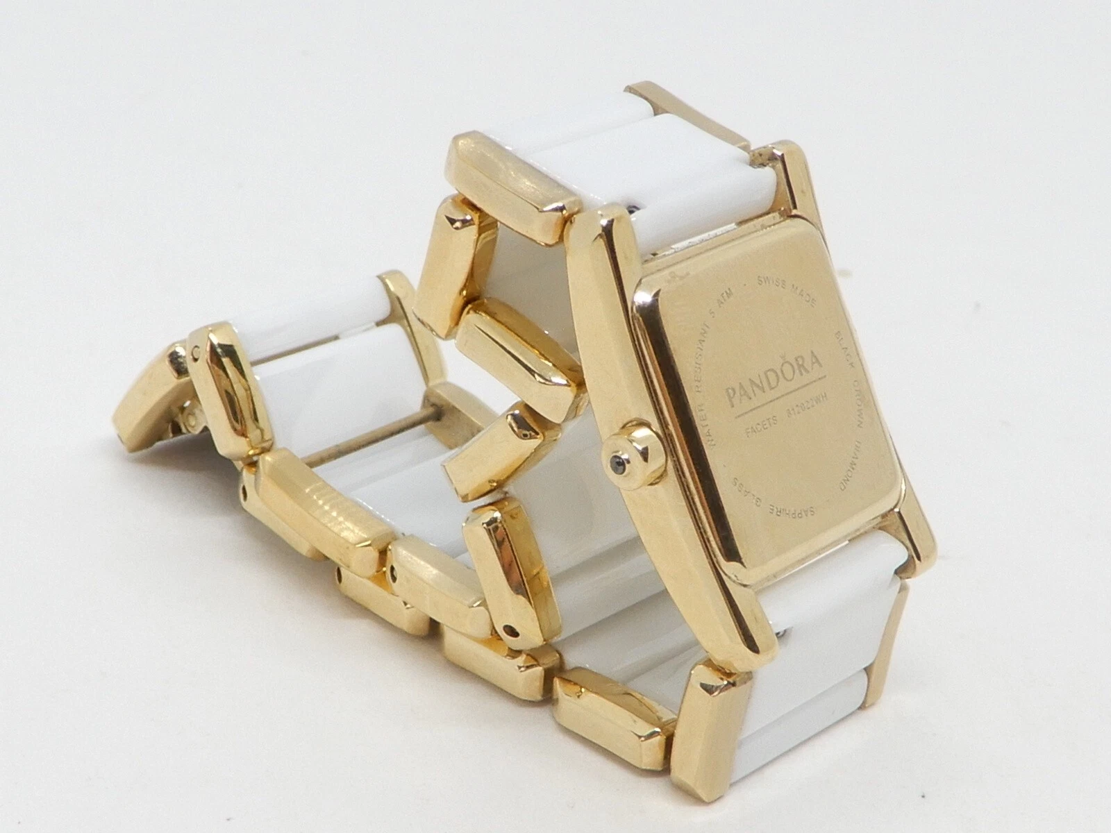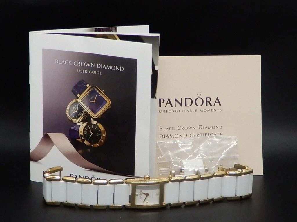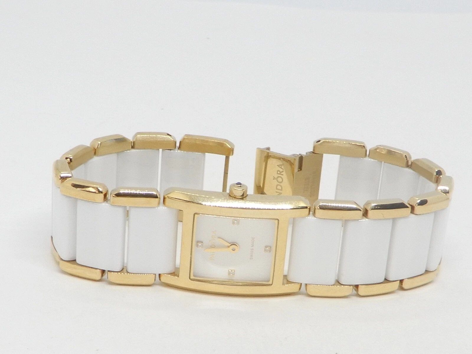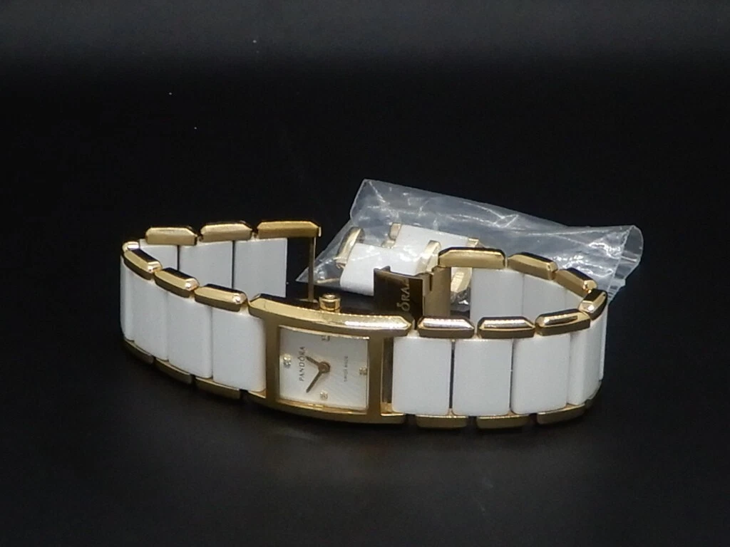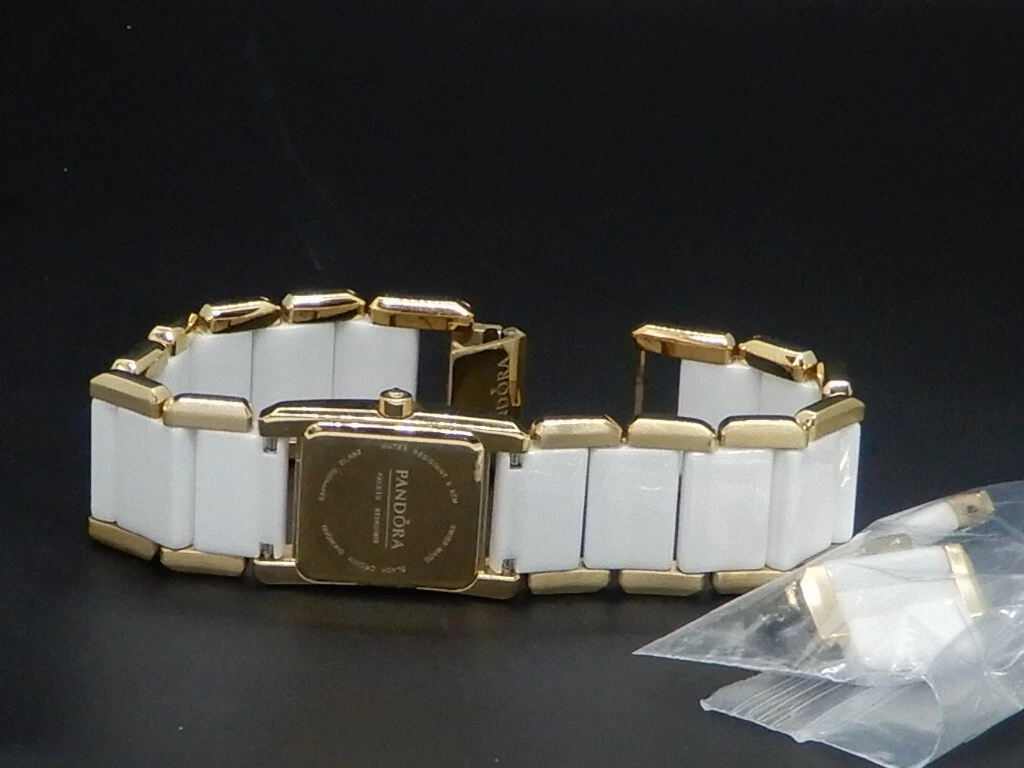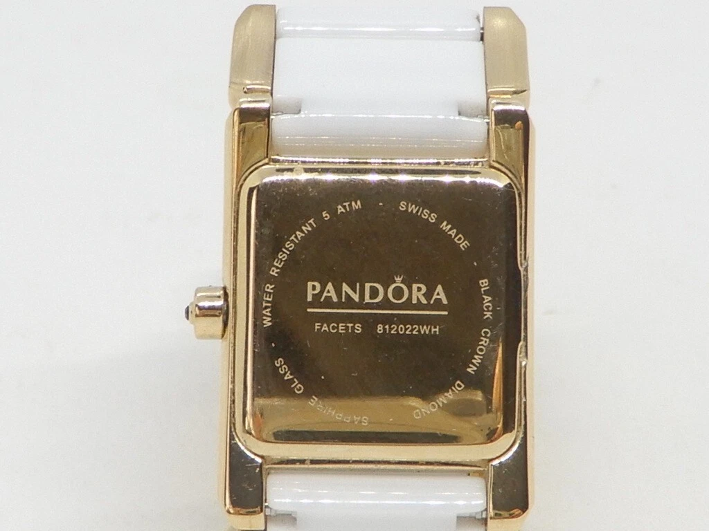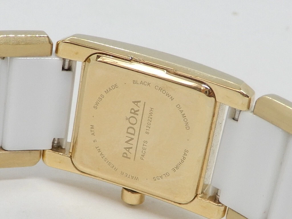 Pandora Facets 812022WH Gold Plated Ladies Swiss Watch Ceramic Band With Diamond