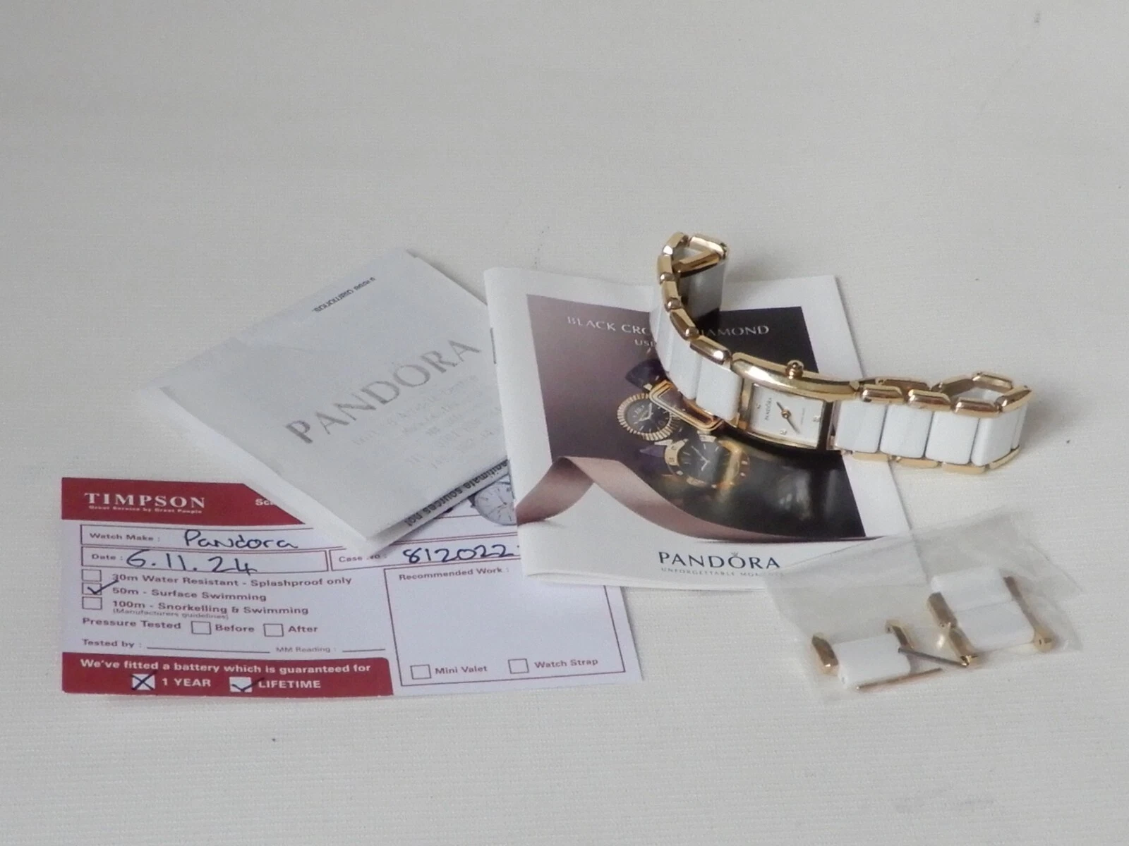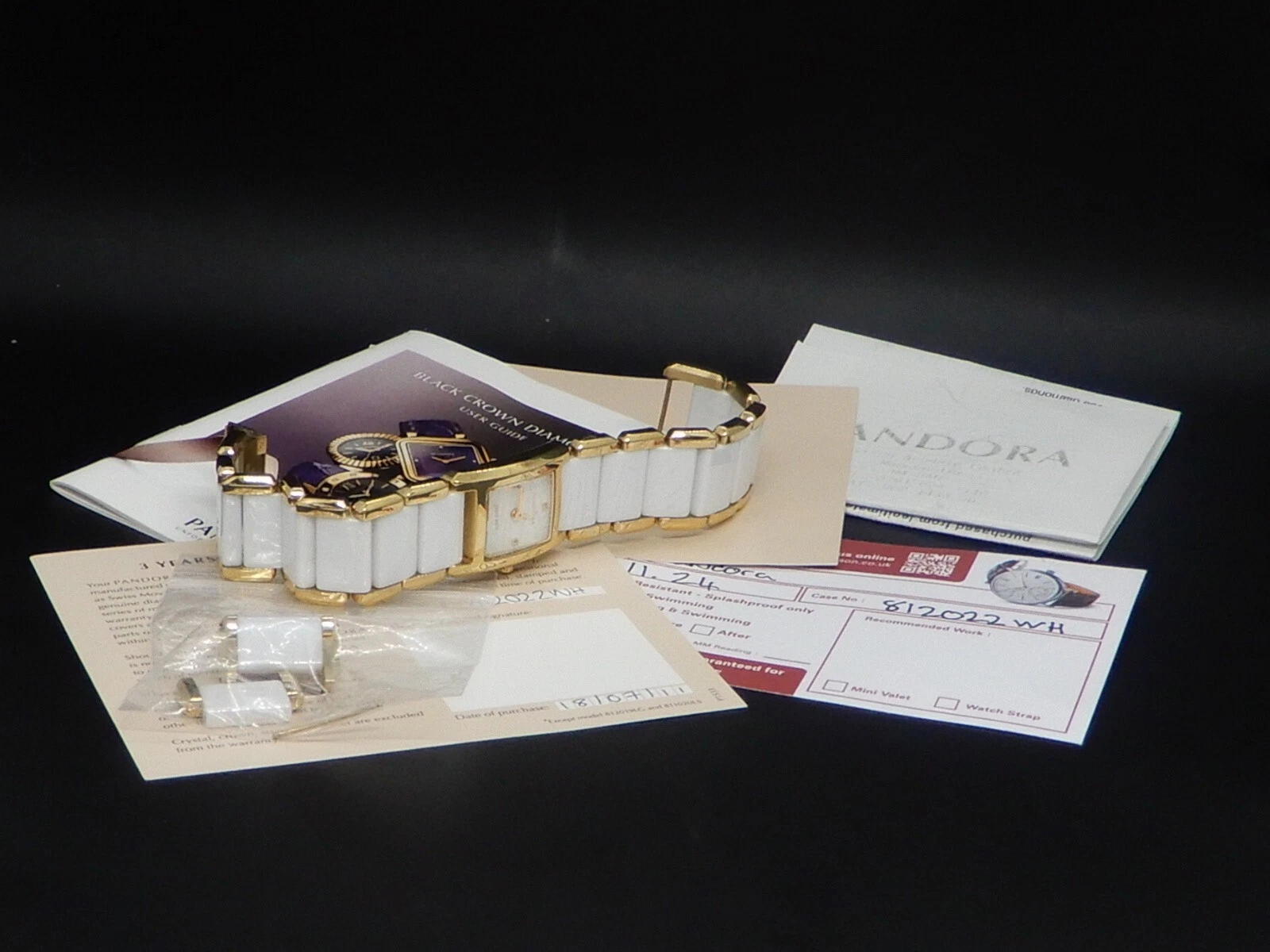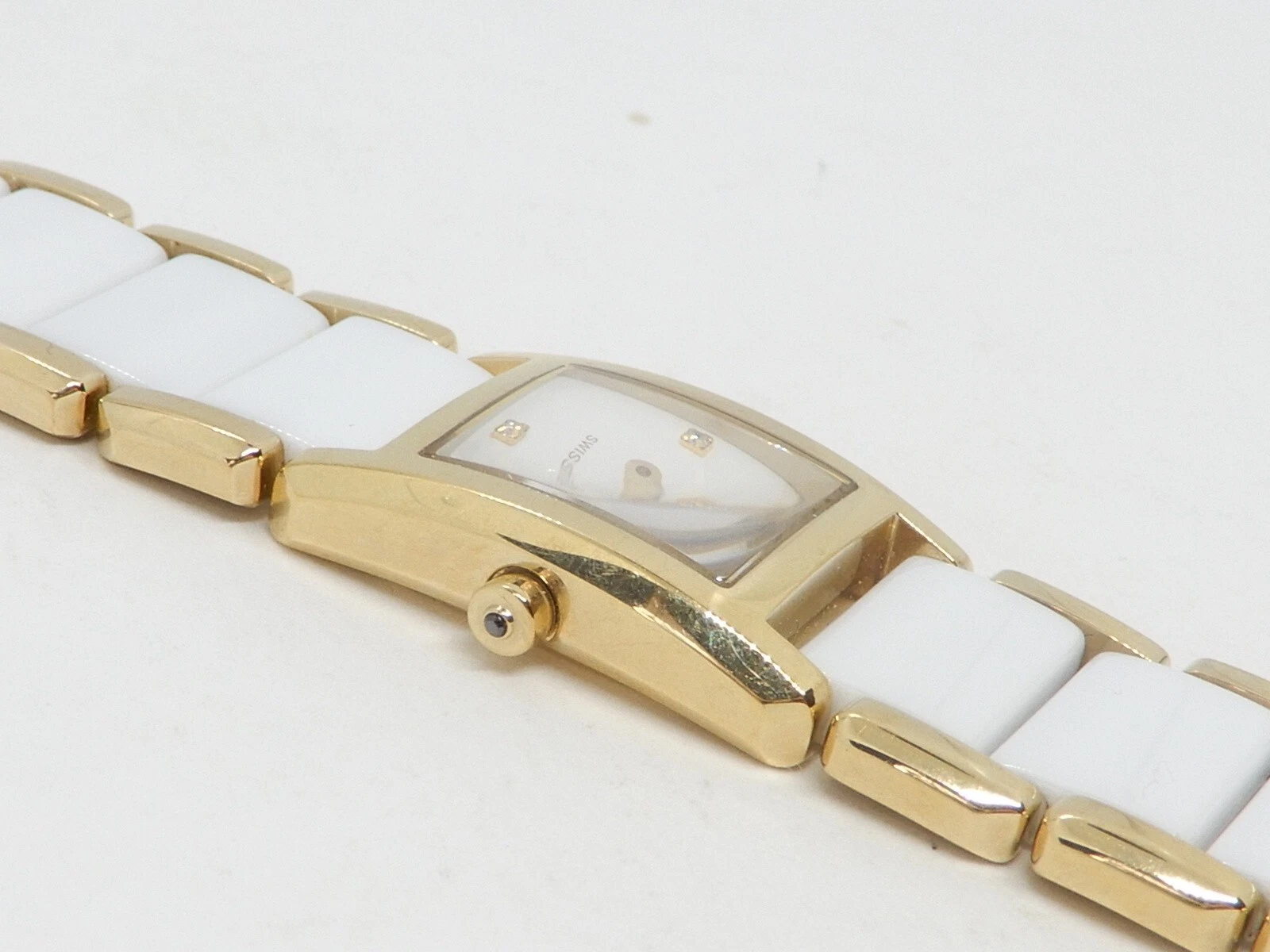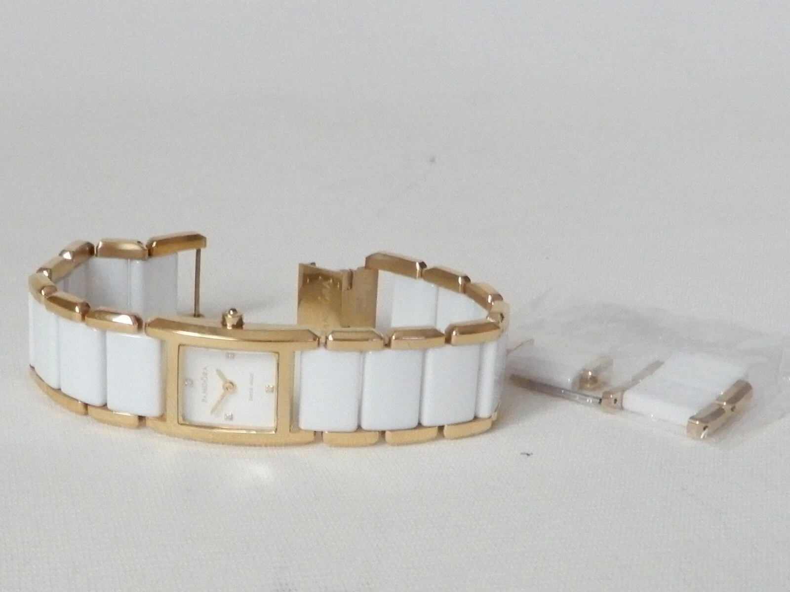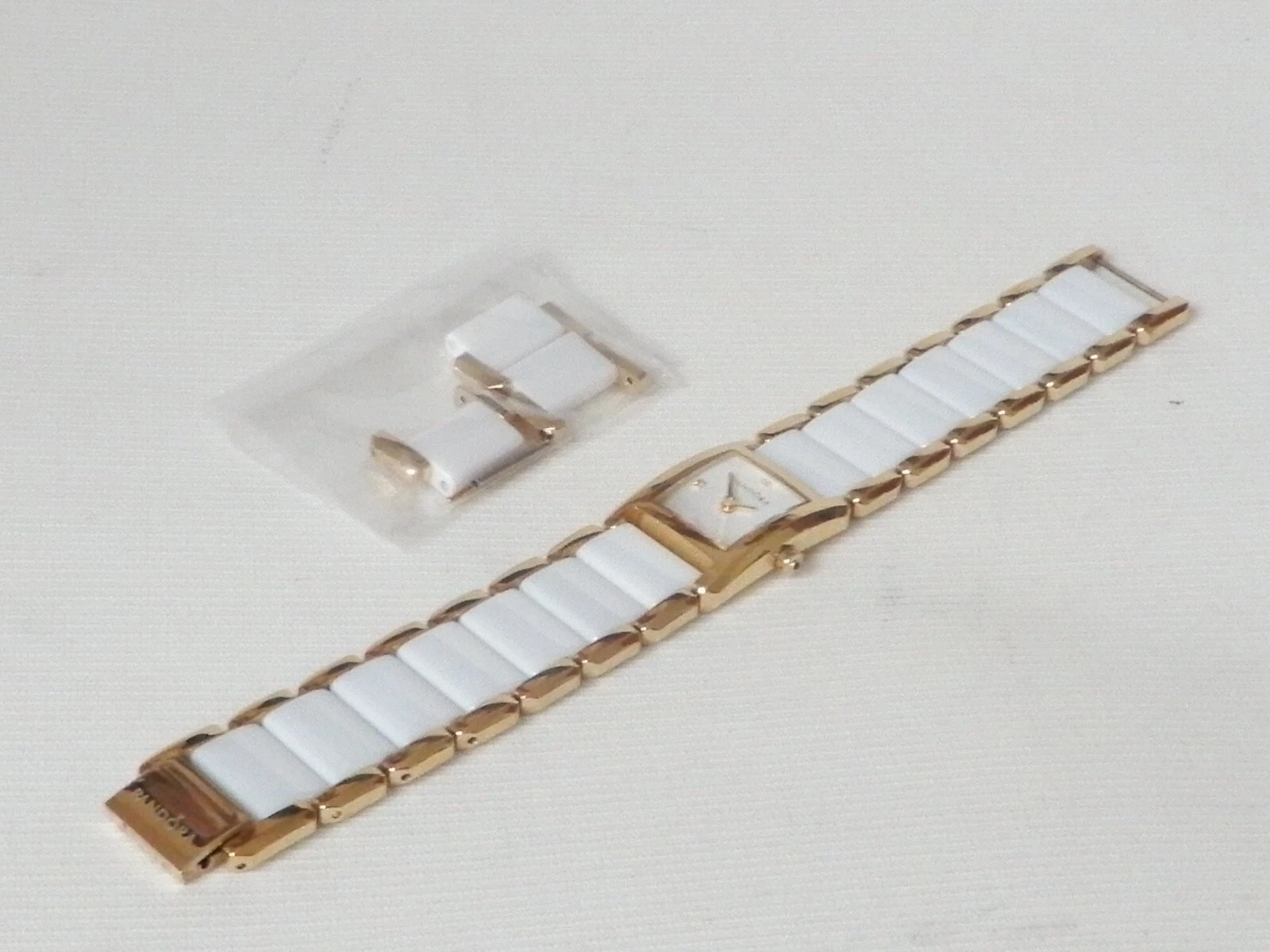 Pandora Facets 812022WH Gold Plated Ladies Swiss Watch Ceramic Band With Diamond