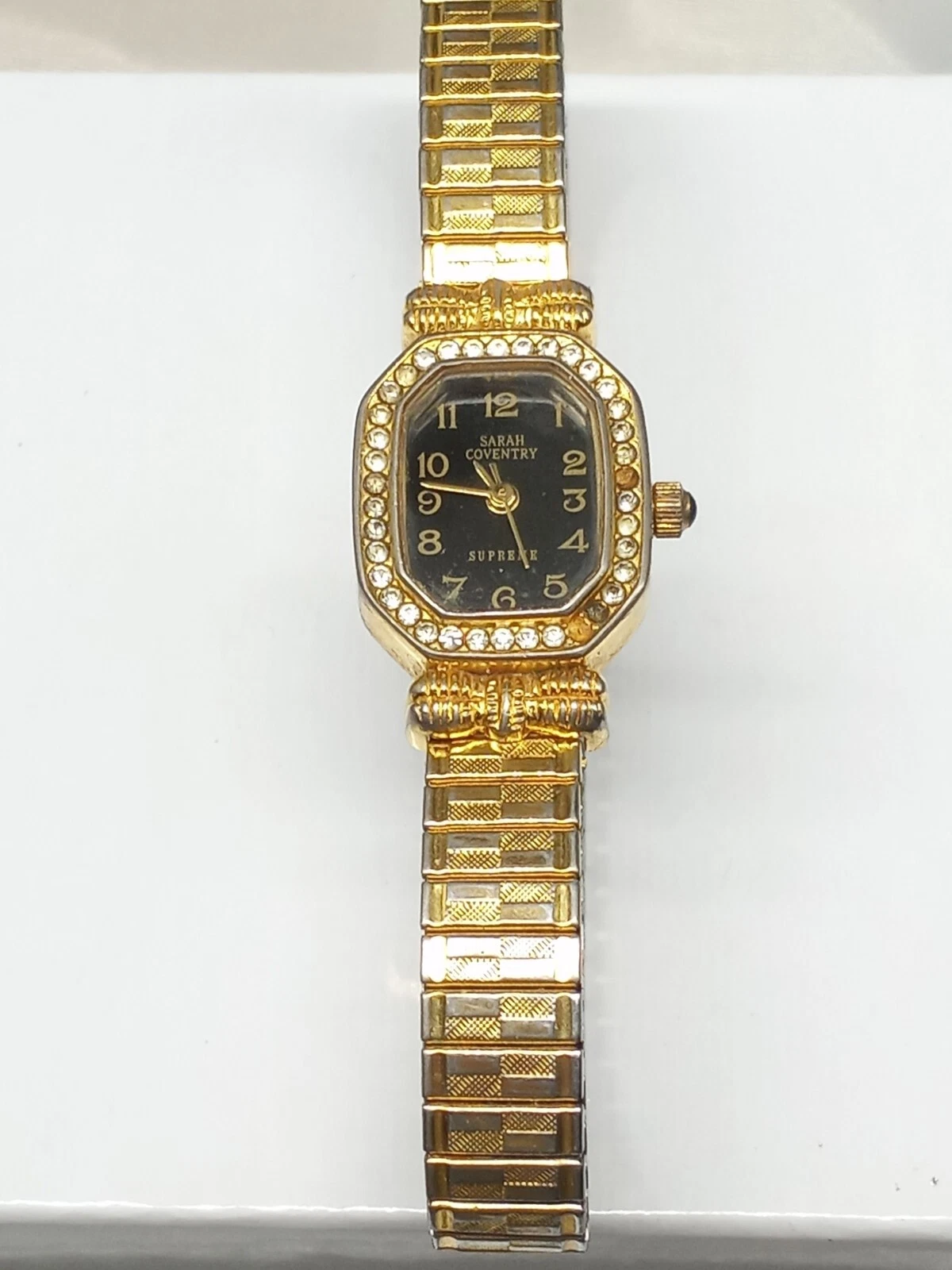 Vintage Sarah Coventry Supreme Ladies Watch Goldtone Stretch Band Not Tested
