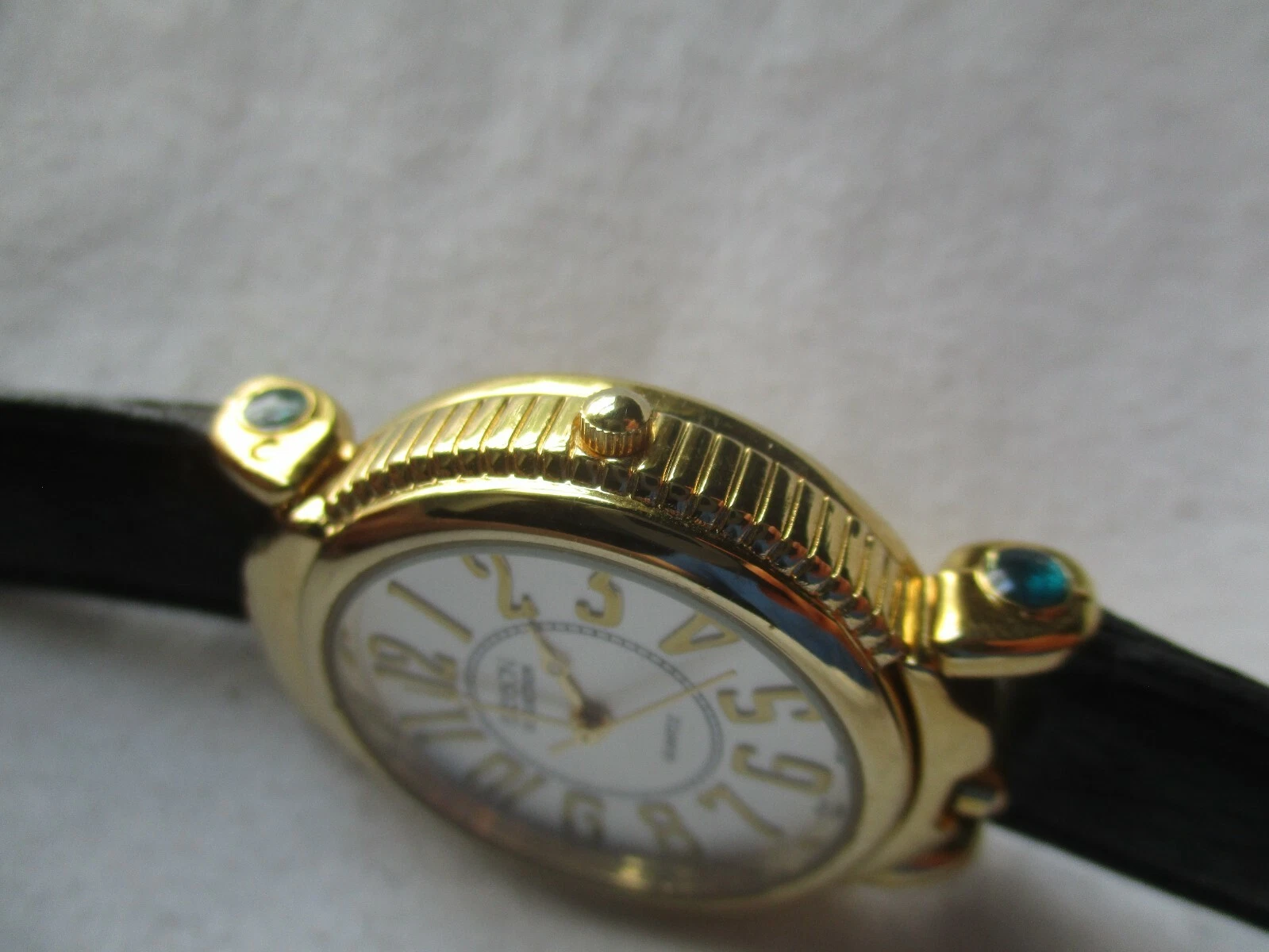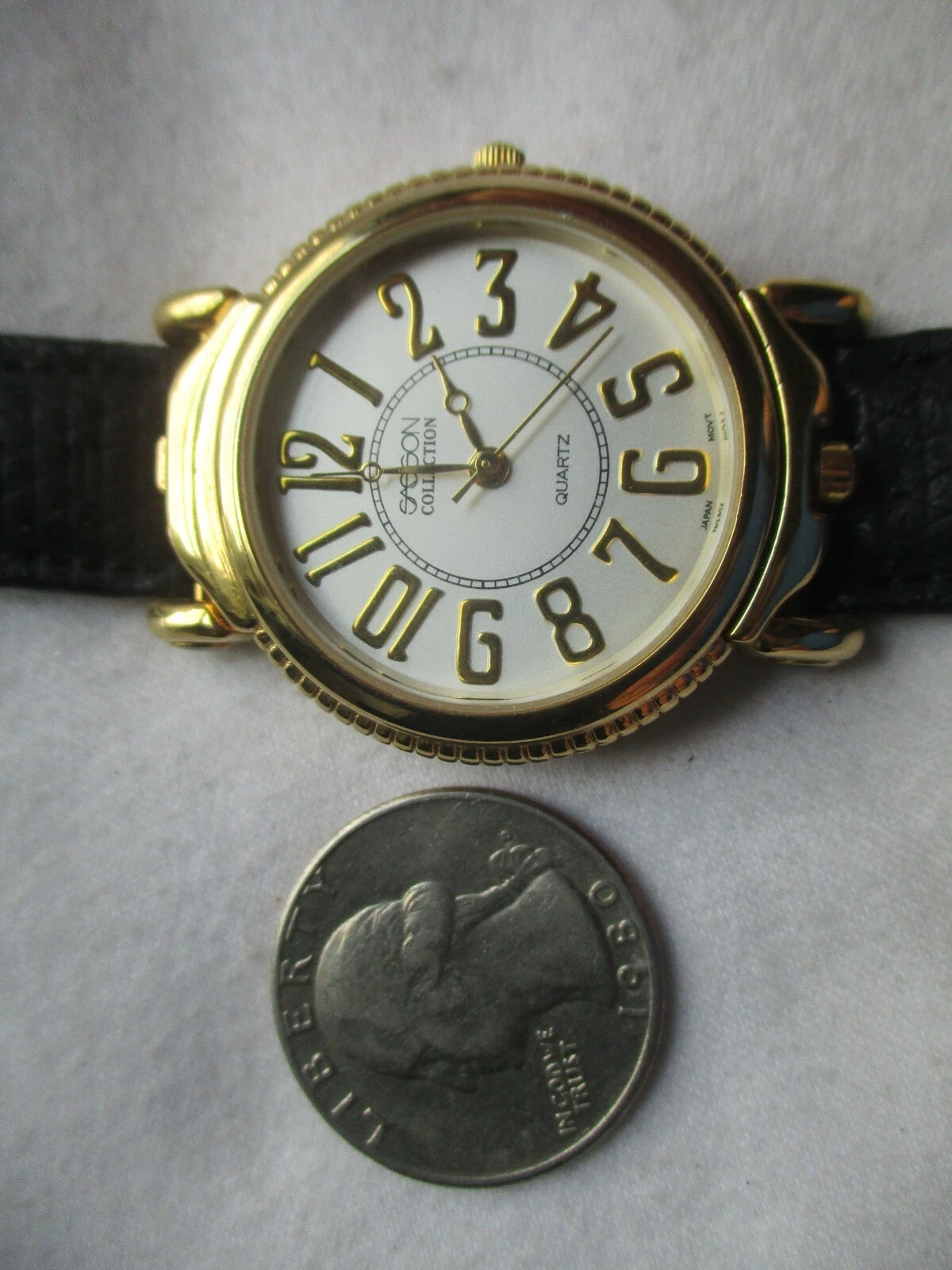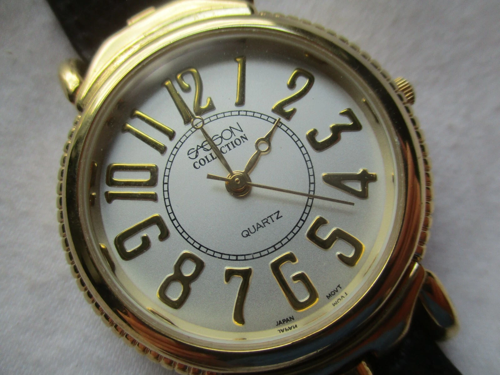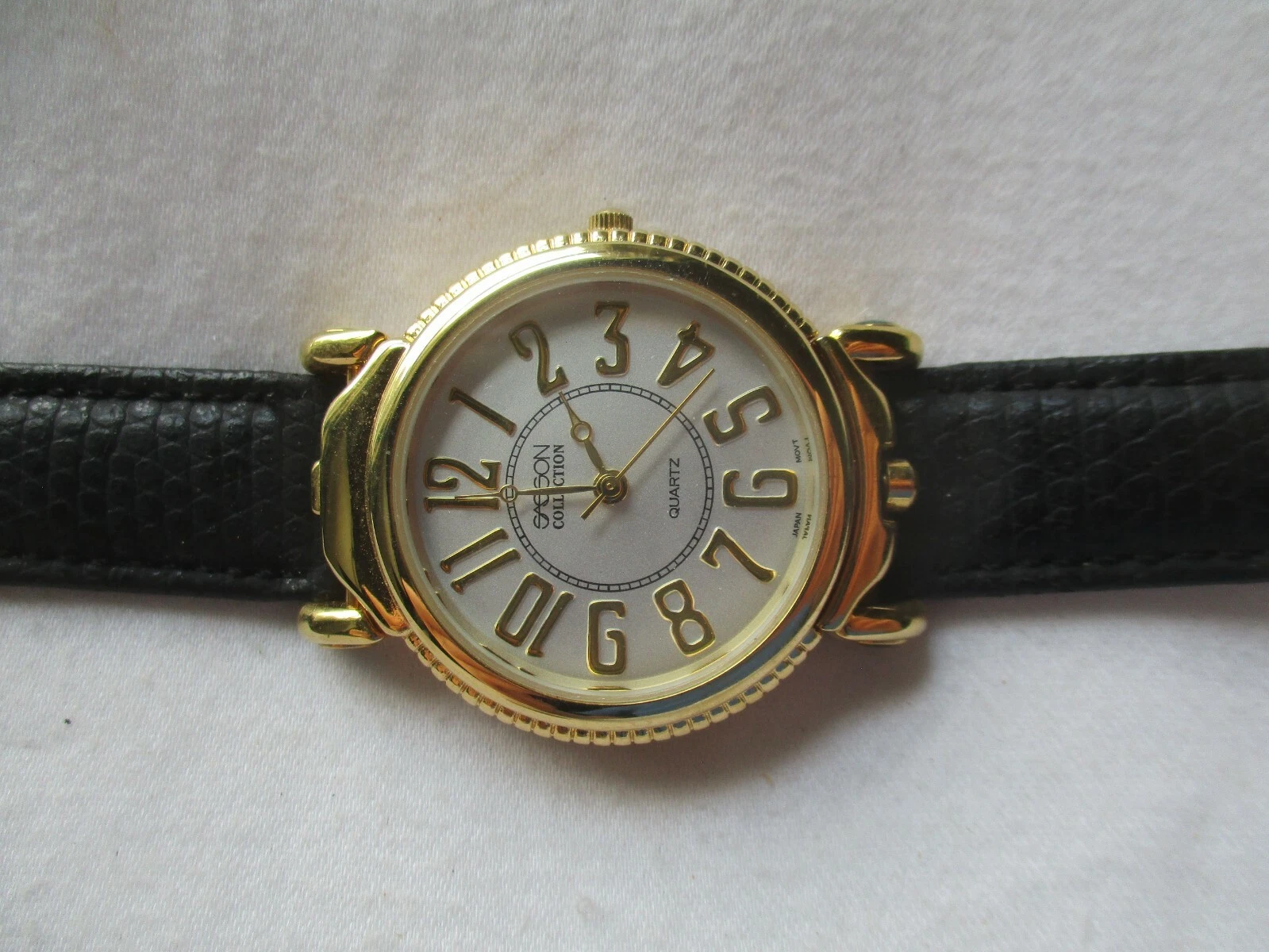 Sasson Collection Wristwatch Black Buckle Band Gold Tone Round Face Stylish