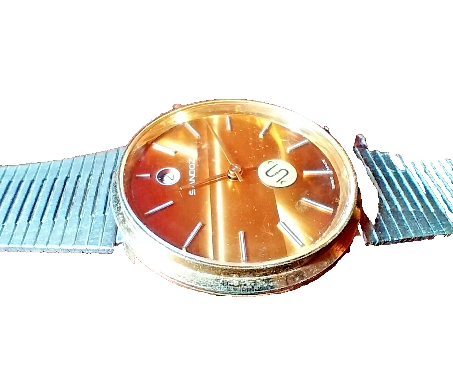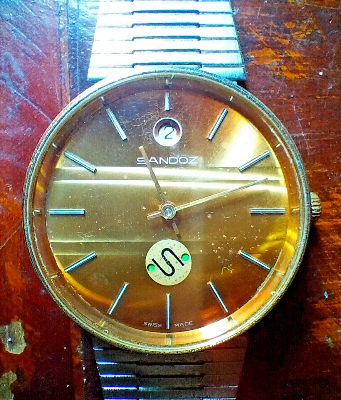 Authentic Sandoz Men's Swiss Manual Wind Sub Second Copper Dial Vintage Watch