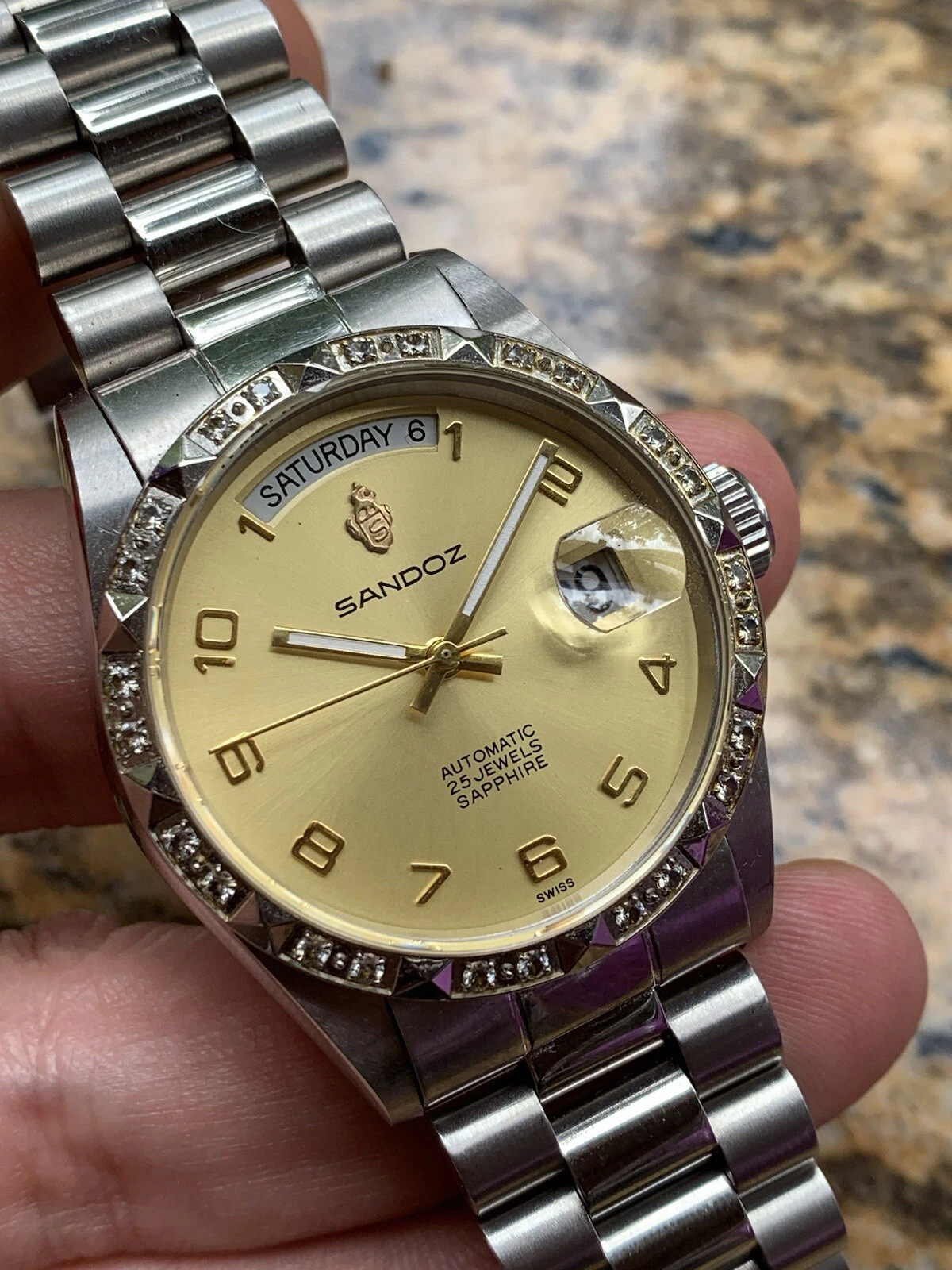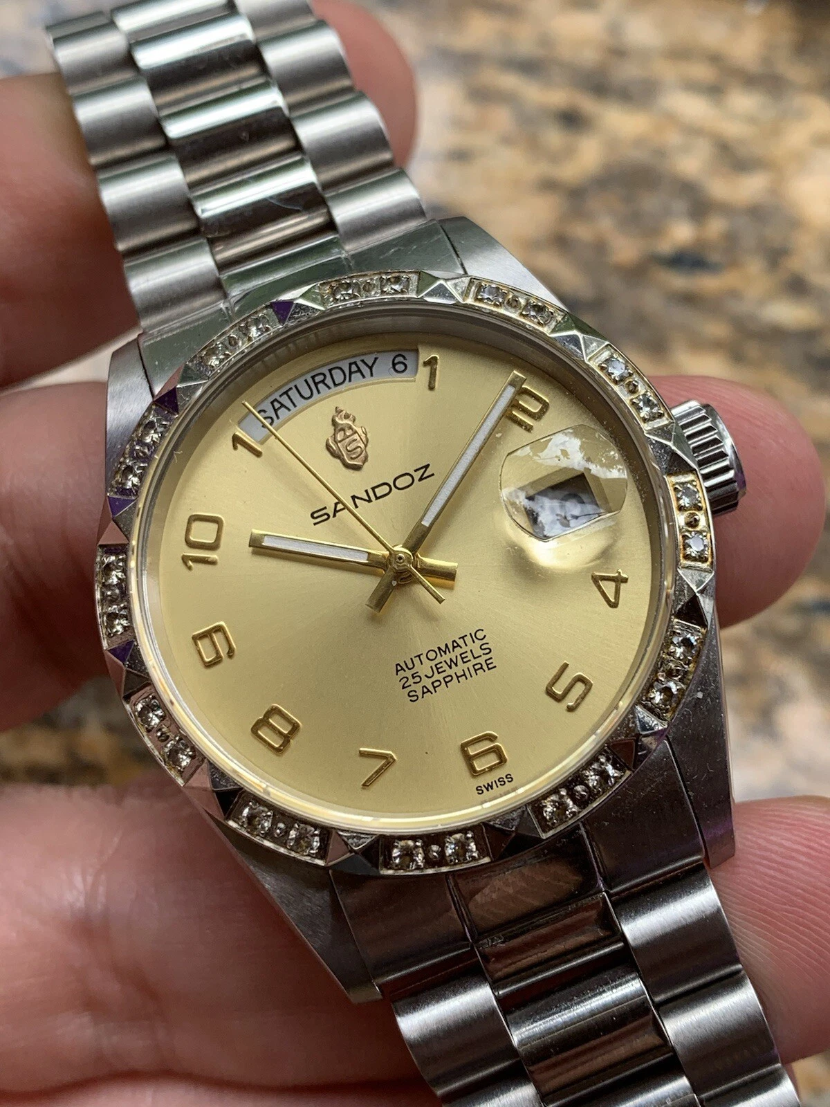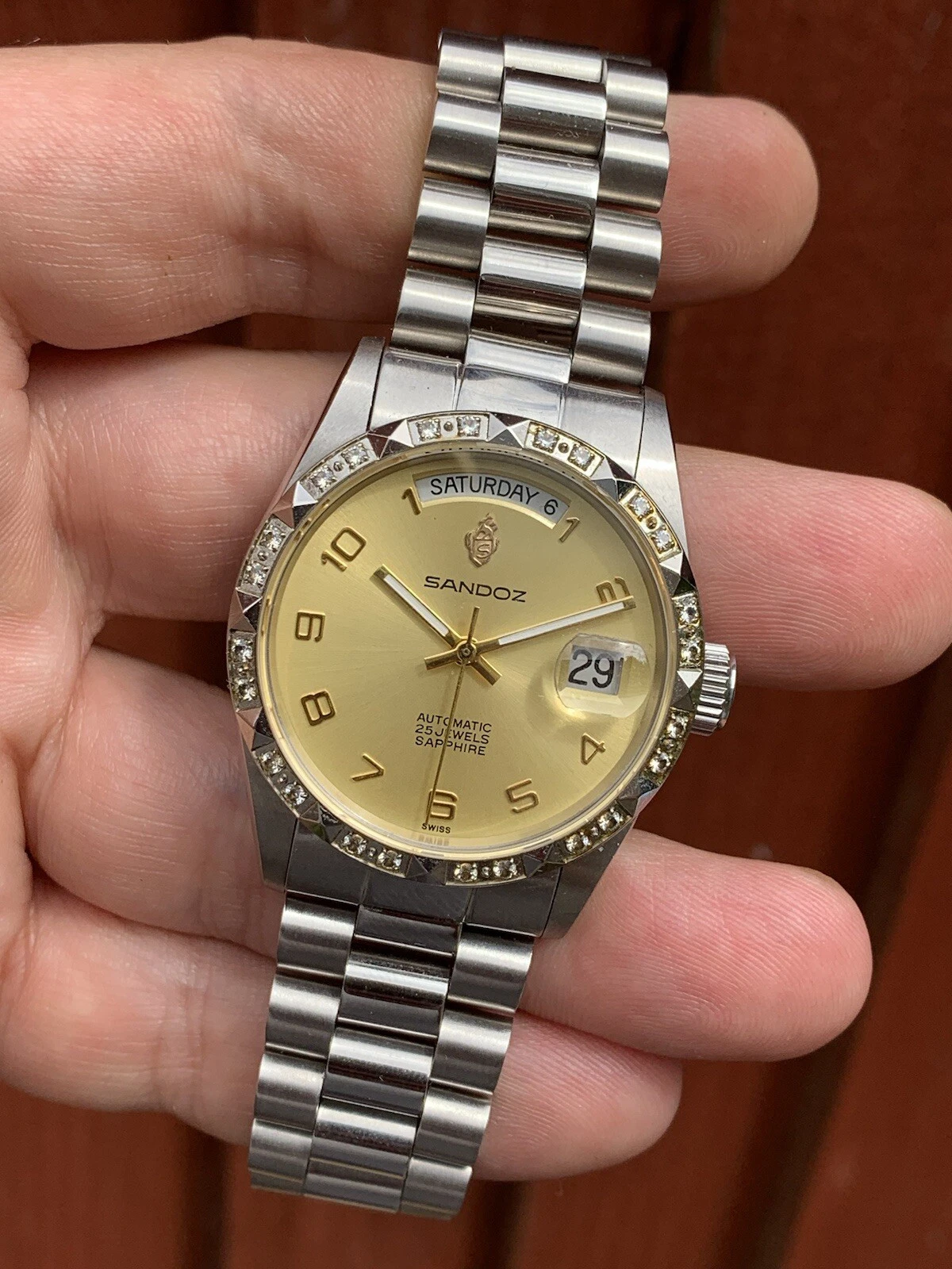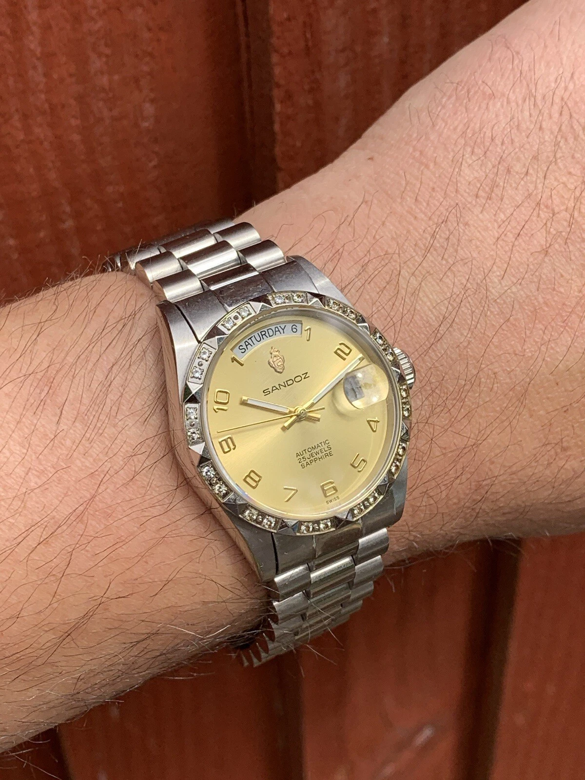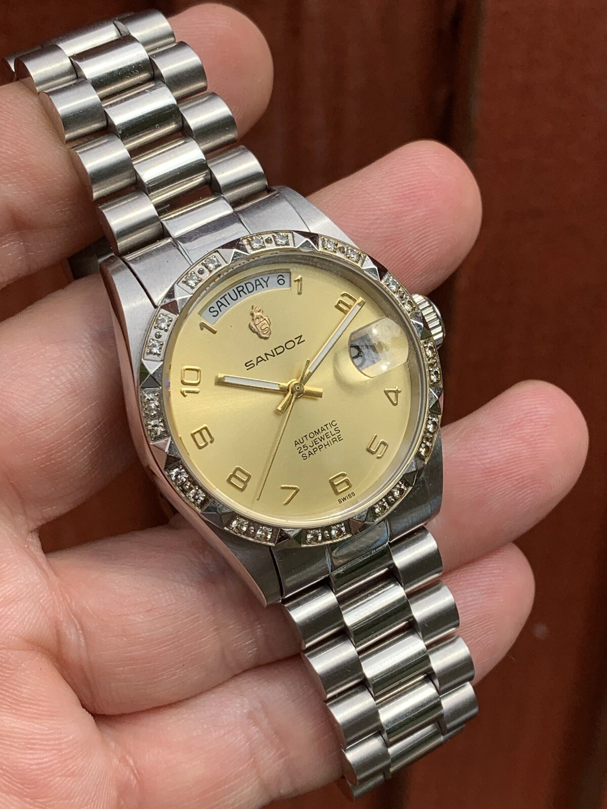 Vintage Sandoz Mens Watch Day Date 35,5mm ETA 2834 Automatic Swiss Made