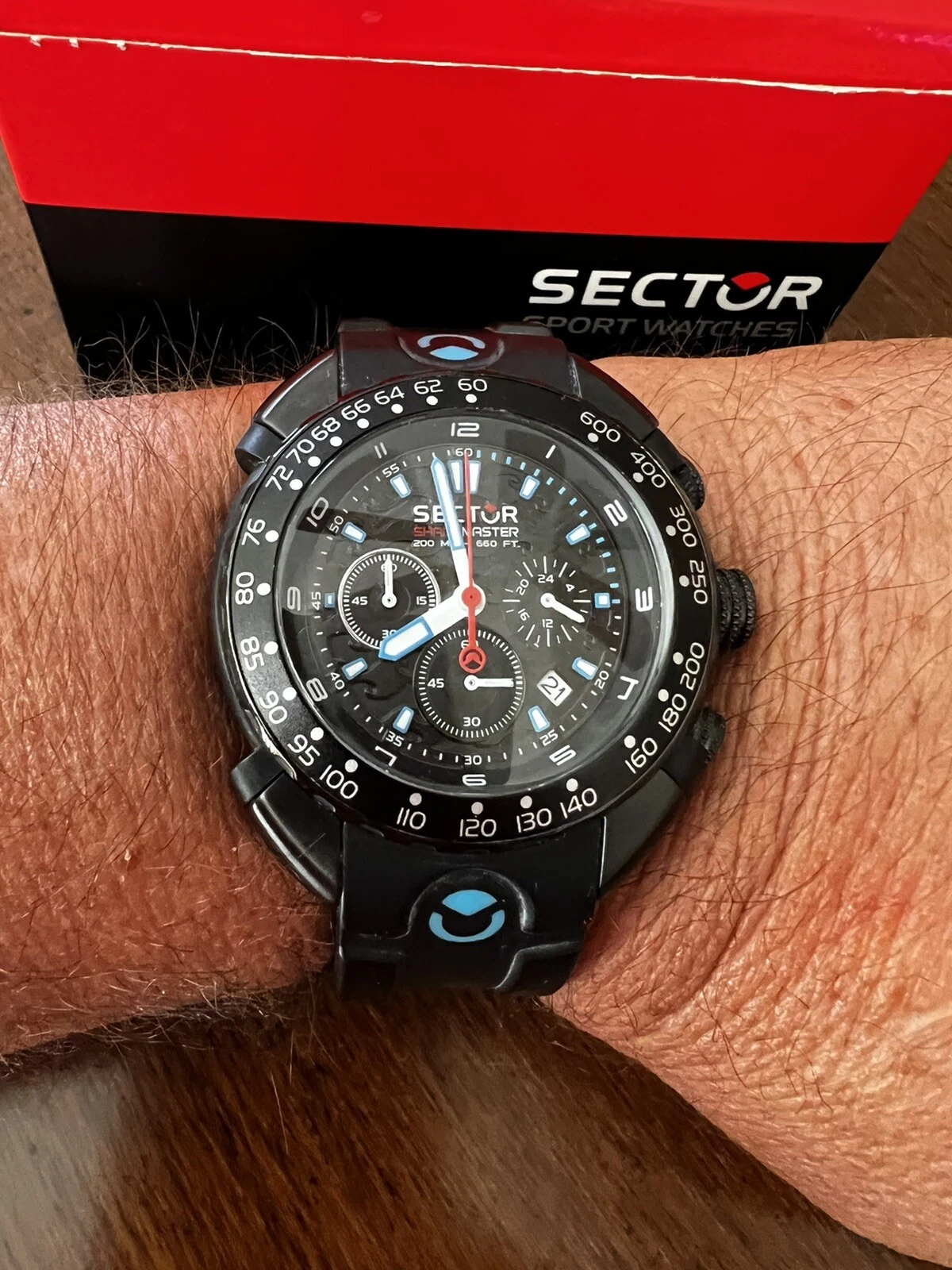 SECTOR SHARK MASTER 44mm CHRONOGRAPH DIVER WATCH 200M-660FT. VERY RARE