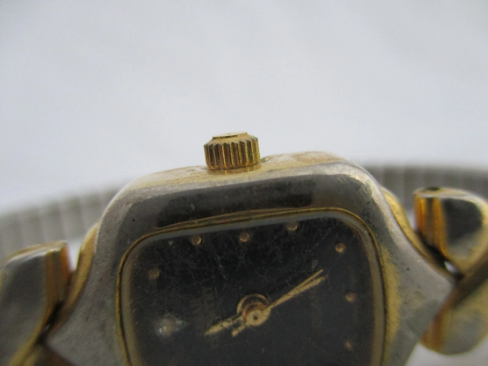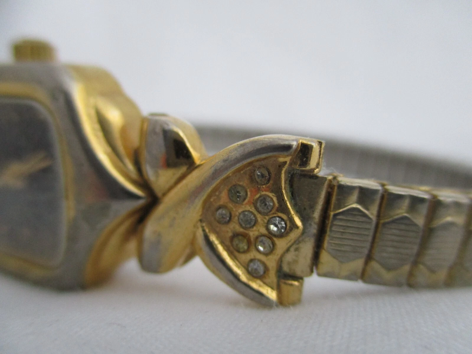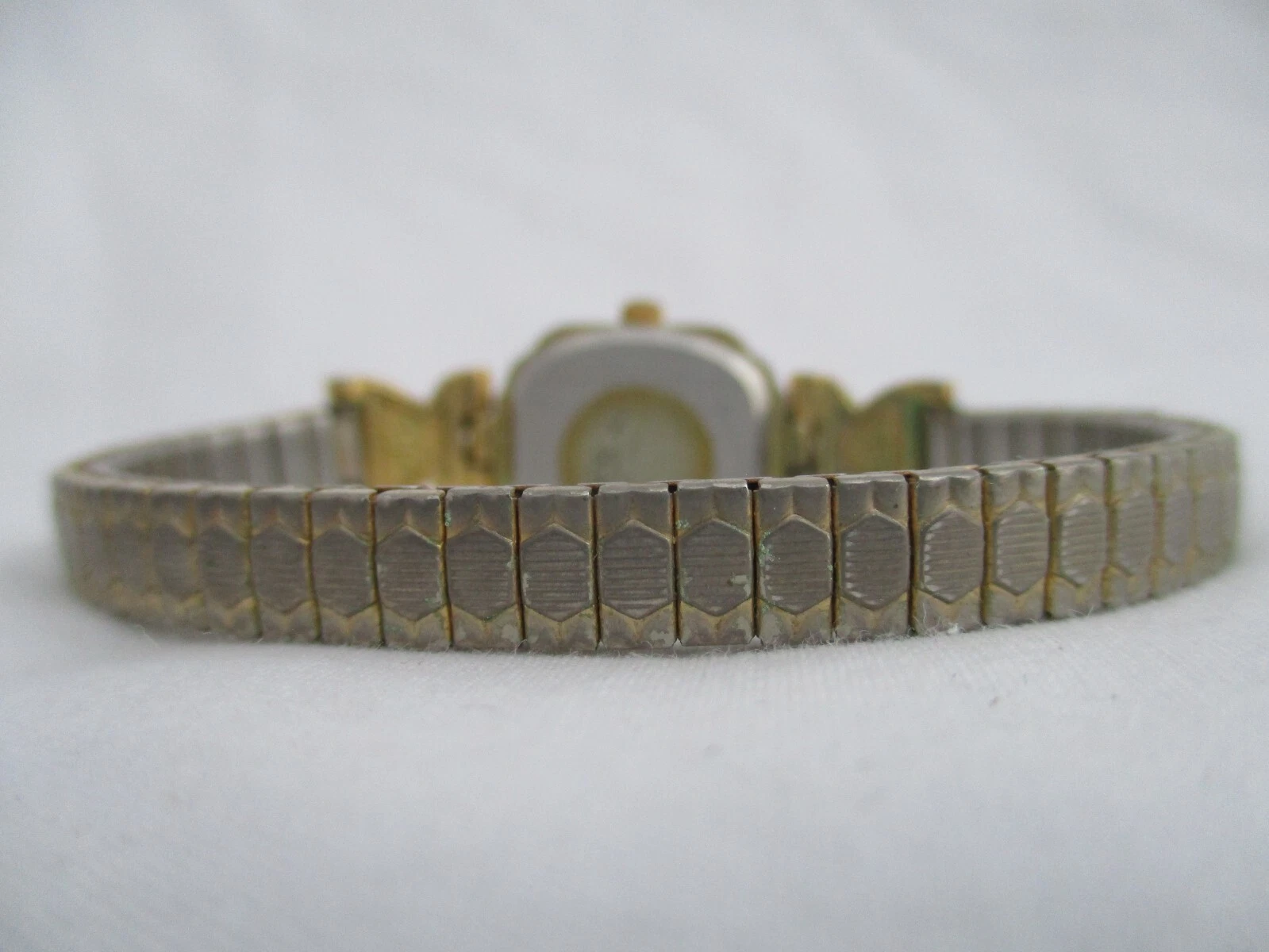 Sarah Coventry Analog Watch Gold Tone Expansion Band Rectangular Black Face