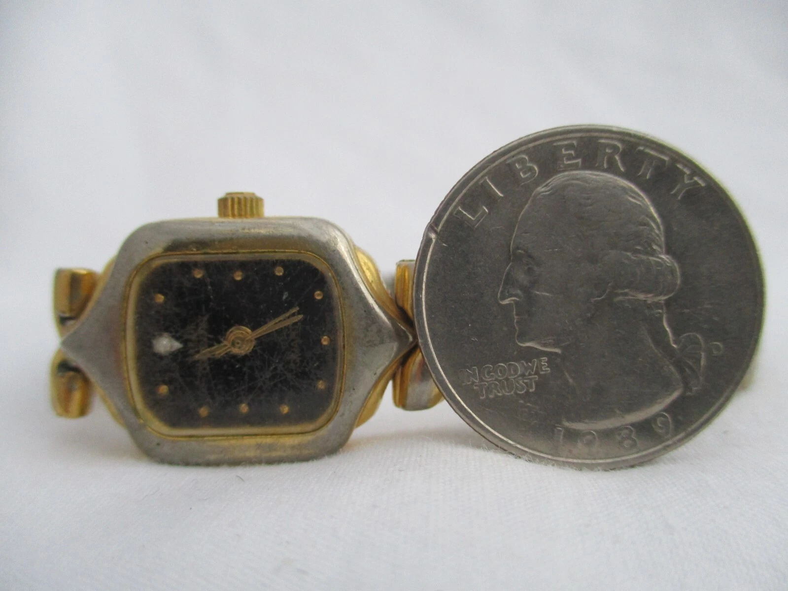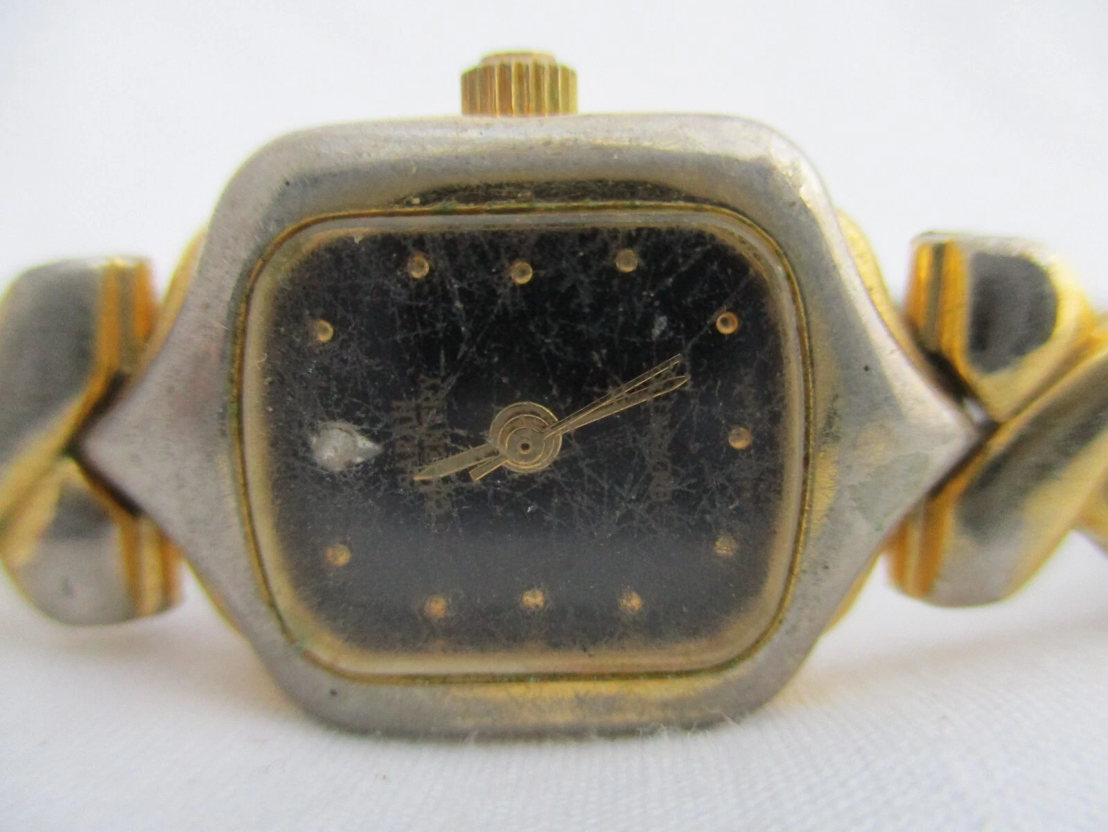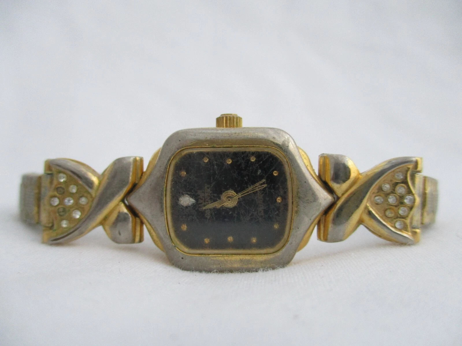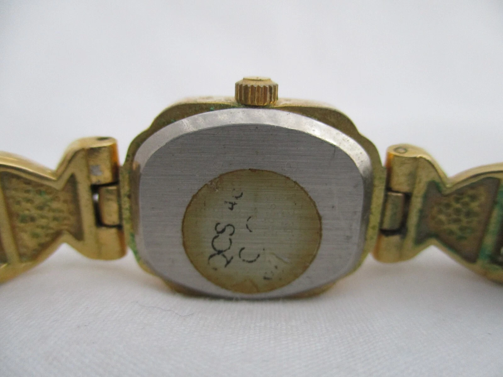 Sarah Coventry Analog Watch Gold Tone Expansion Band Rectangular Black Face