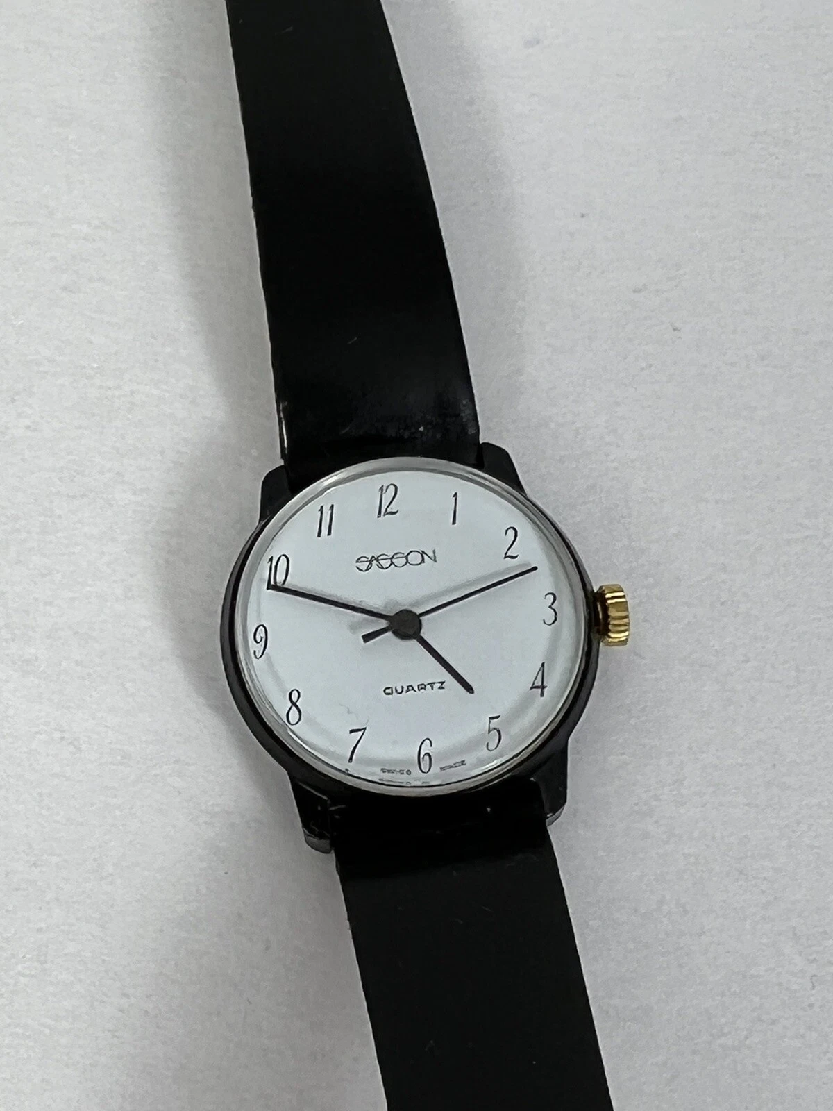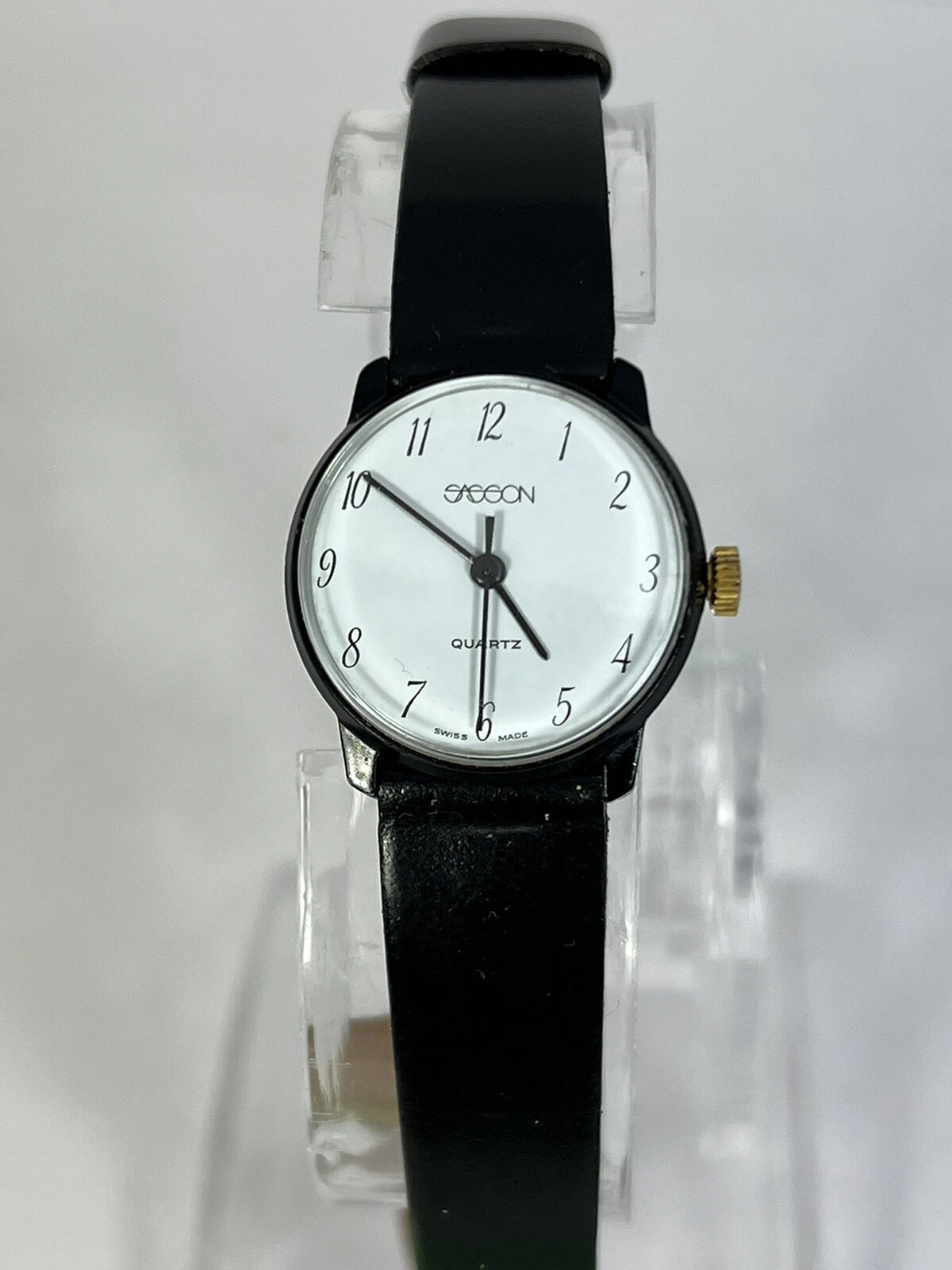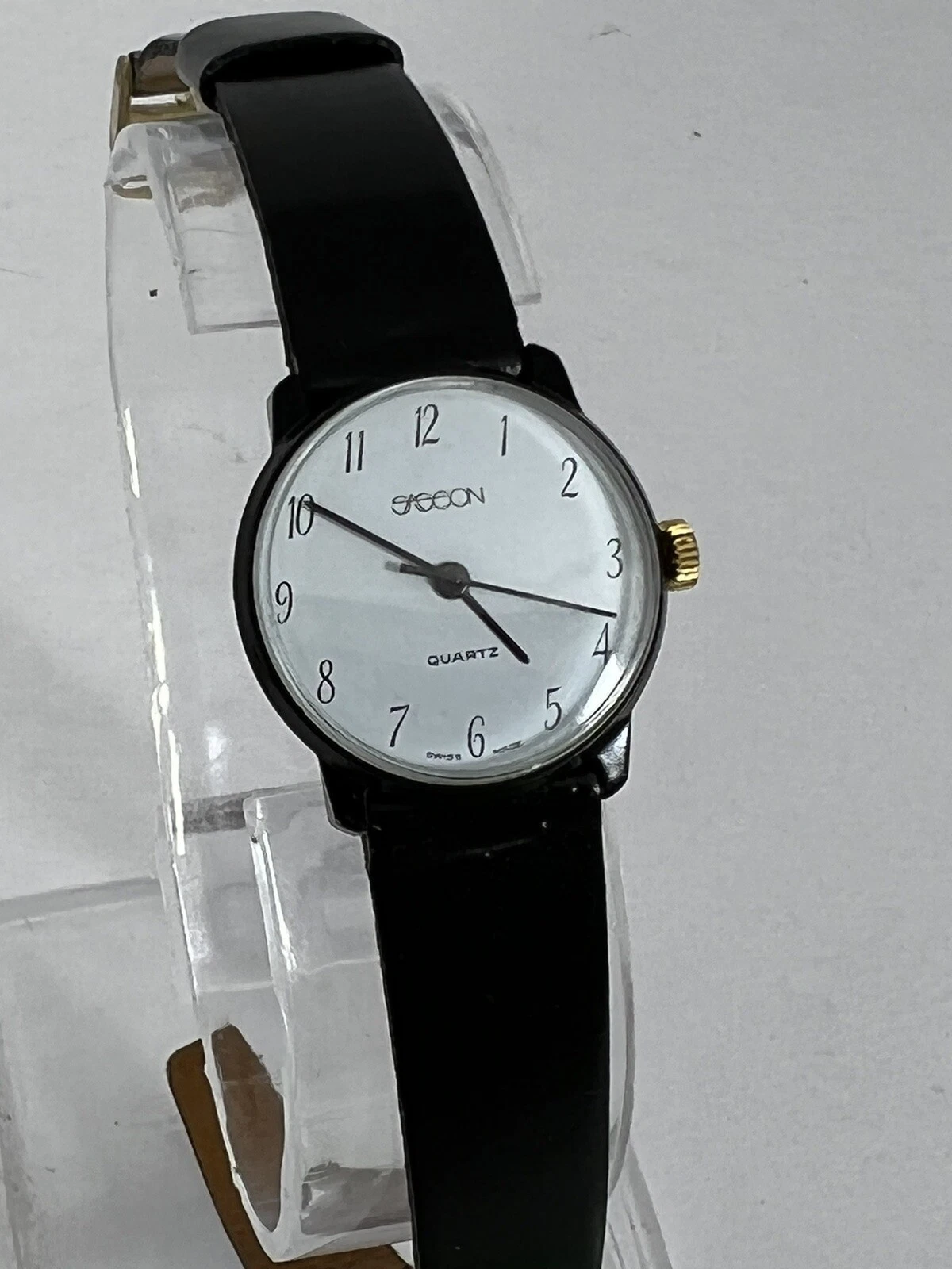 Vintage Retro Sasson Ladies Swiss White Dial w/Black Strap Watch - New Battery