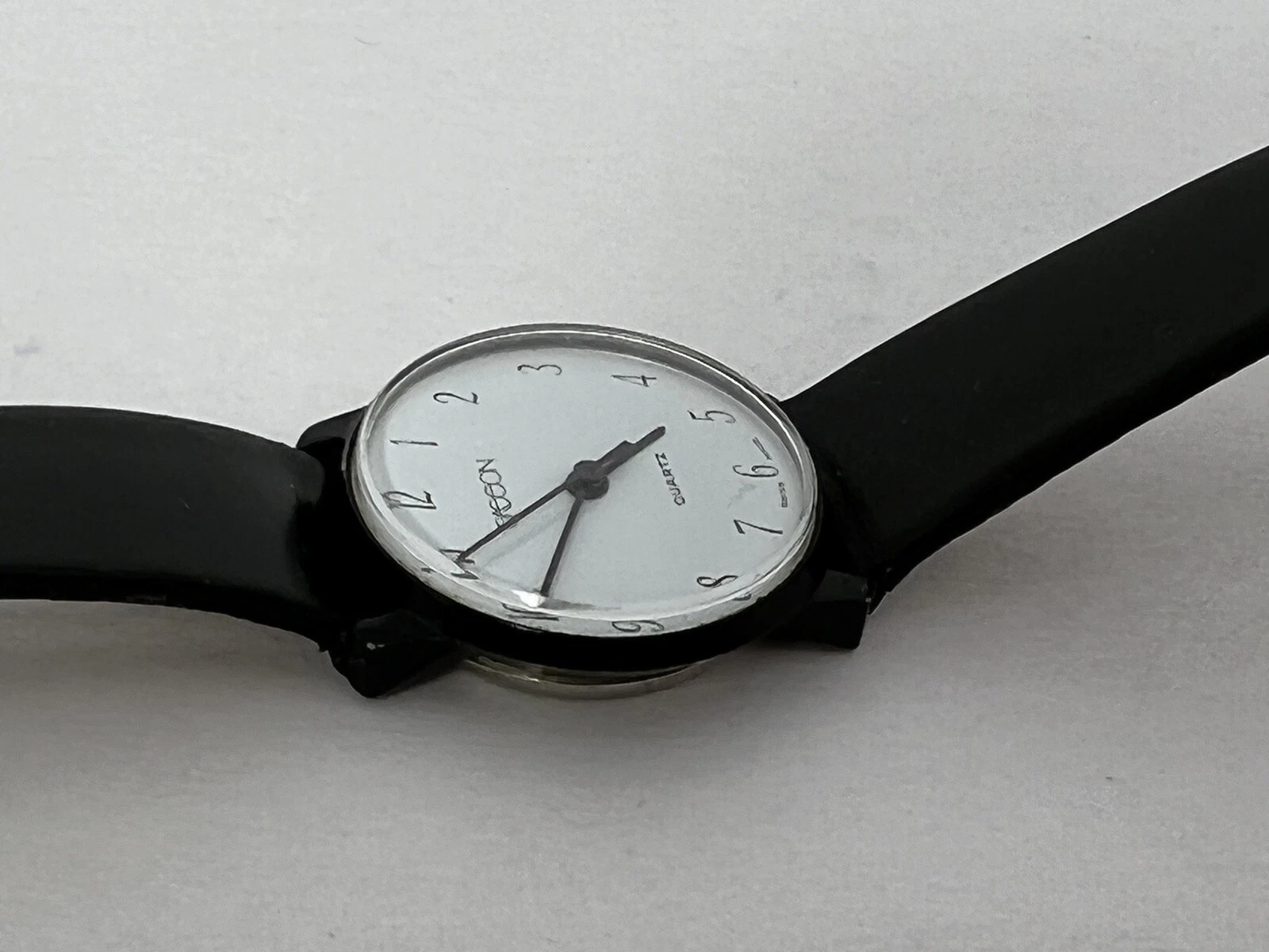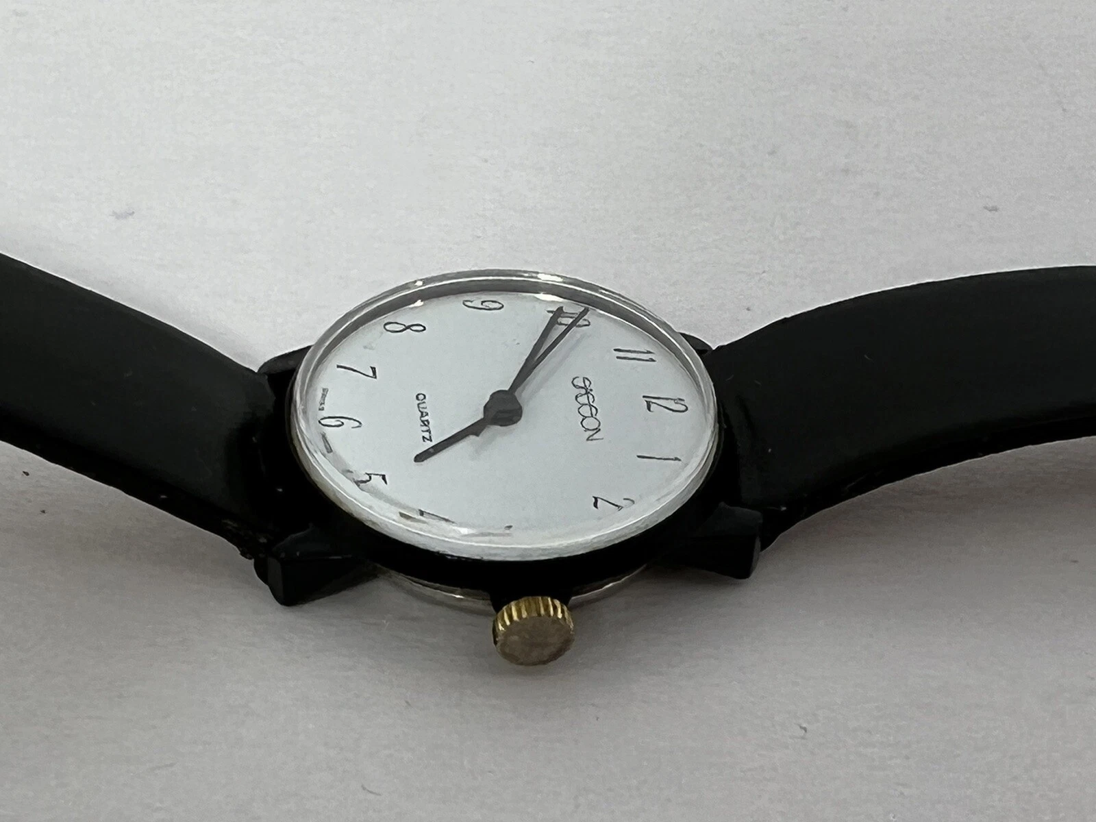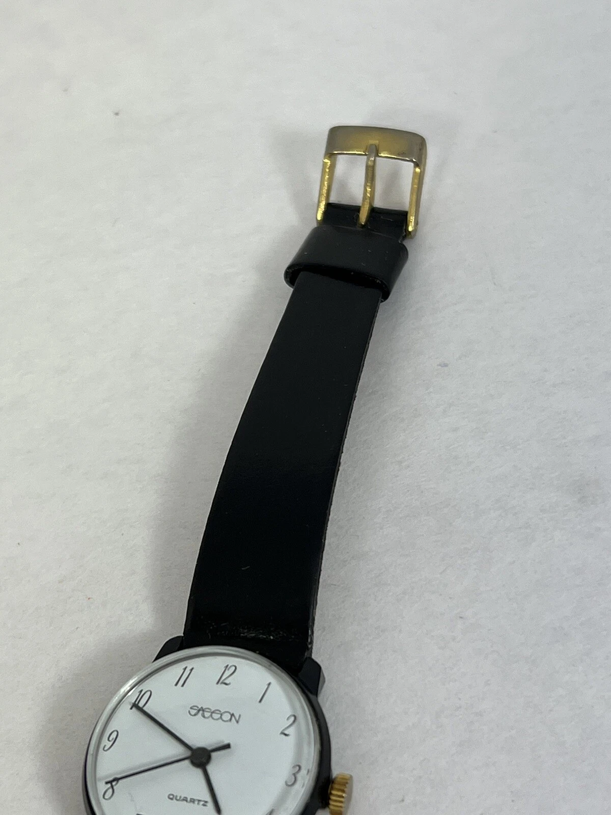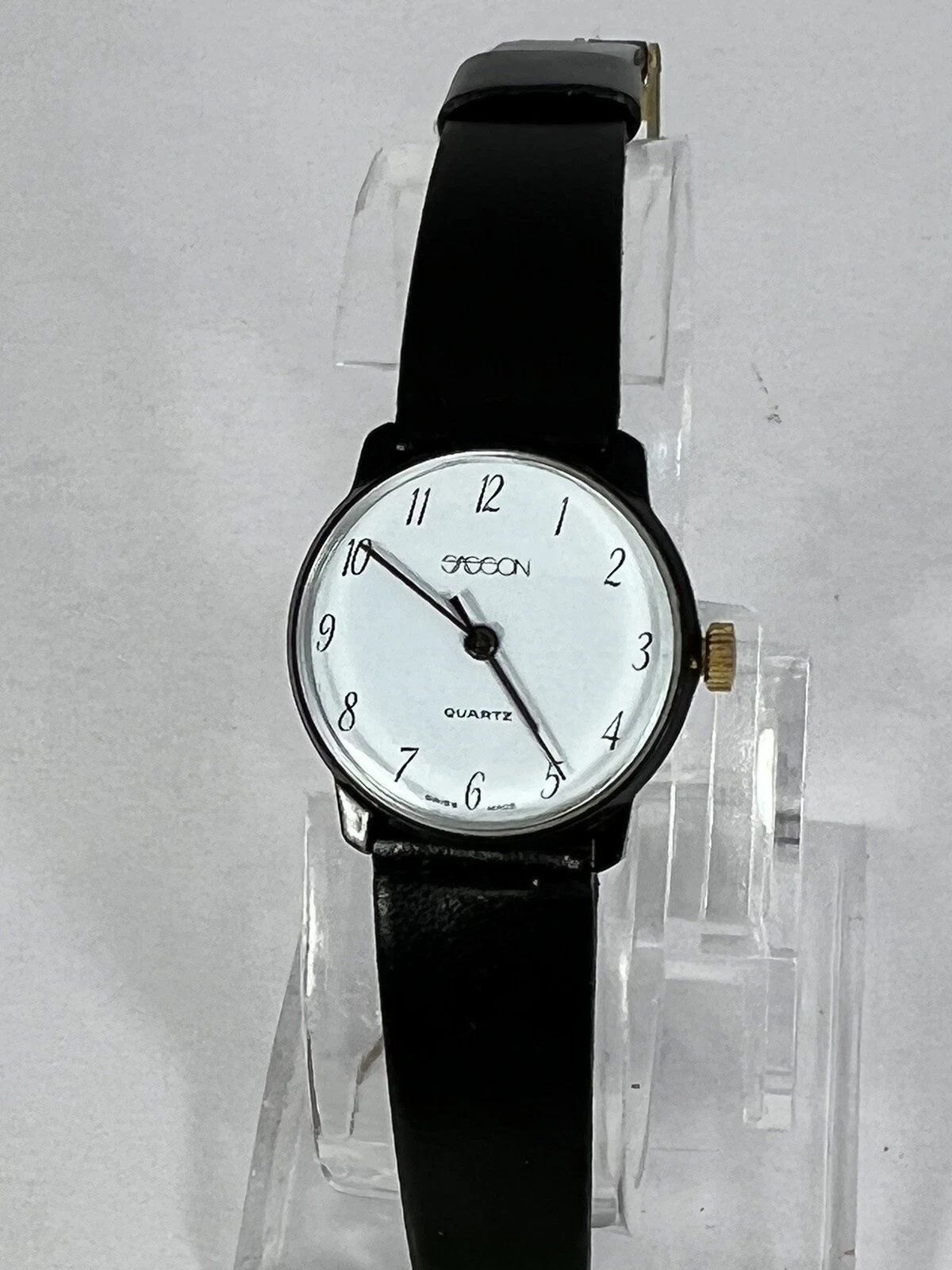 Vintage Retro Sasson Ladies Swiss White Dial w/Black Strap Watch - New Battery