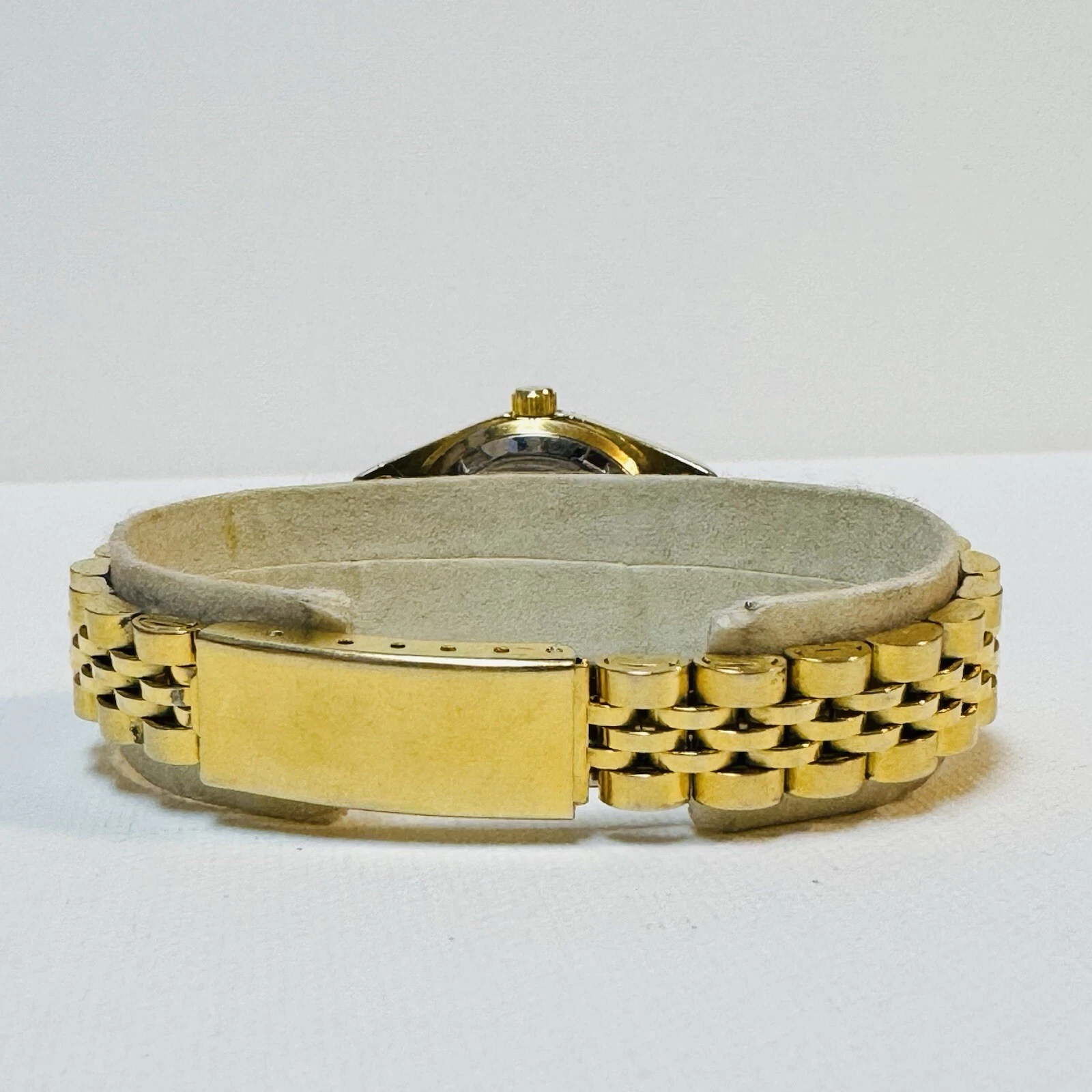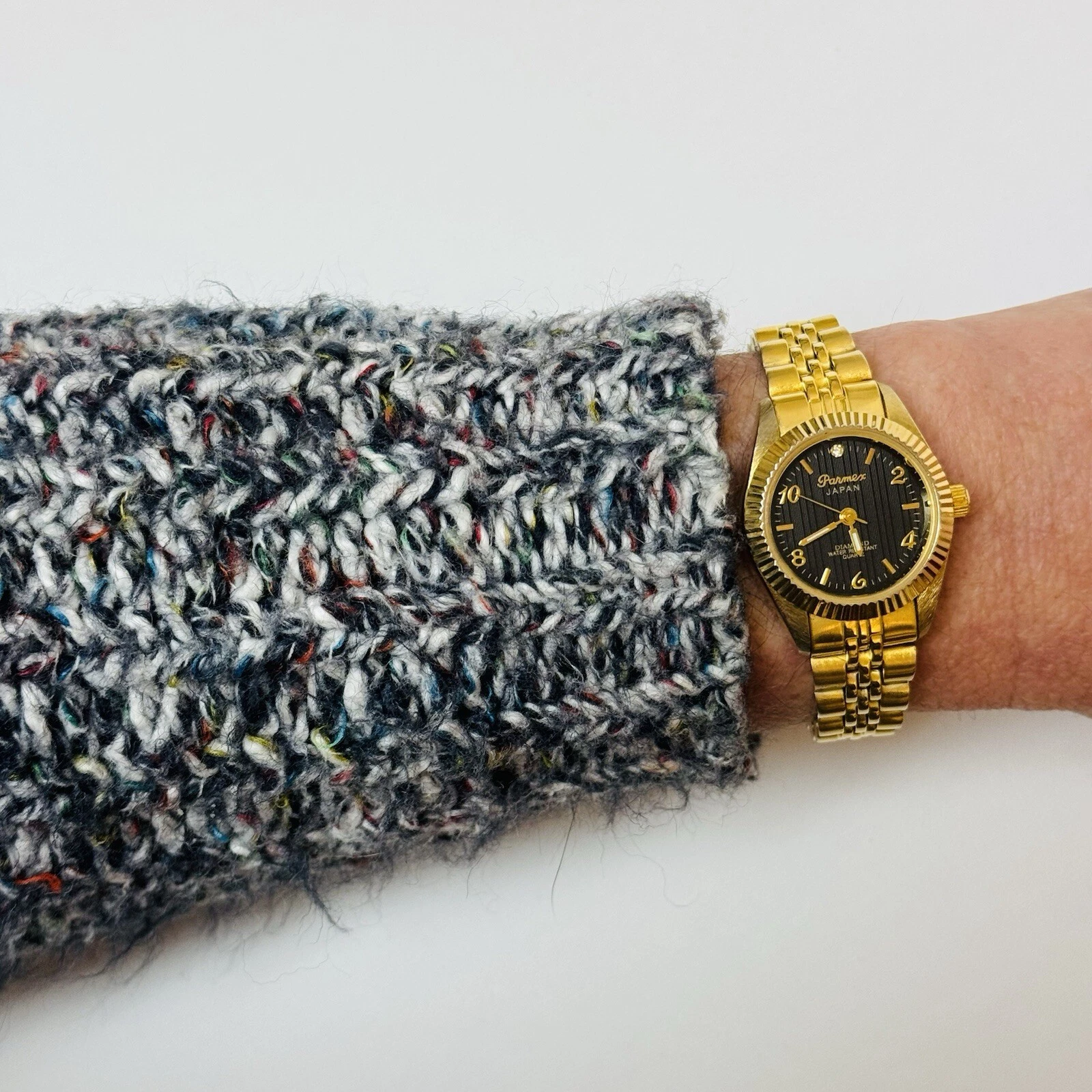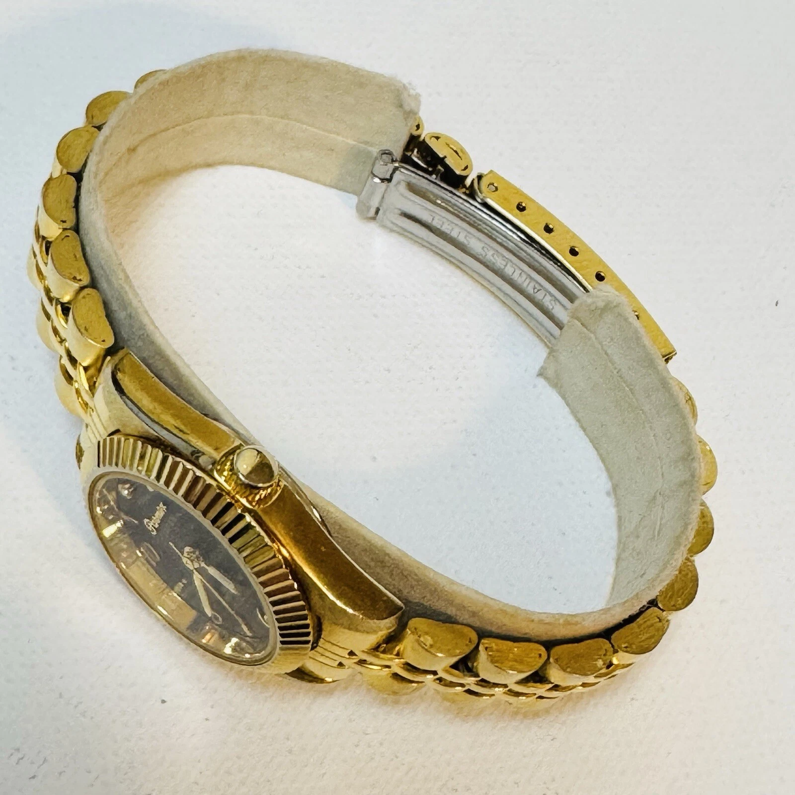 Vintage Parmex Diamond Women's Black Dial Fluted Bezel Gold Tone Dress Watch 2