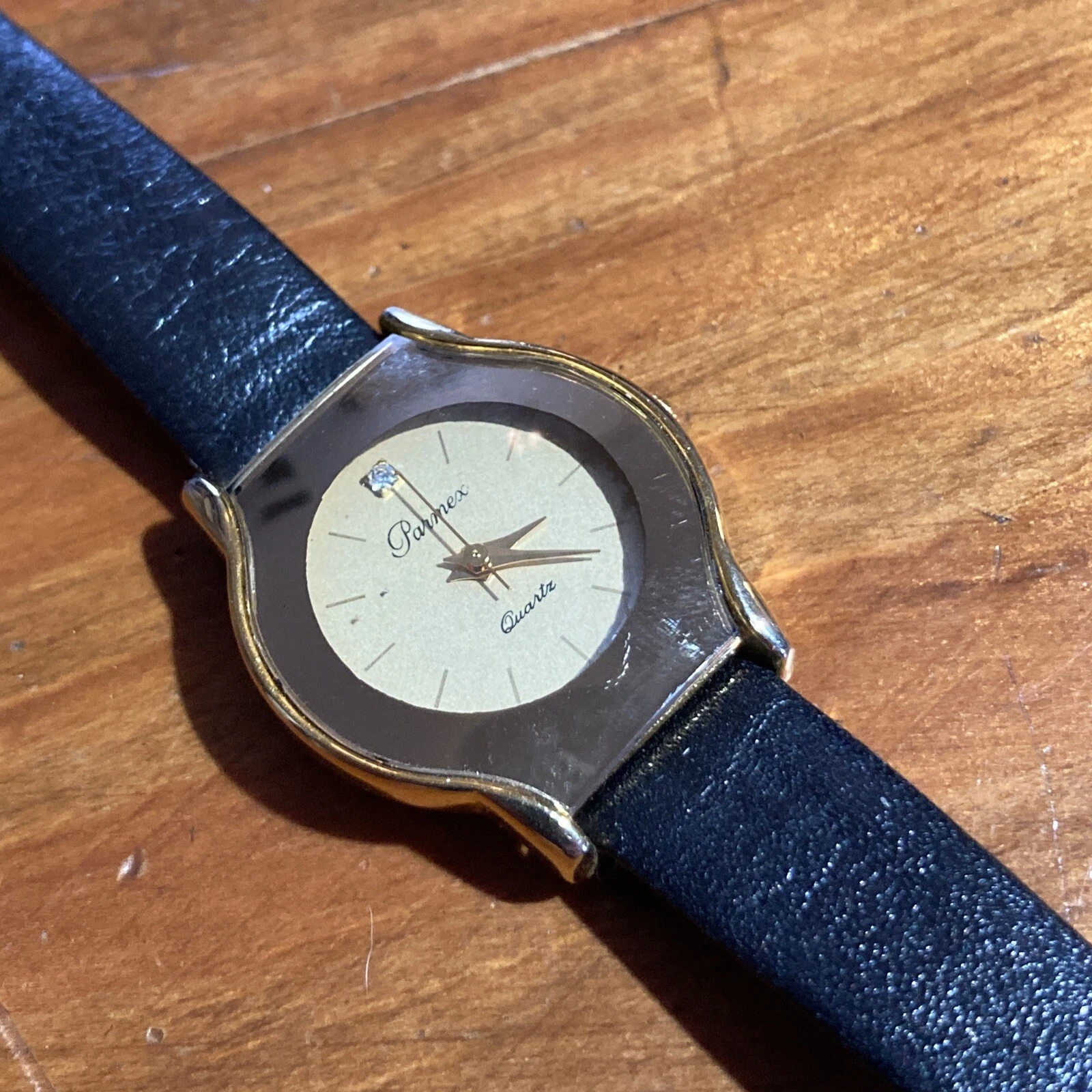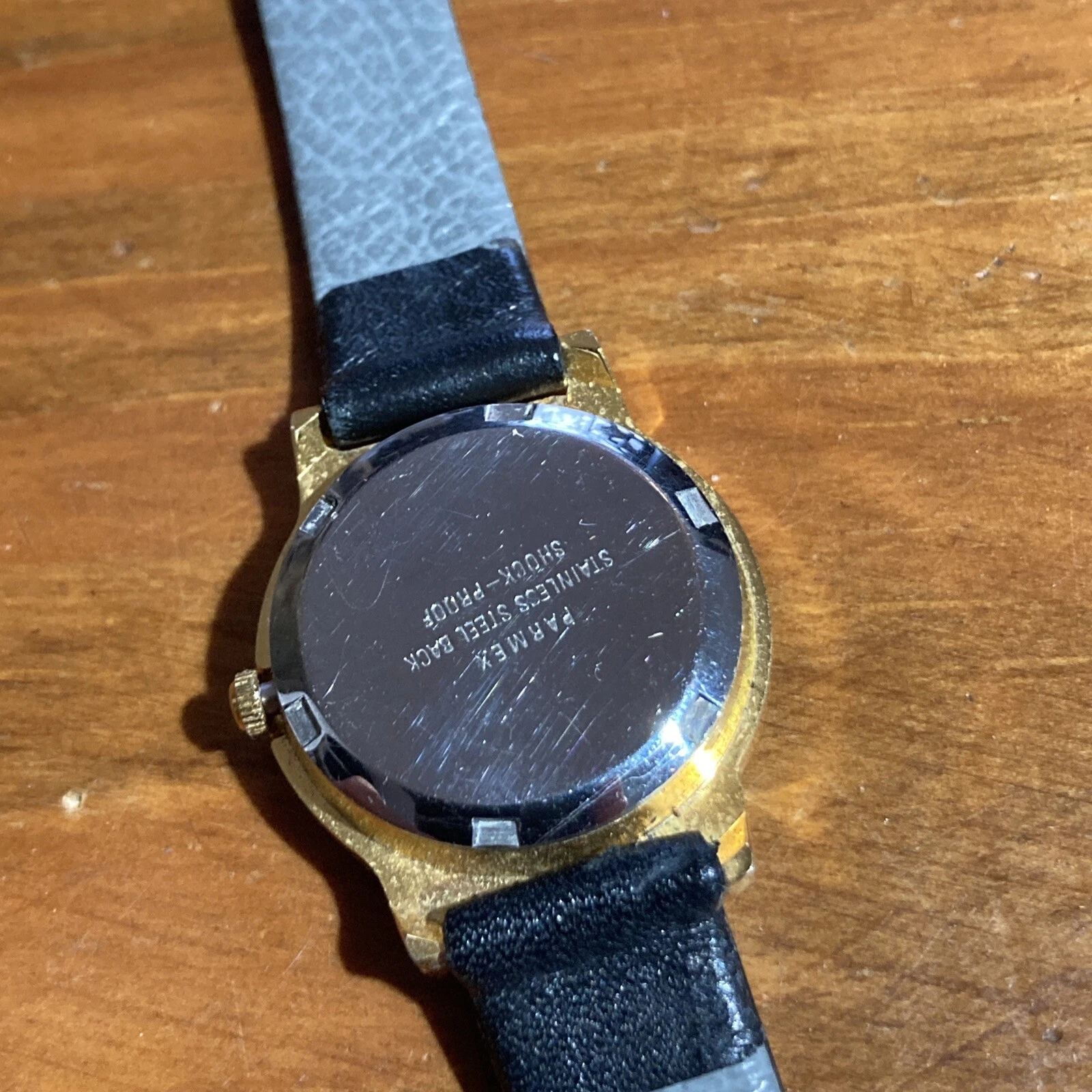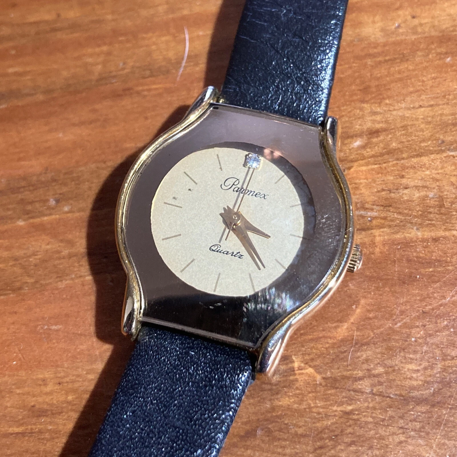 Parmex Ladies Watch Gold Tone w Leather Band Works w New Battery