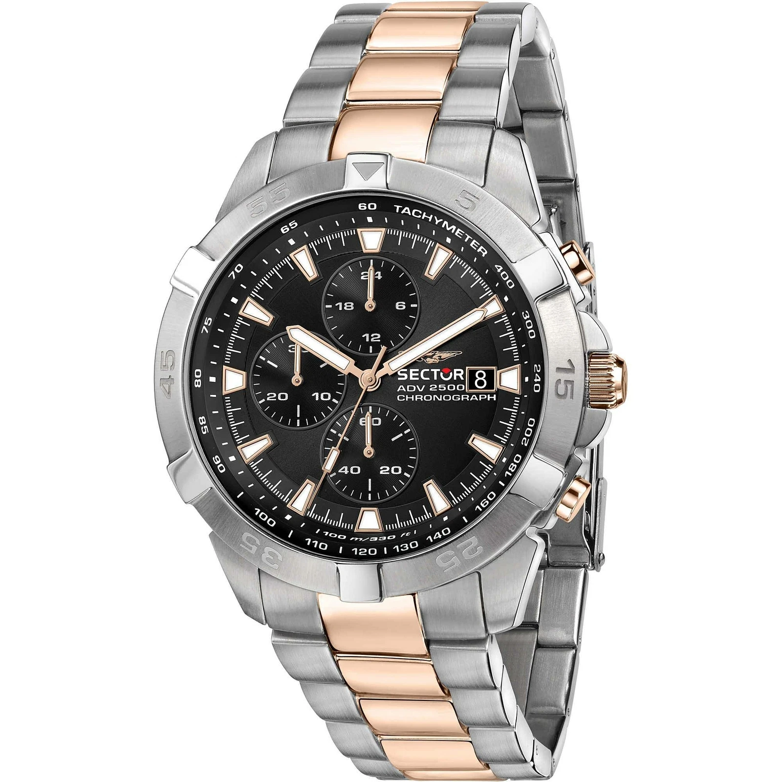 Sector ADV2500 R3273643002 Watch Men Chronograph Two-tone Black Rose Gold