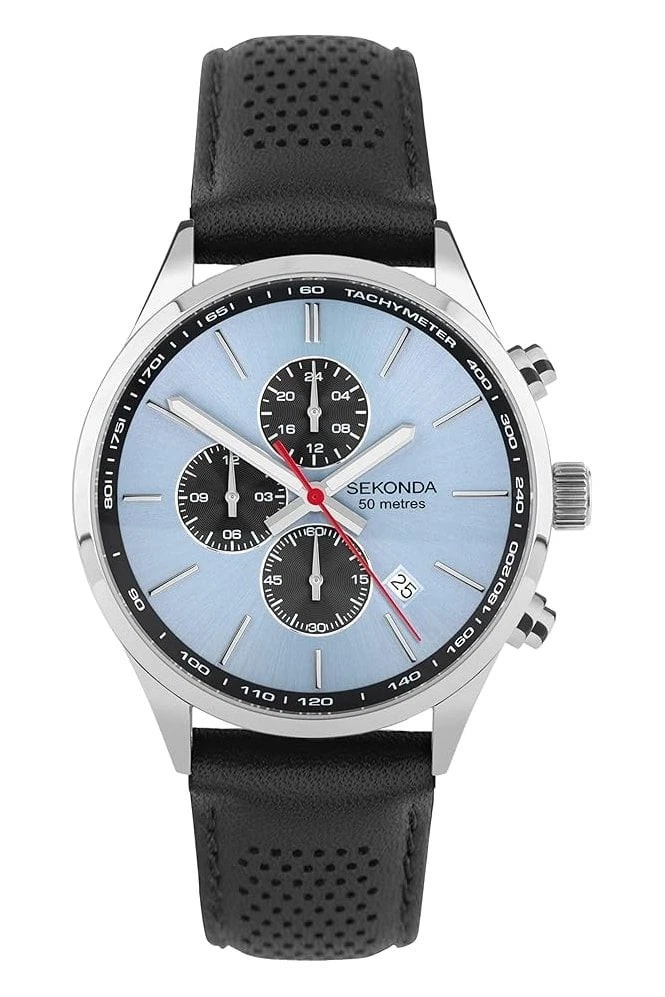 Sekonda Endurance Dual Time Men's Watch 30106 Blue Dial Black Leather Strap 50m