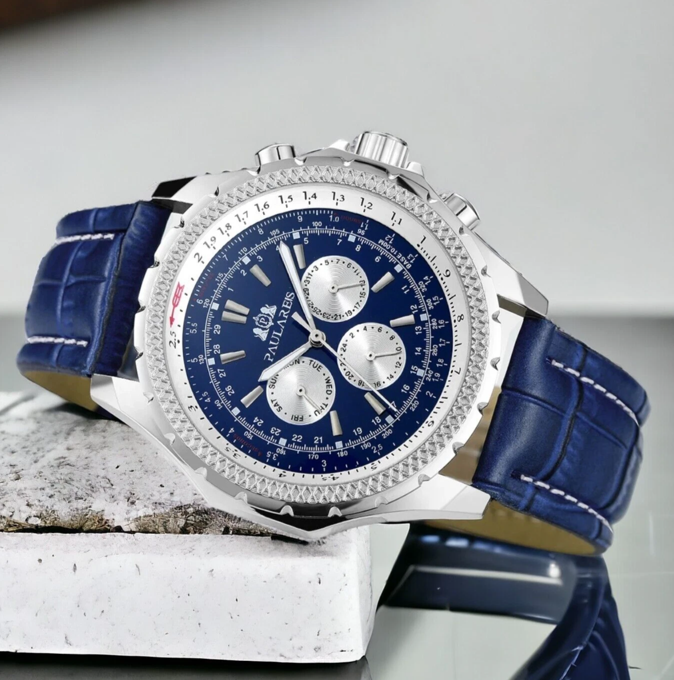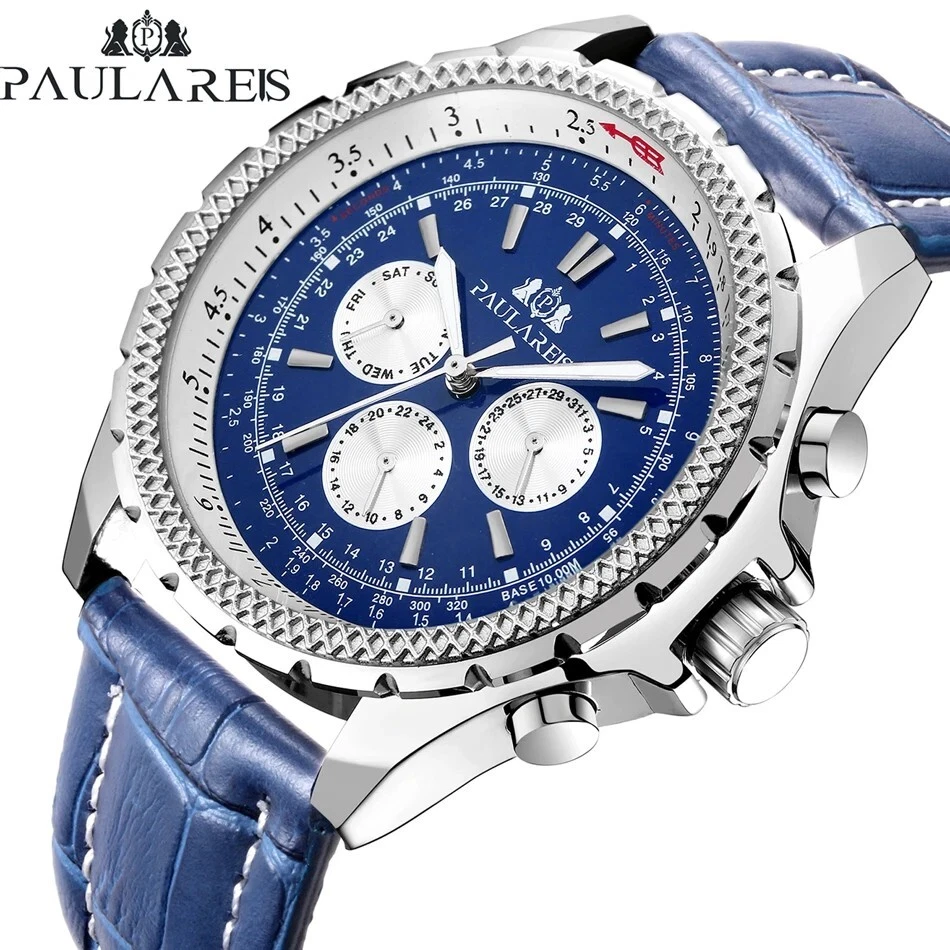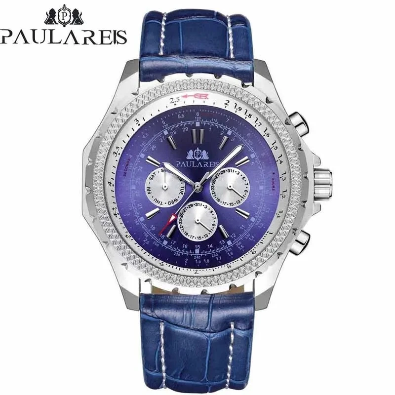 PAULAREIS Automatic Chronograph Watch Men's Leather Waterproof Luminous Diver