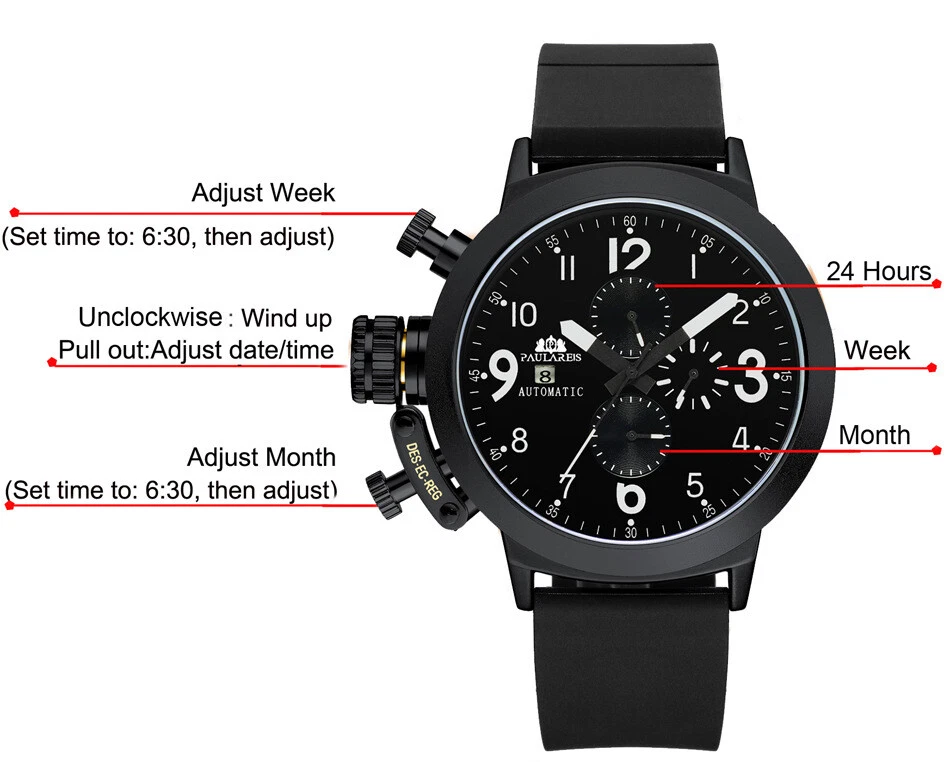 Men's Automatic Watch Mechanical Multifunctional Rubber Band Large