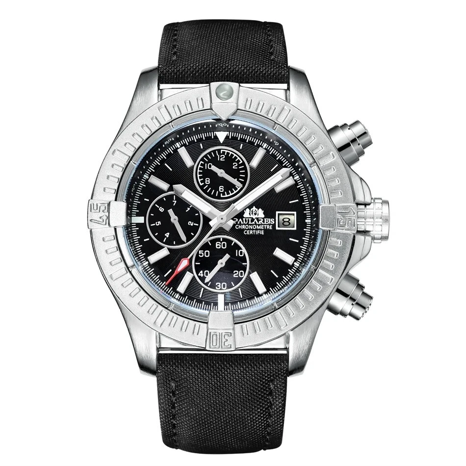 Paulareis Automatic Watch Men's Luxury Leather Chronograph 30M Waterproof Diver