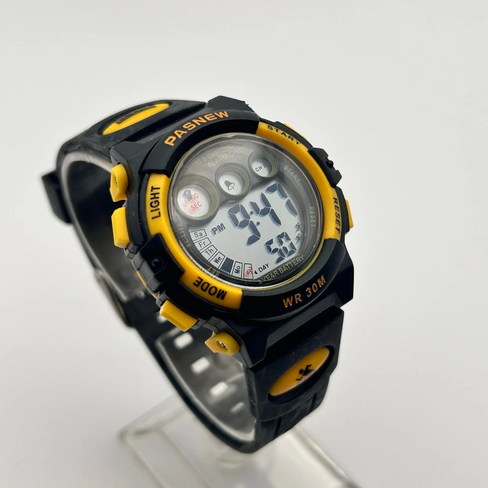 PASNEW Black Yellow 38mm Digital Women’s Watch Working New Battery
