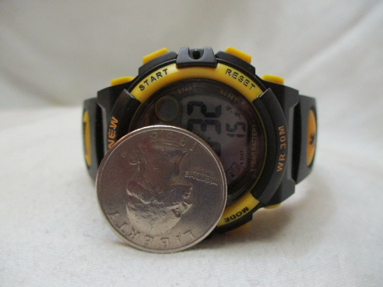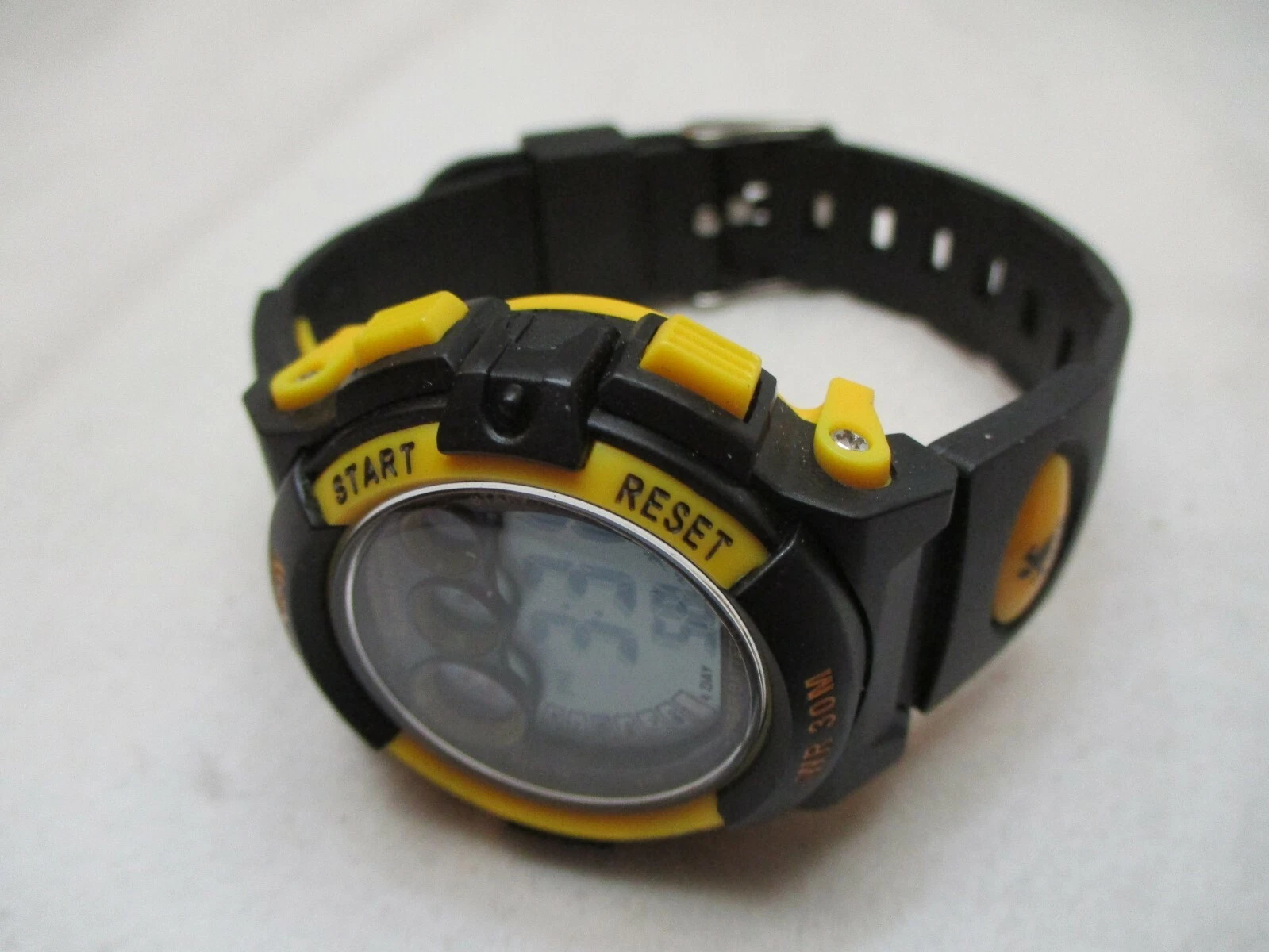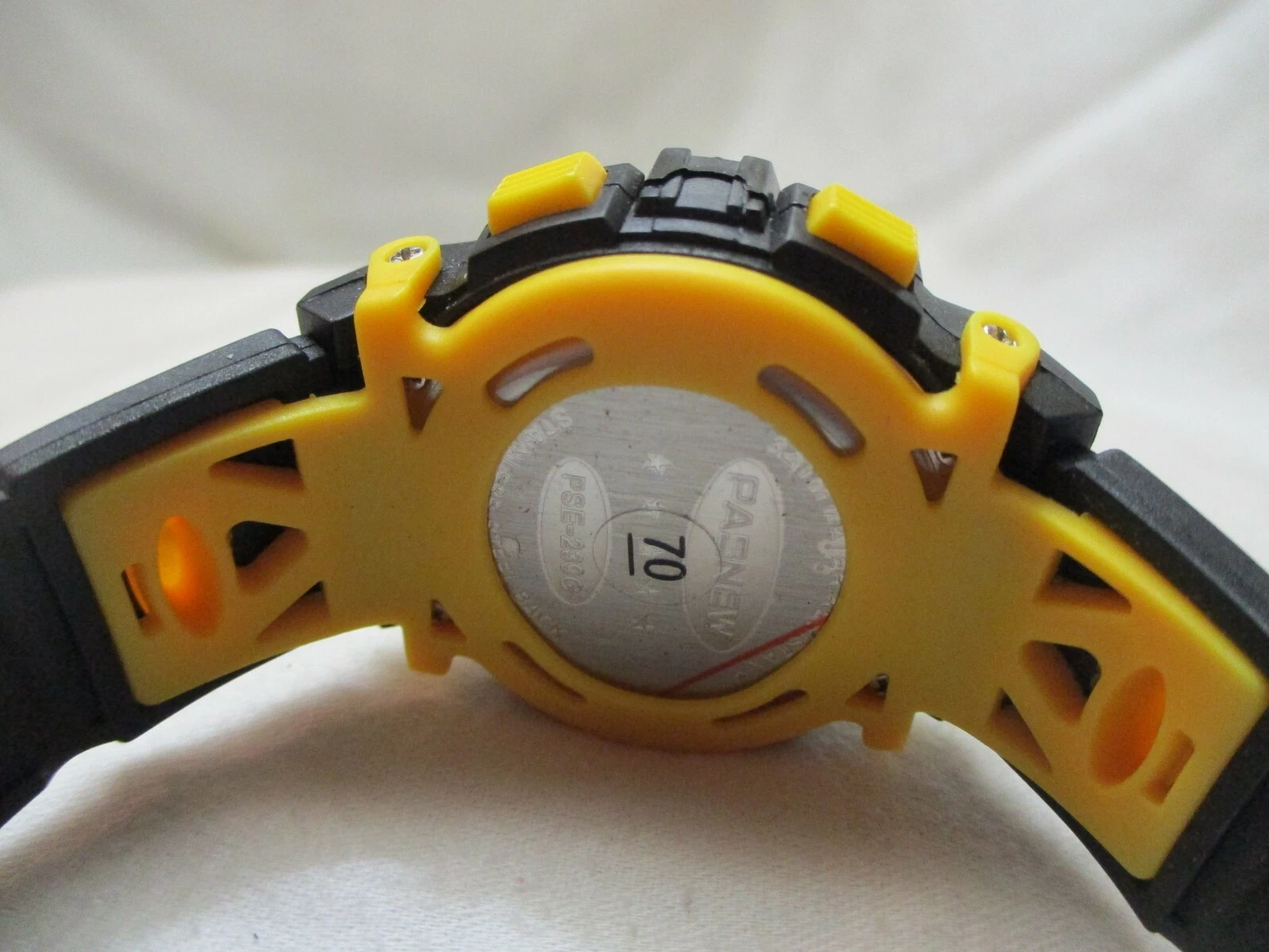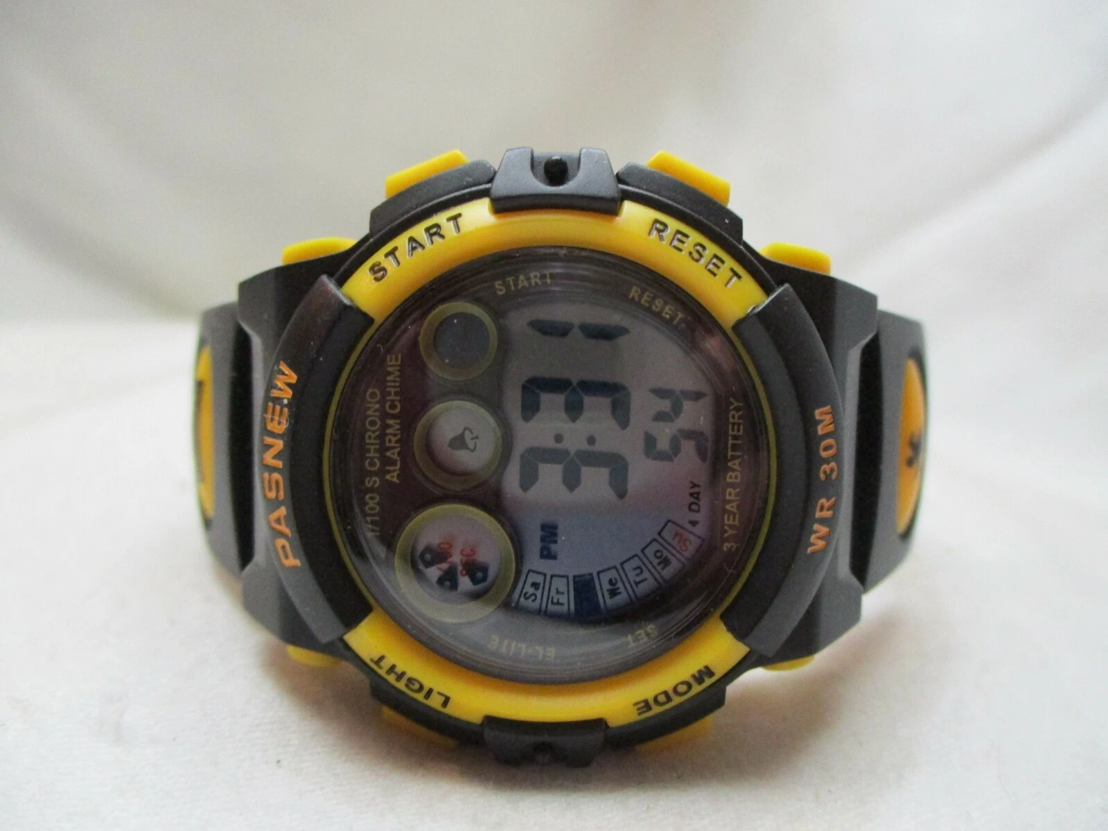 Pasnew Digital Wristwatch Yellow & Black Buckle Band WR 30M Alarm Chrono