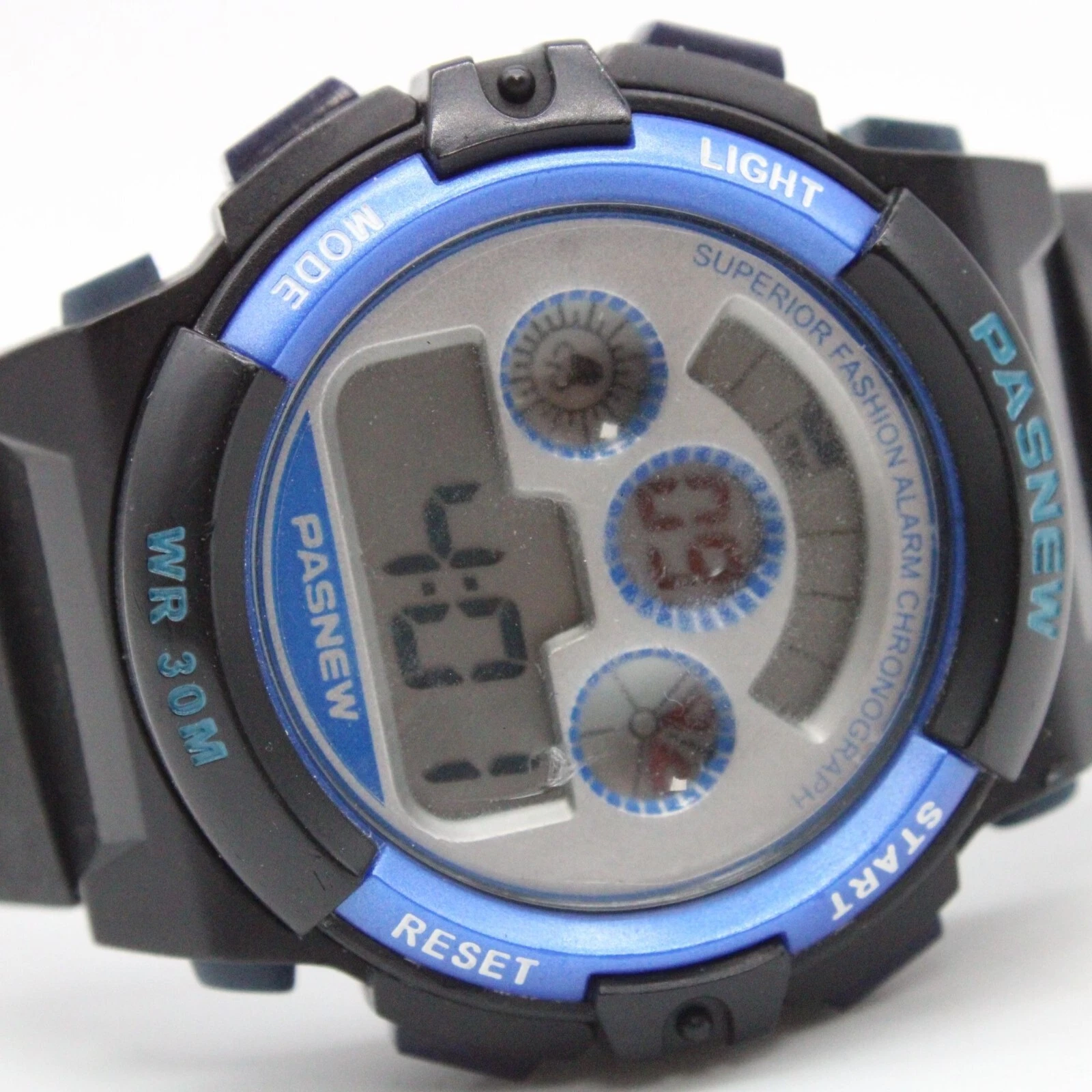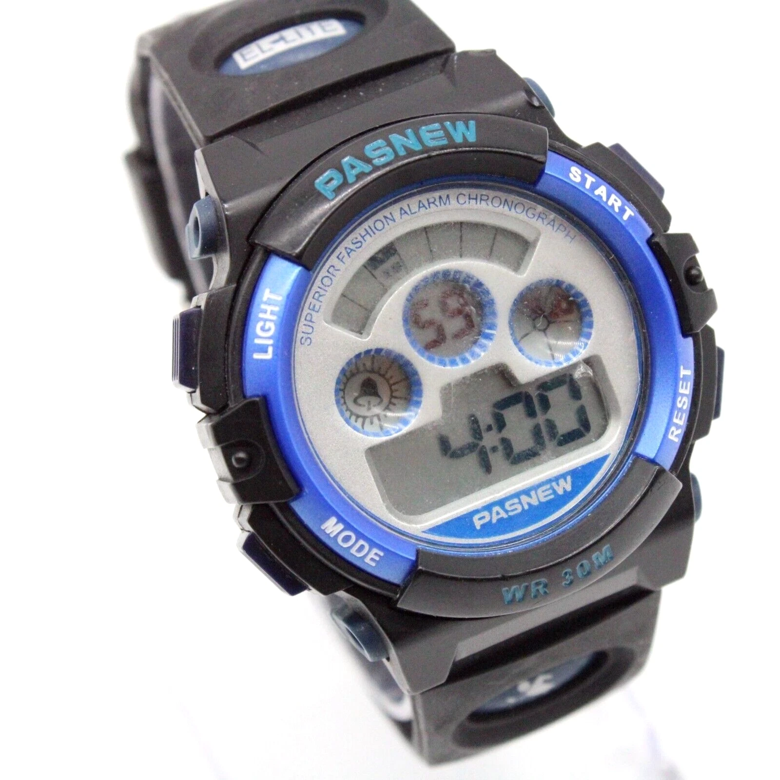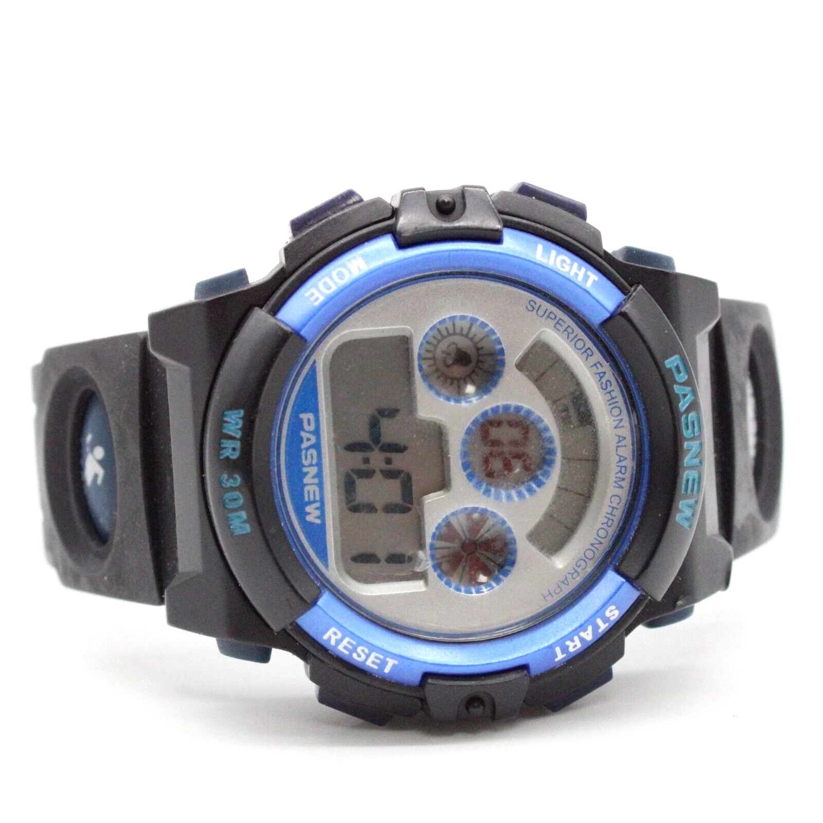 Vintage Pasnew Digital Watch Unisex Black Tone Steel Sports Running WR 30M