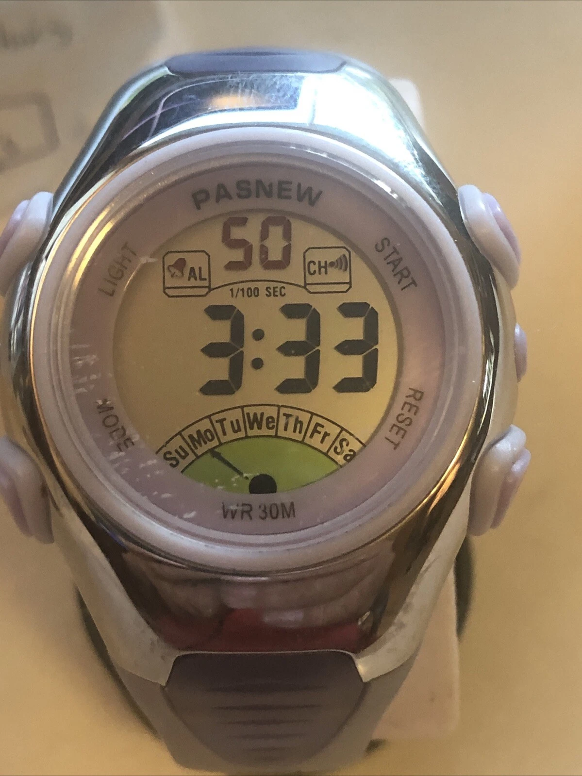 Pasnew Women's Watch Purple Band Digital Sport 30M WR NEW BATTERY RUNS!
