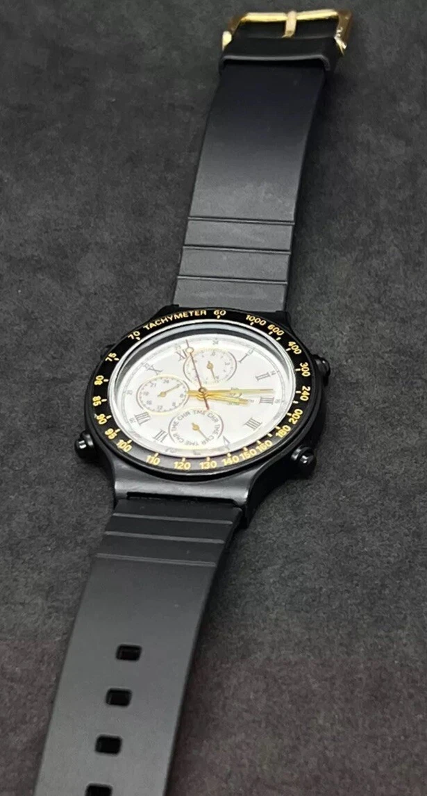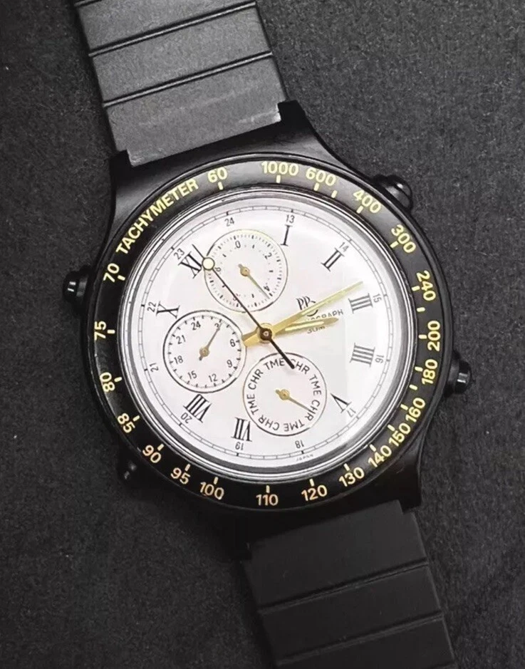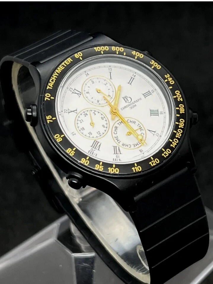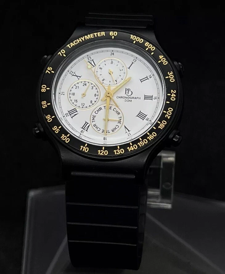 Vintage New PAUL BREGUETTE Chronograph Men's 38mm Quartz Watch Black White Dial