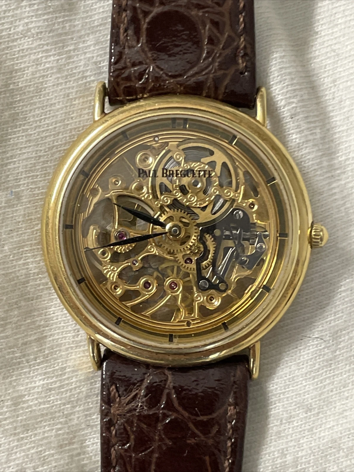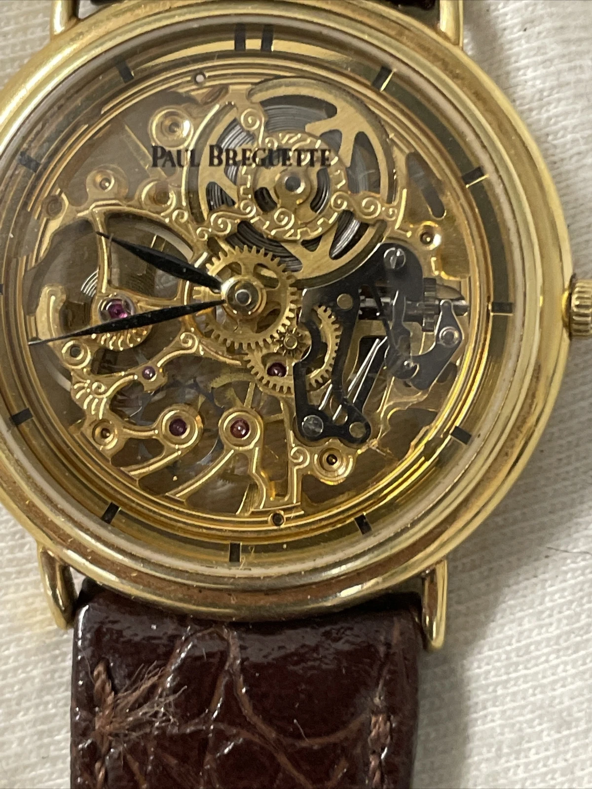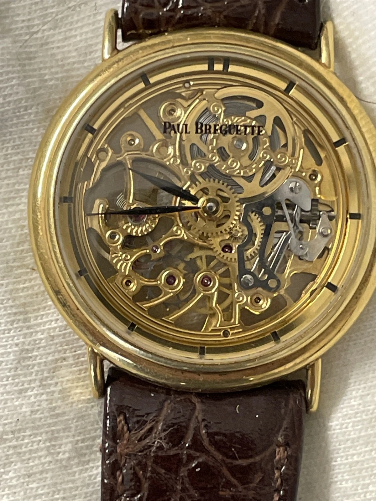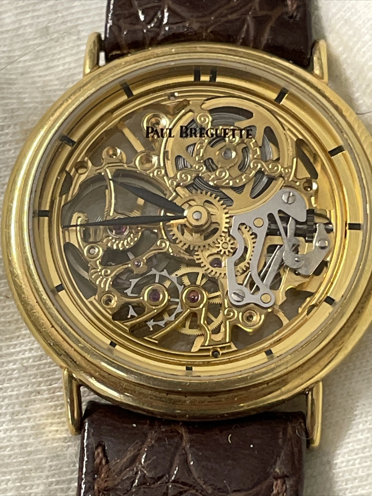 14k Yellow Gold Paul Breguette Skeleton Watch 32 Mm Case Mechanic