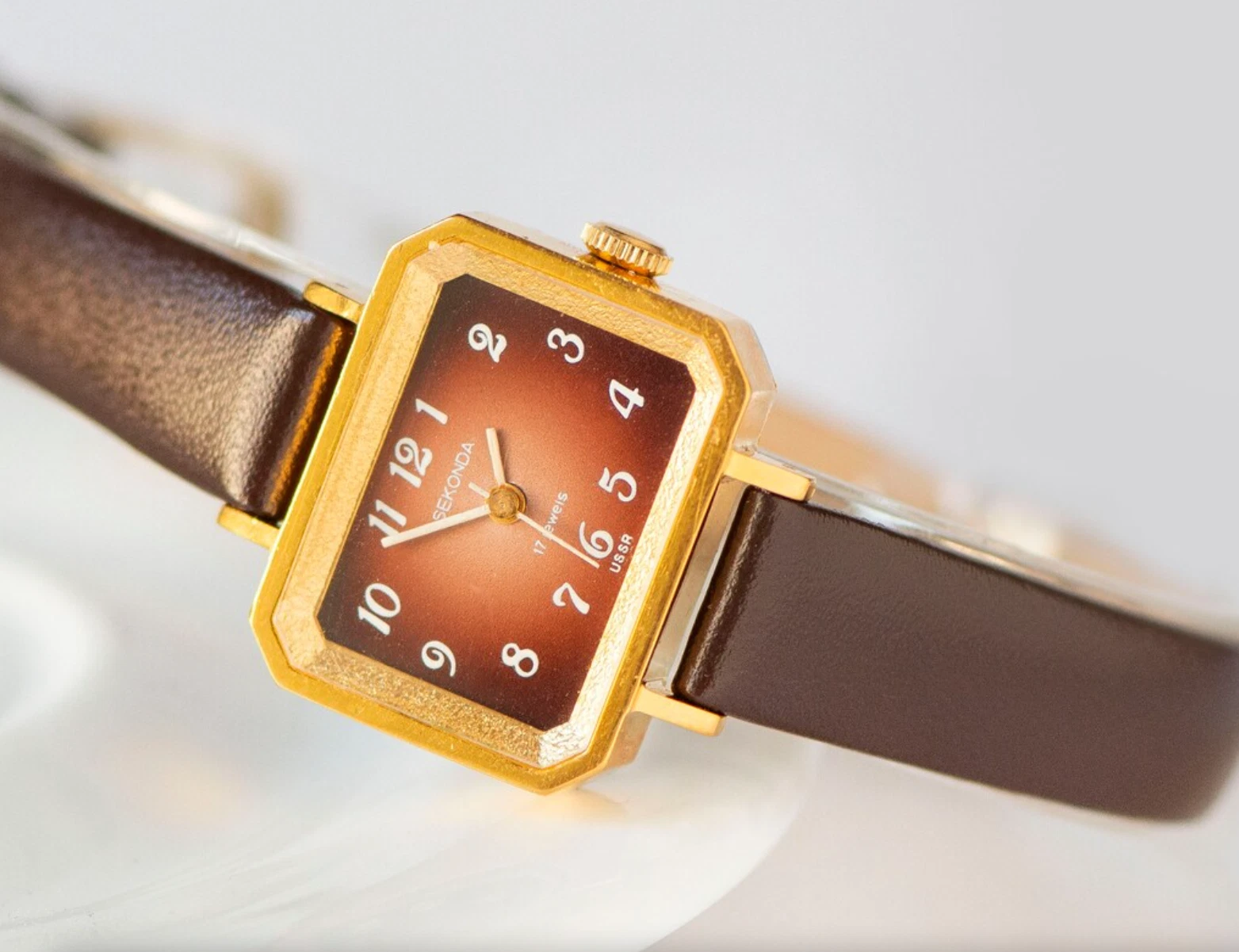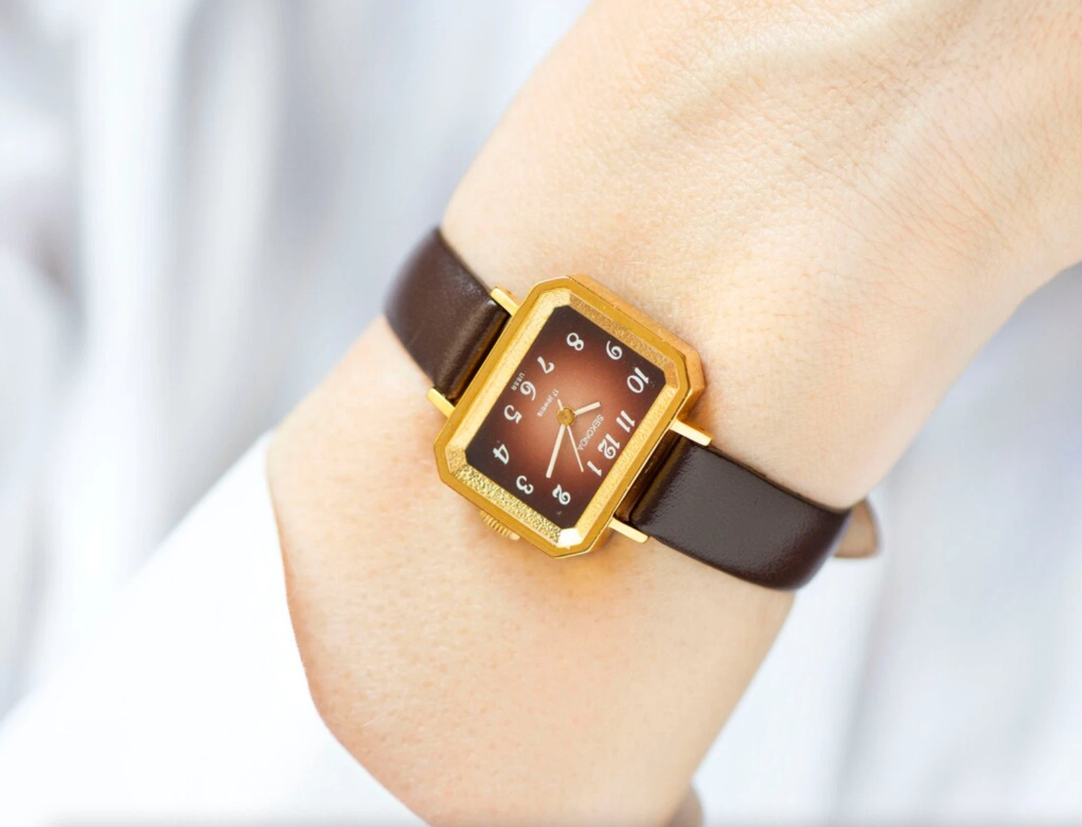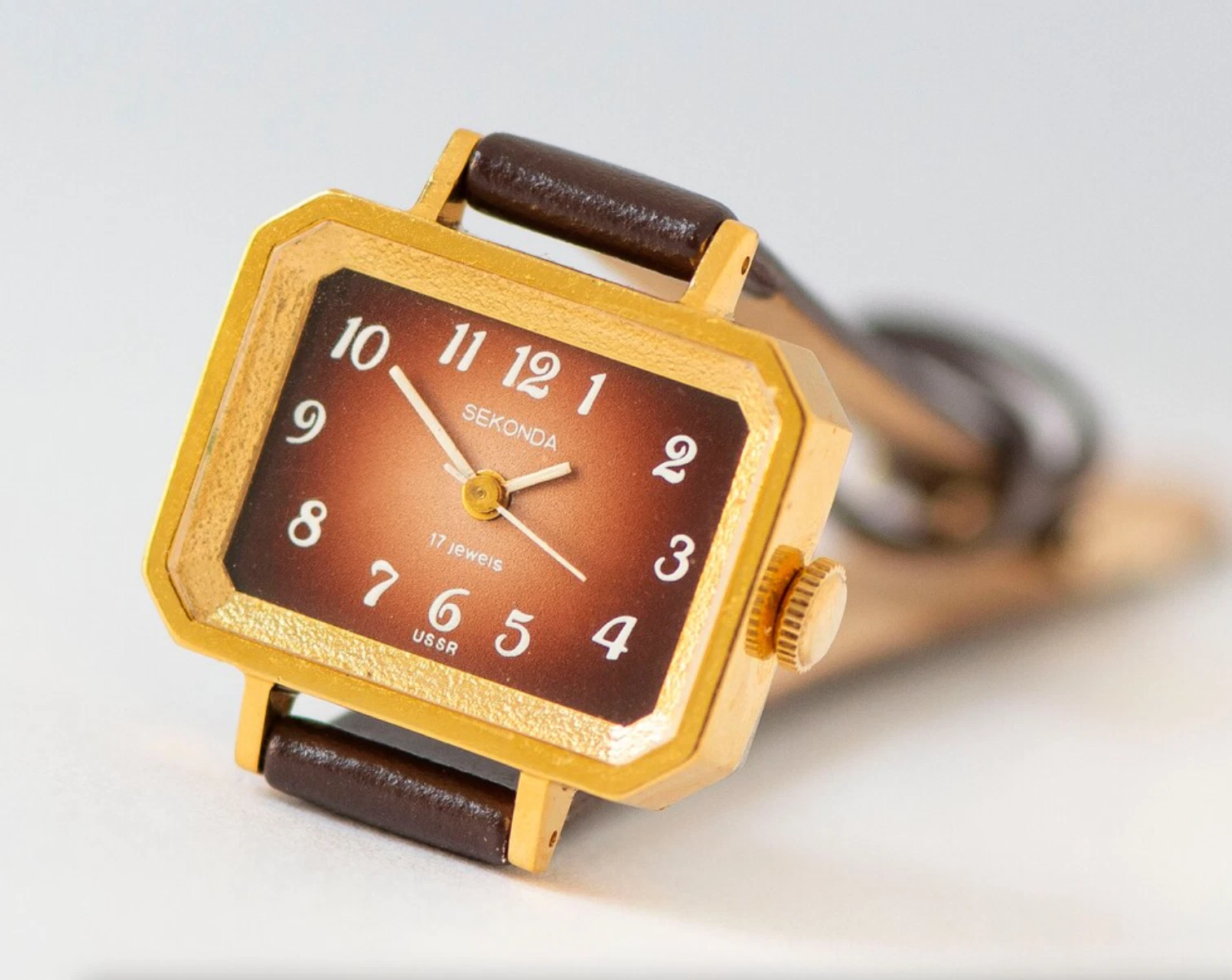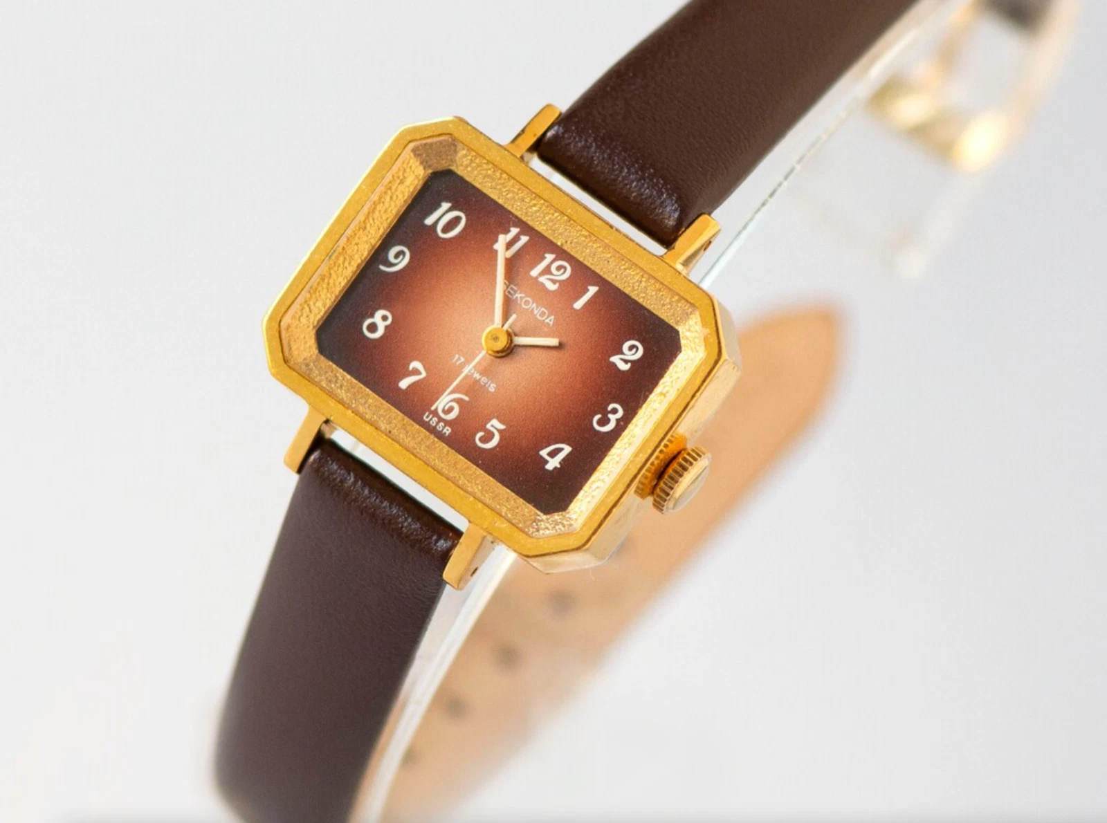 Modern watch for women Sekonda new old stock, gold plated tank watch for lady