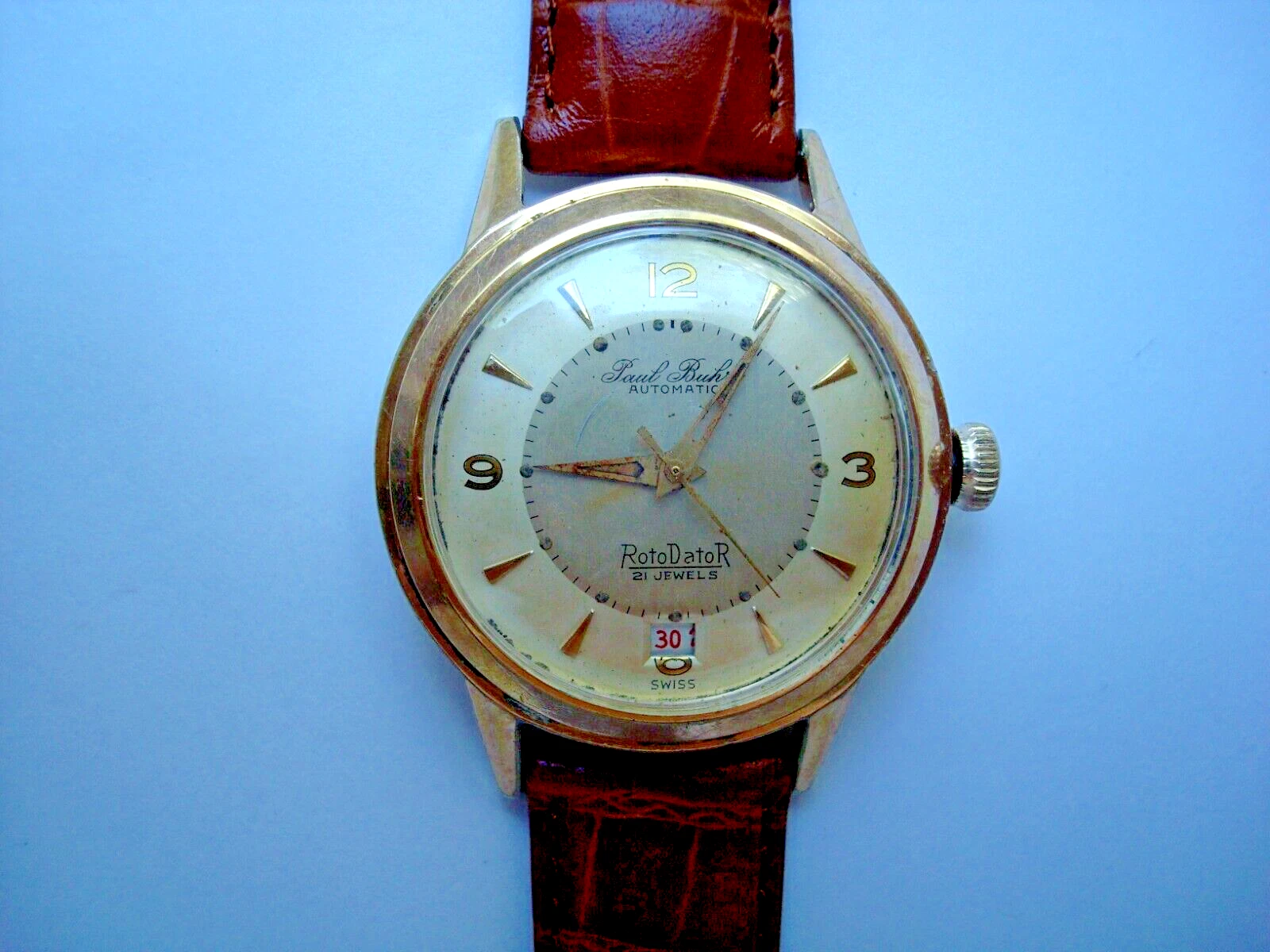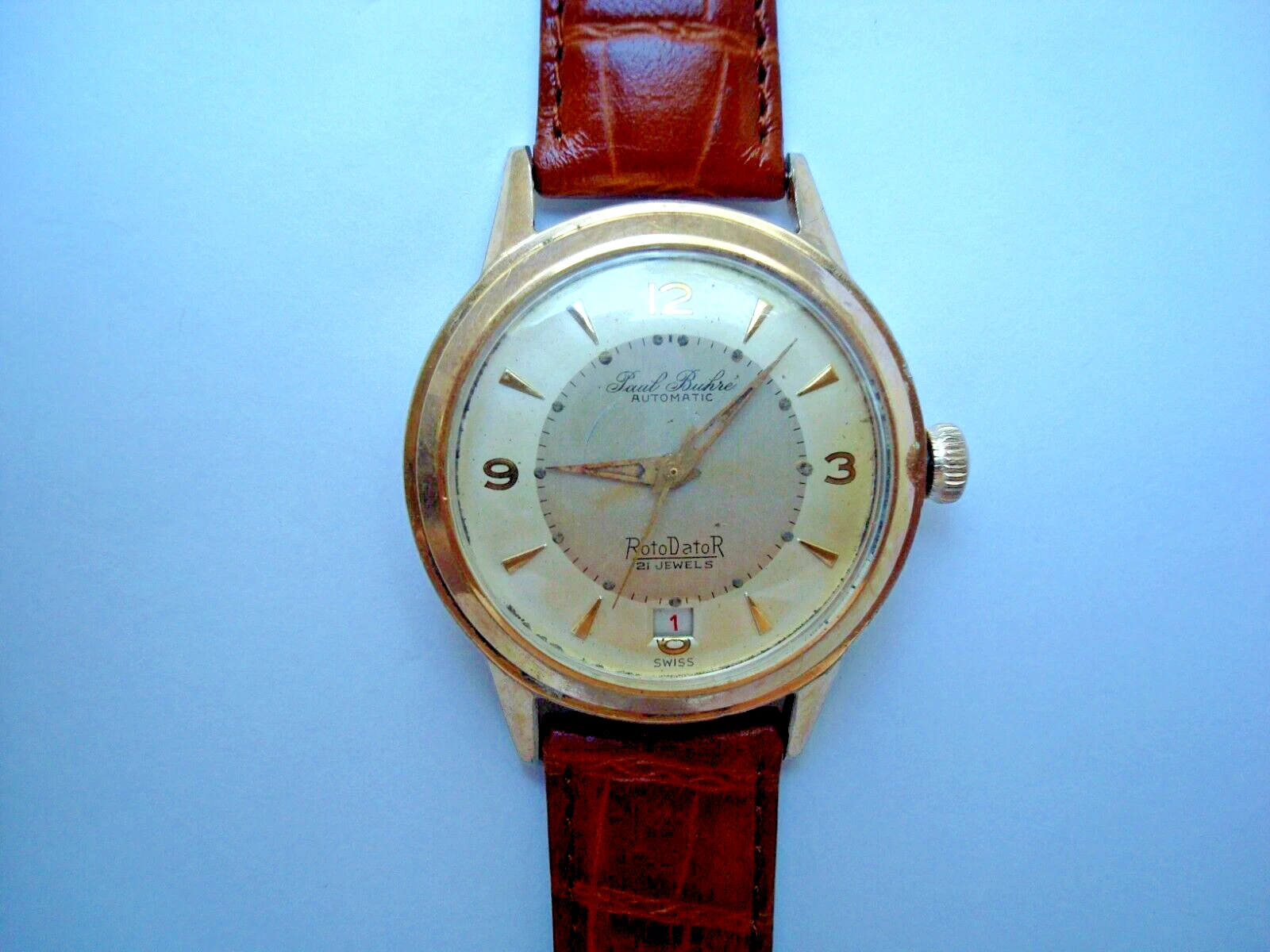 Paul Buhre Bidynator RotoDator Mens Automatic Watch 21j. F692 Date New Band Runs