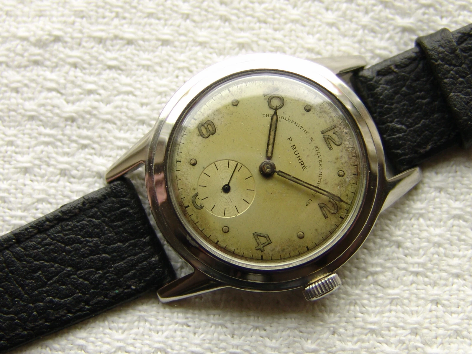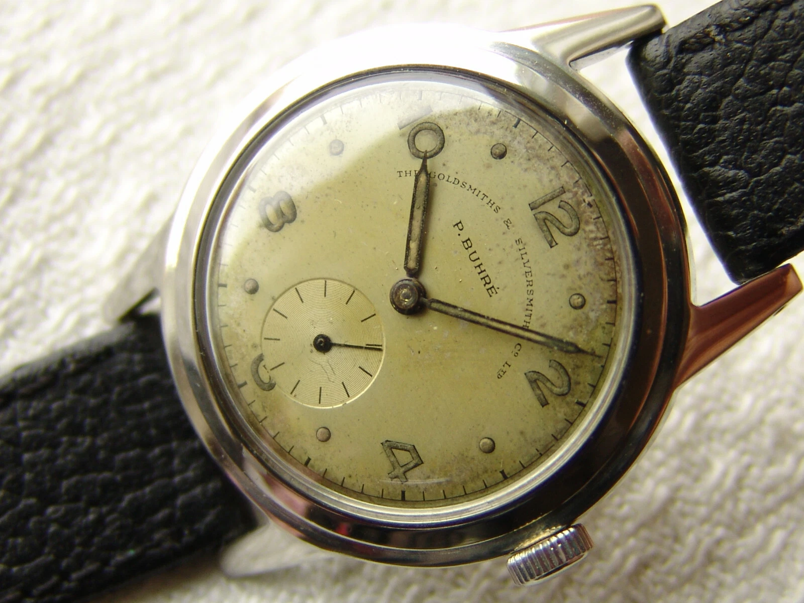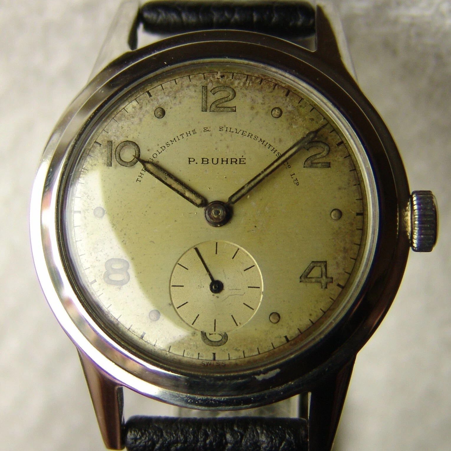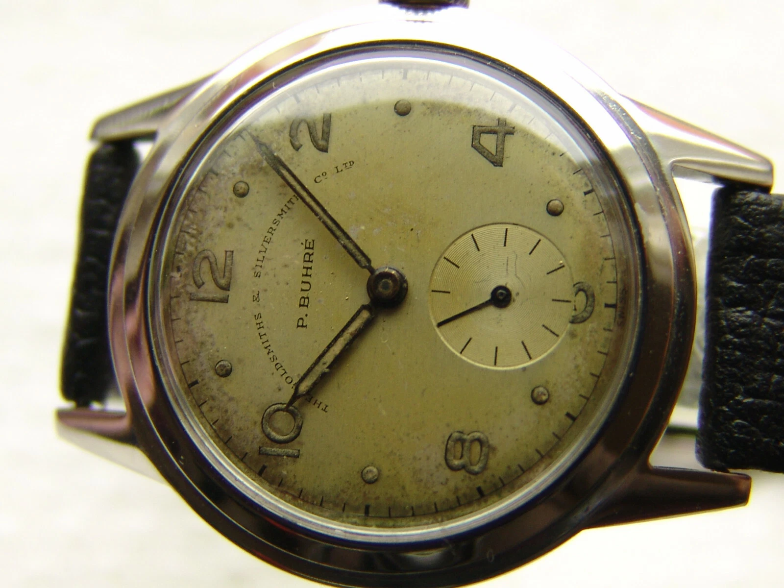 33mm VINTAGE WWII ERA MILITARY PAUL BUHRE MEN'S WRISTWATCH GOOD CONDITION