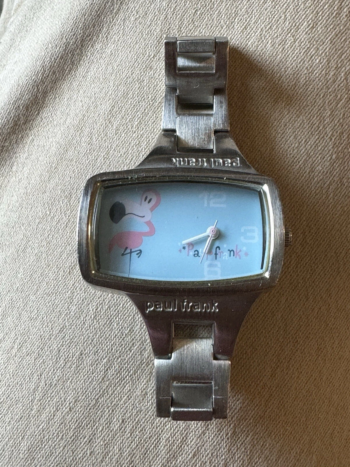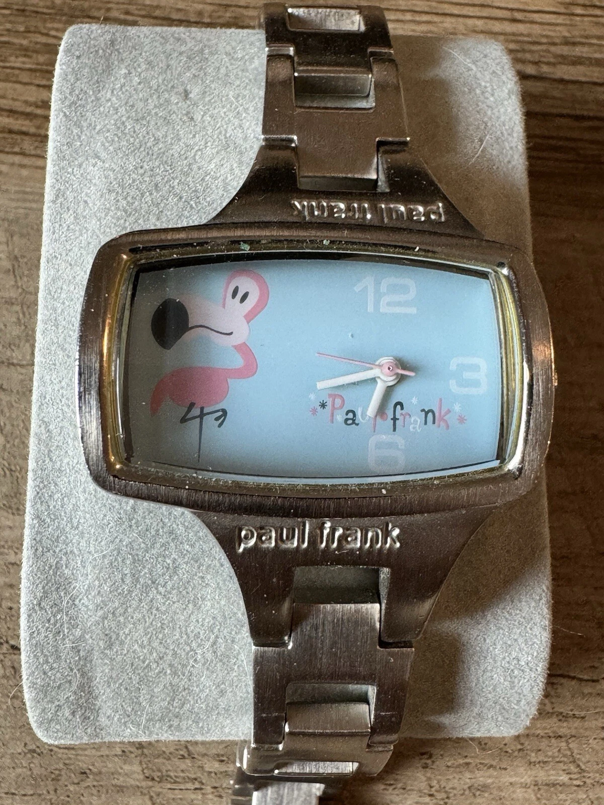 Paul Frank Flamingo Watch Silver Tone 32mm Case New Batt   Max 5.5 Inch Wrist