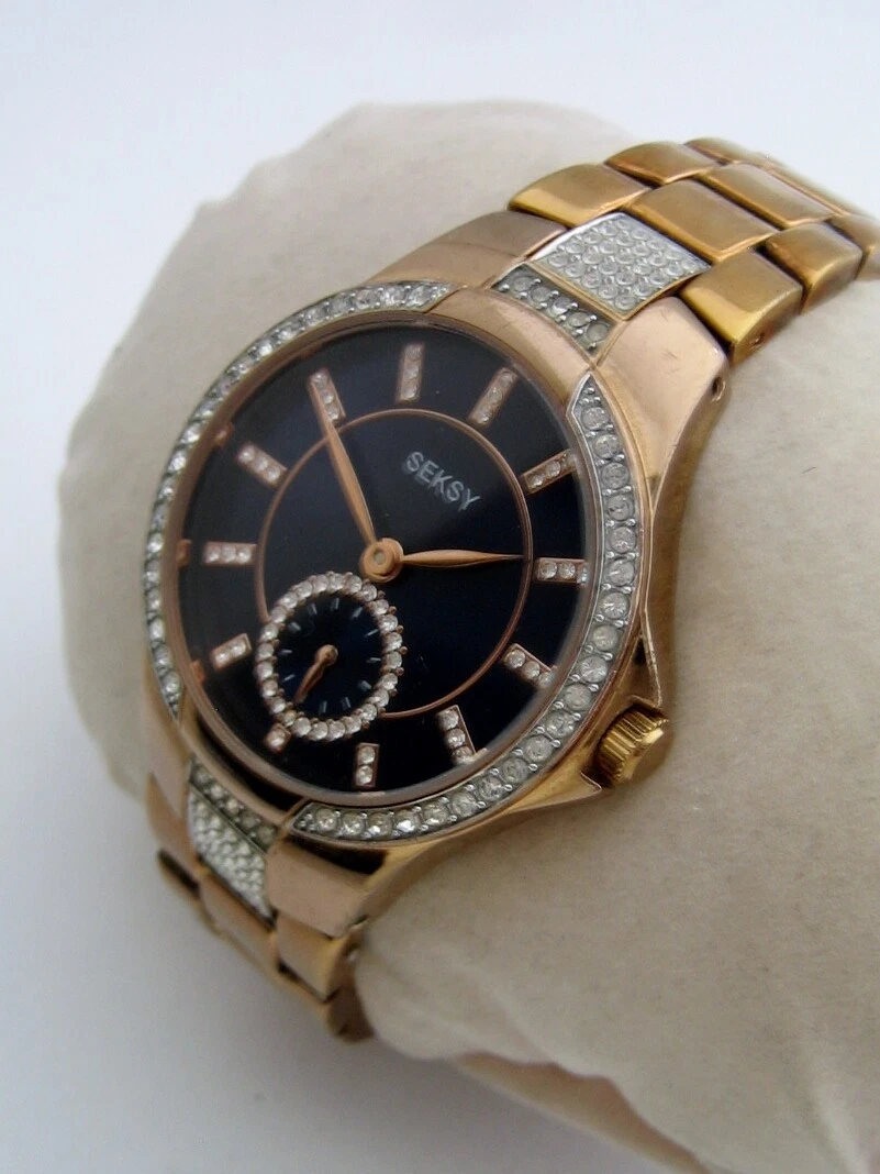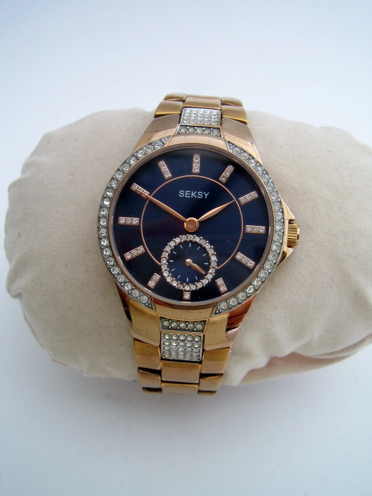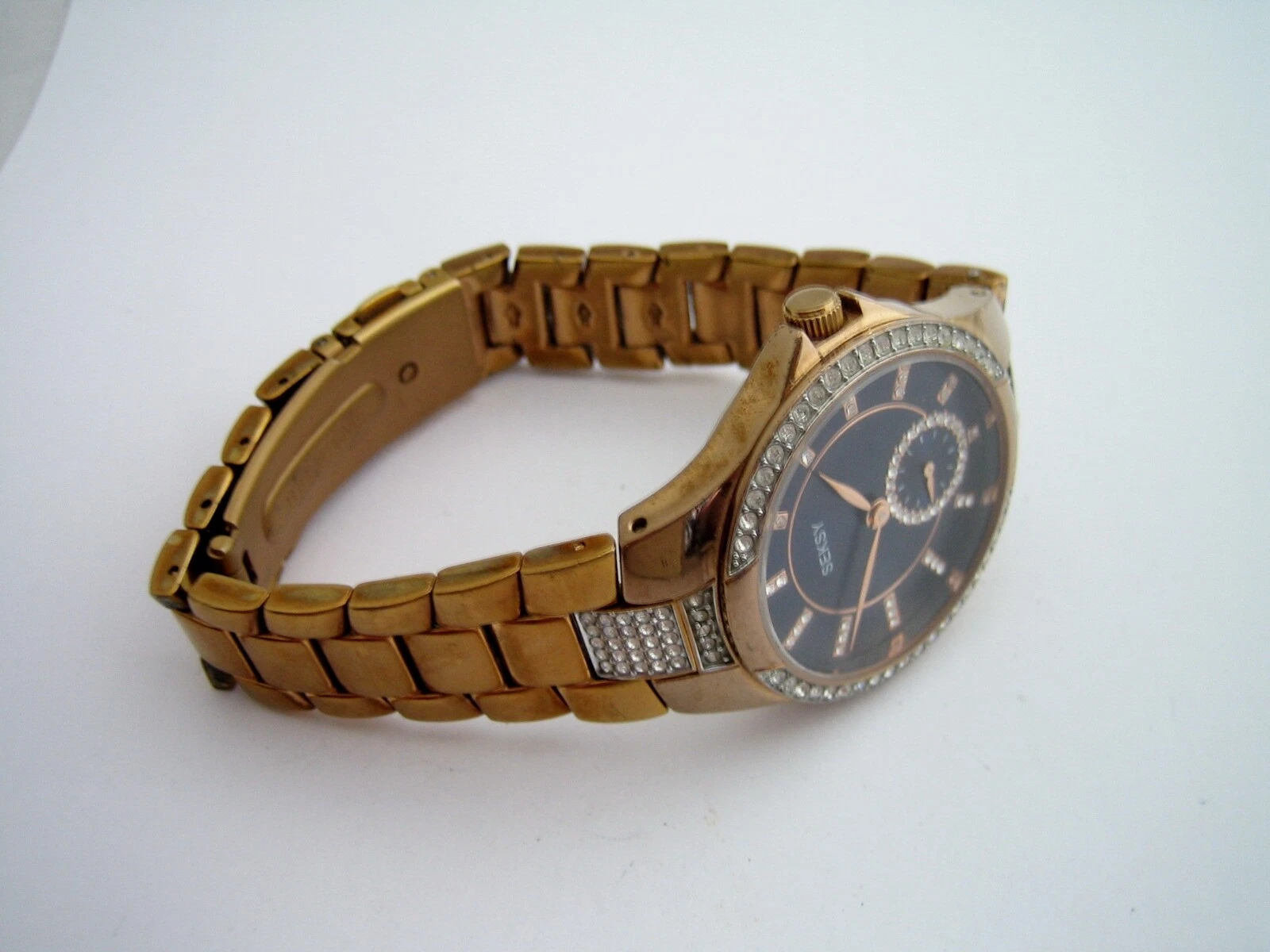 SEKSY BY SEKONDA WATCH WOMENS 2183 GOLD STAINLESS STEEL CRYSTALS GENUINE