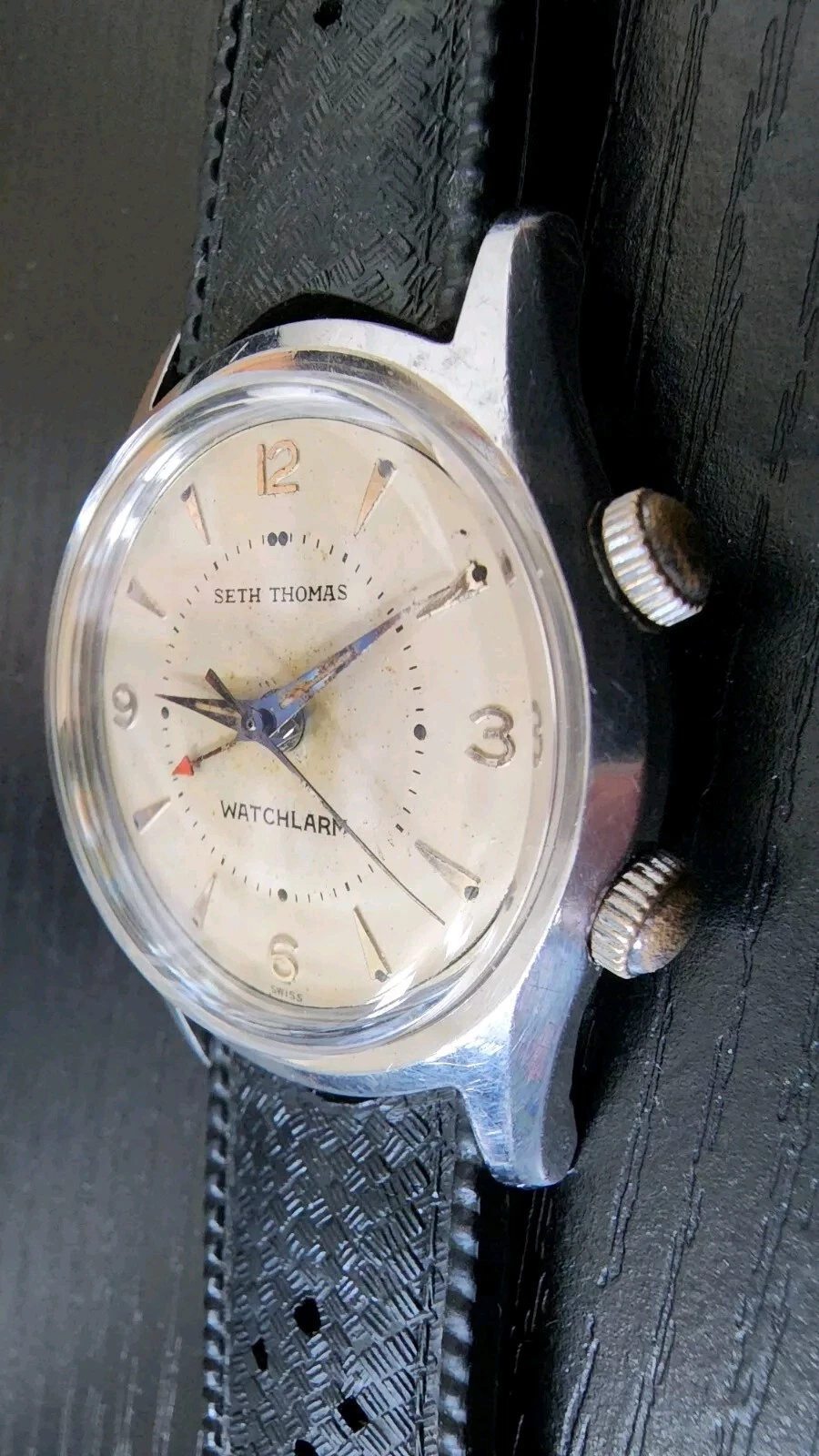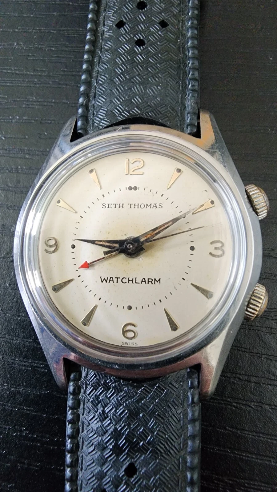 1950s Seth Thomas Alarm Wrist Watch Rare AS 1475 17J Working NOS Crystal Band