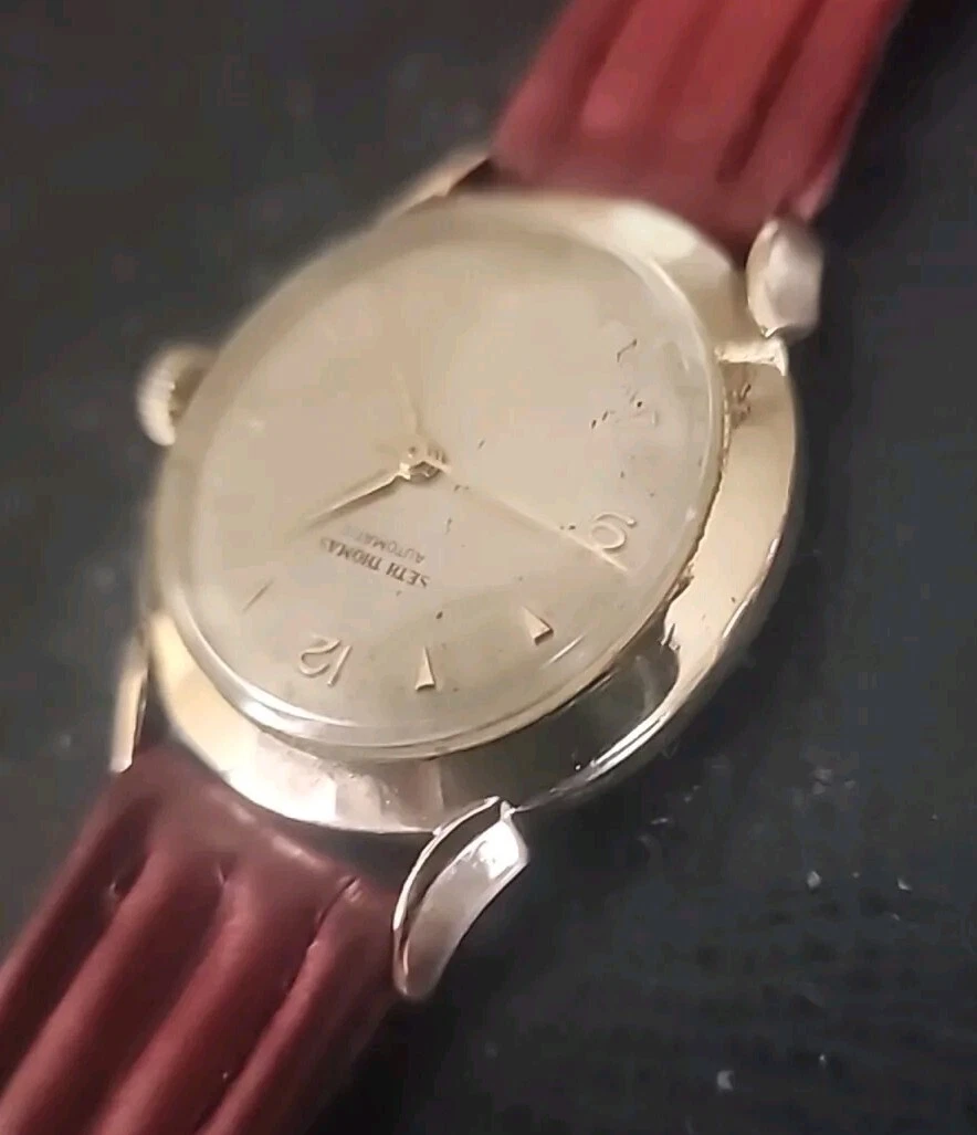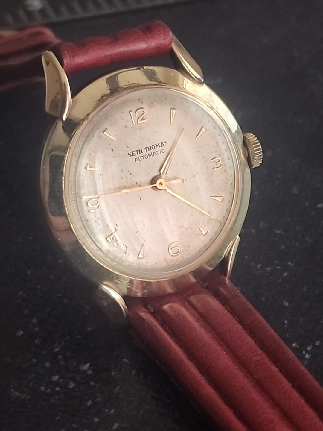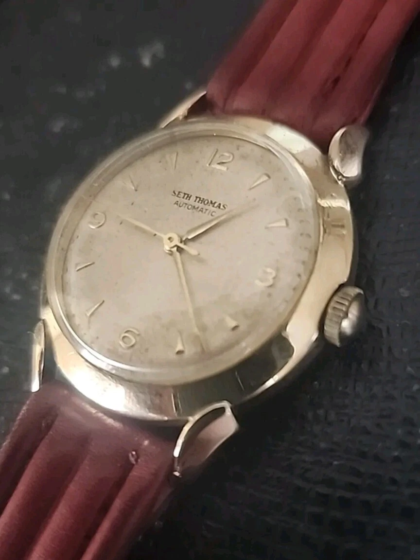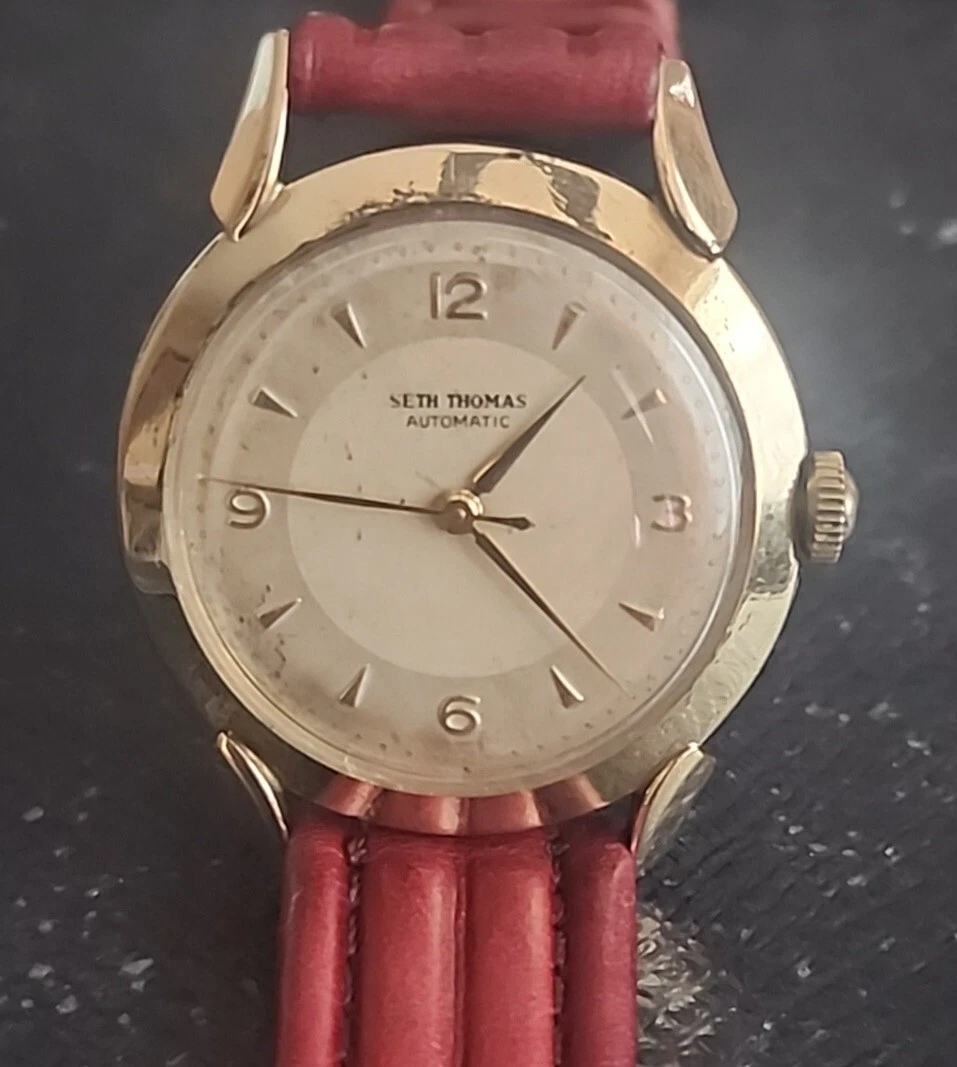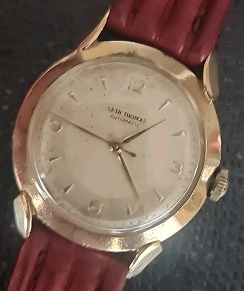 Vintage Seth Thomas Automatic Pie Pan Dial,New Ox Blood Tone Band& Just $erviced
