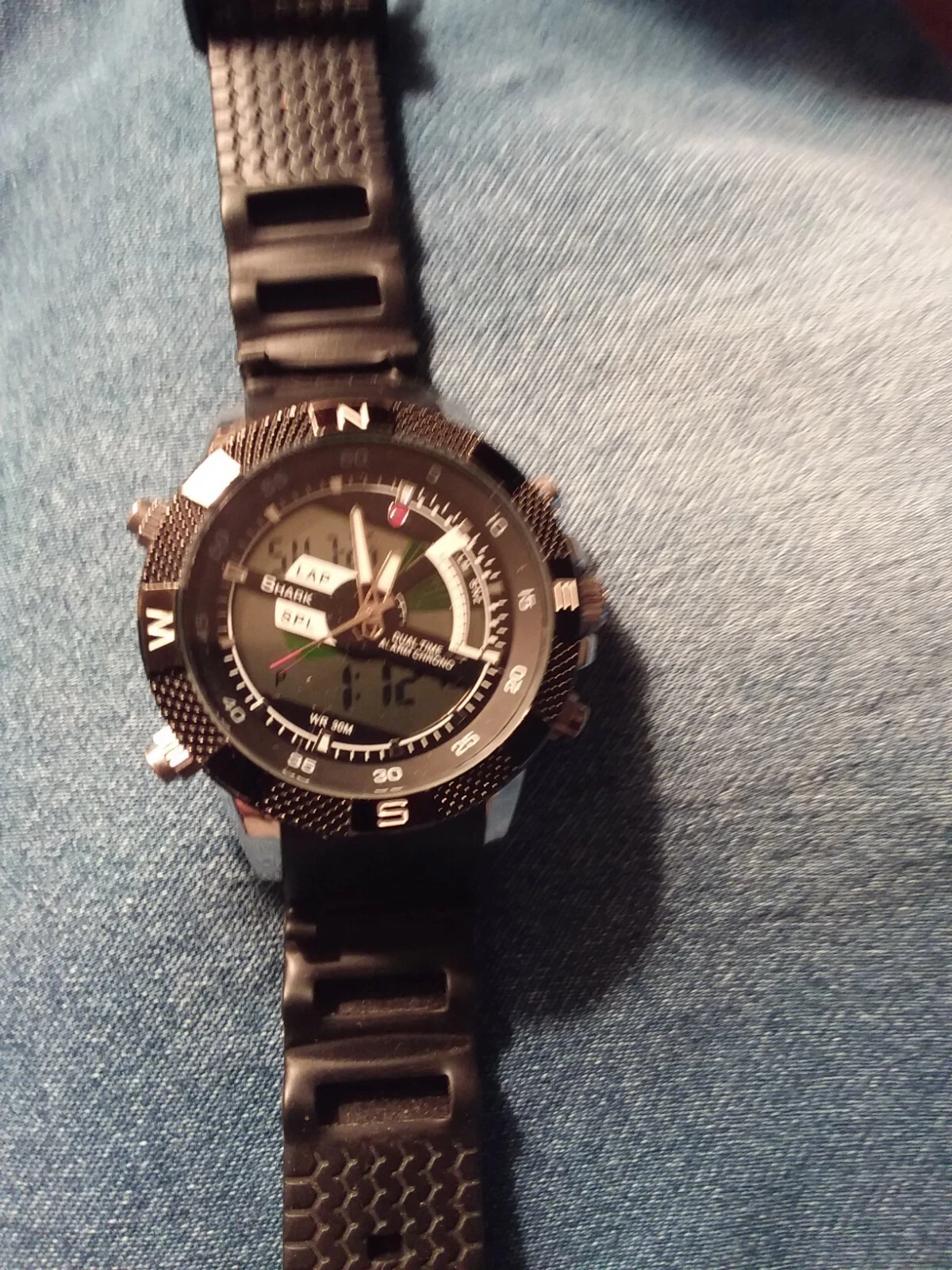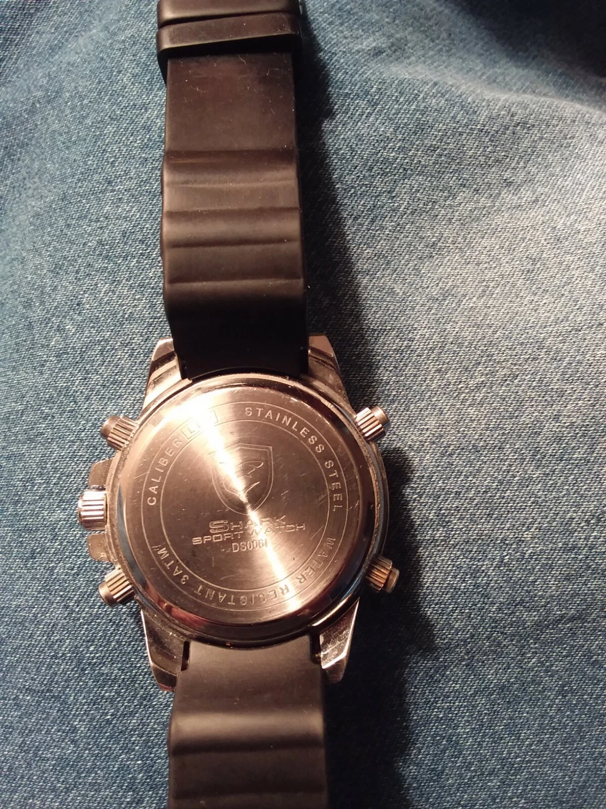 Shark Dual Time Digital Quartz Date Alarm Wrist Watch Excellent Condition