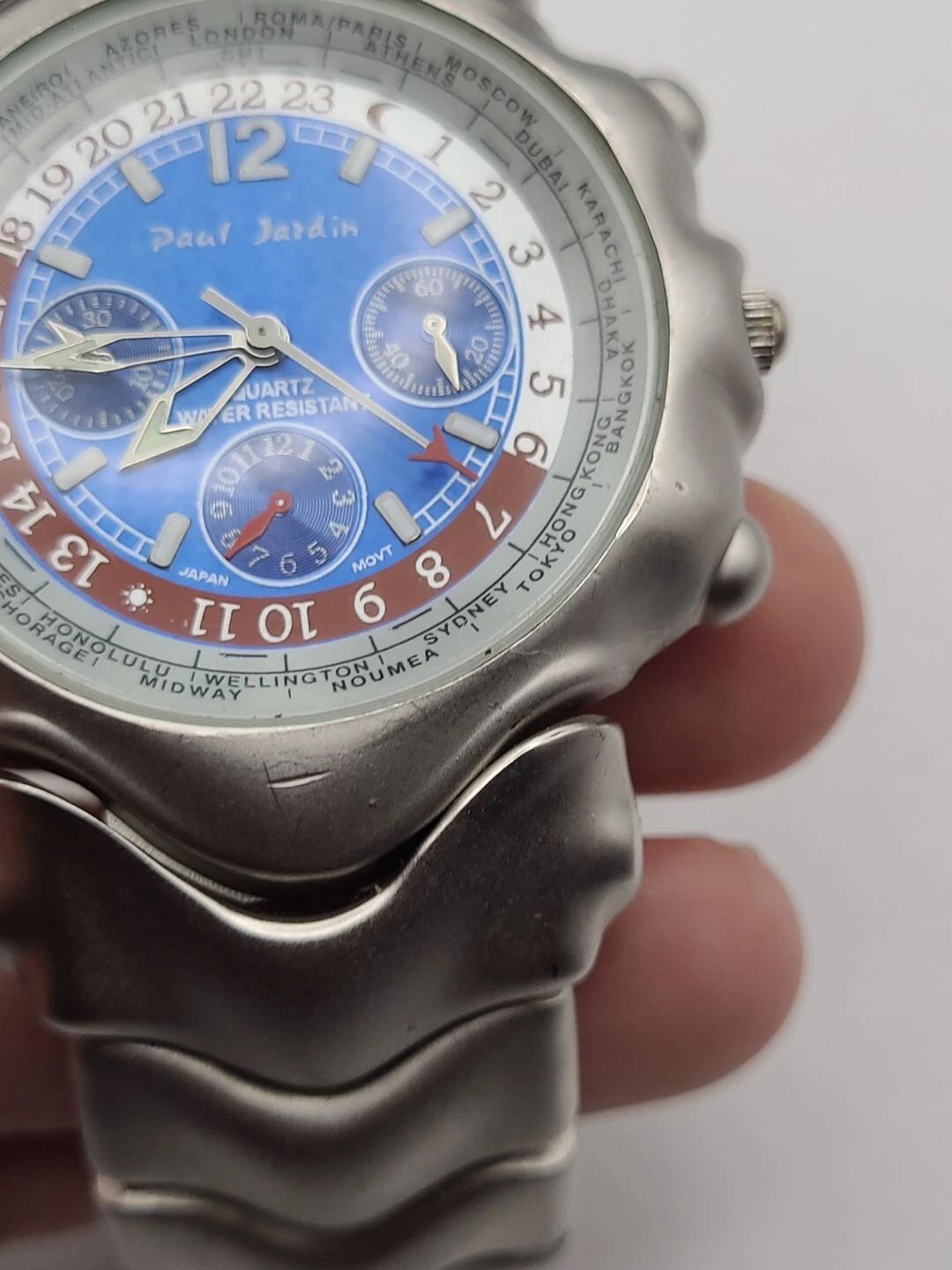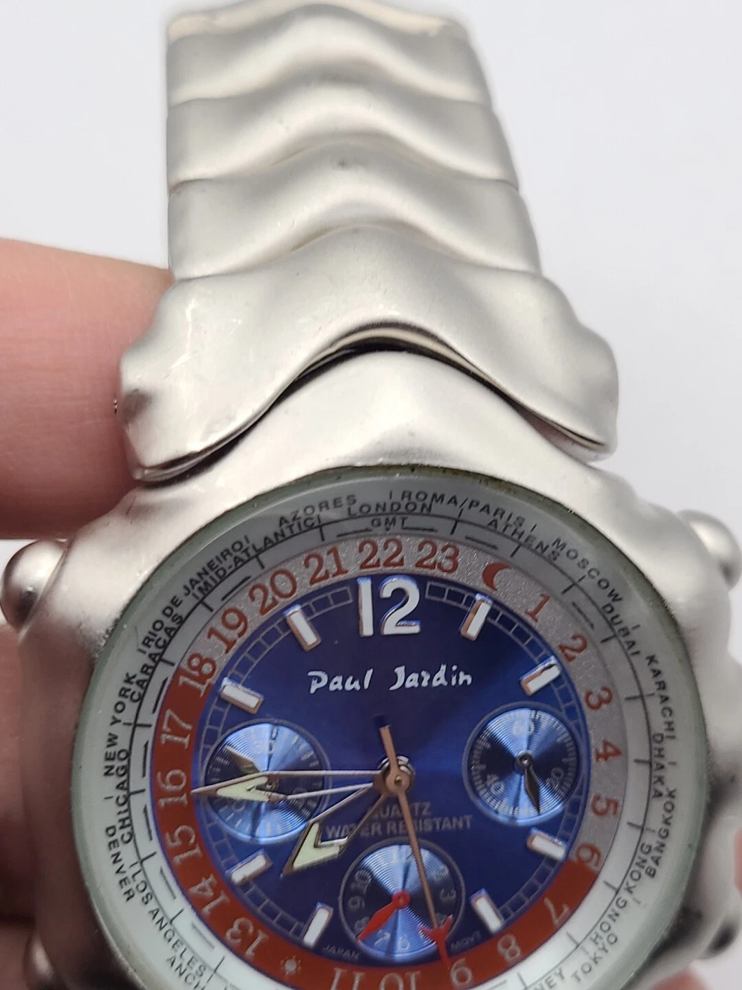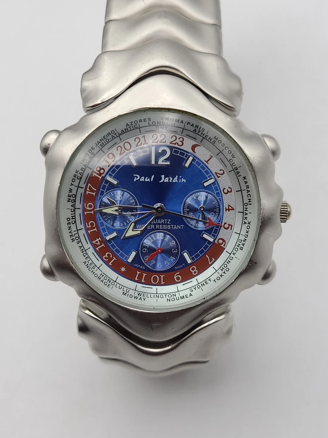 Men's PAUL JARDIN Silver Tone Bracelet Watch, Blue Dial Round Quartz New Battery