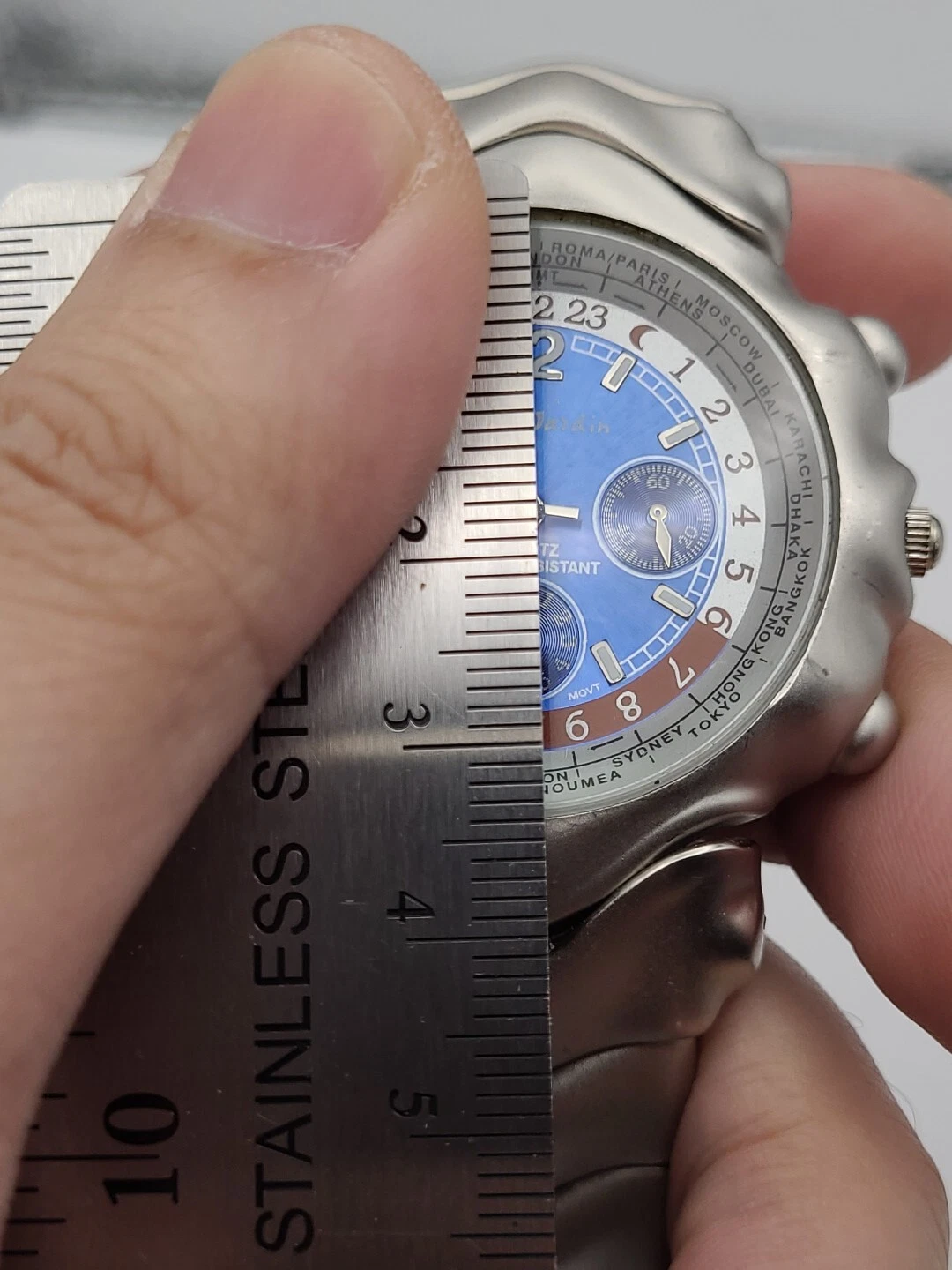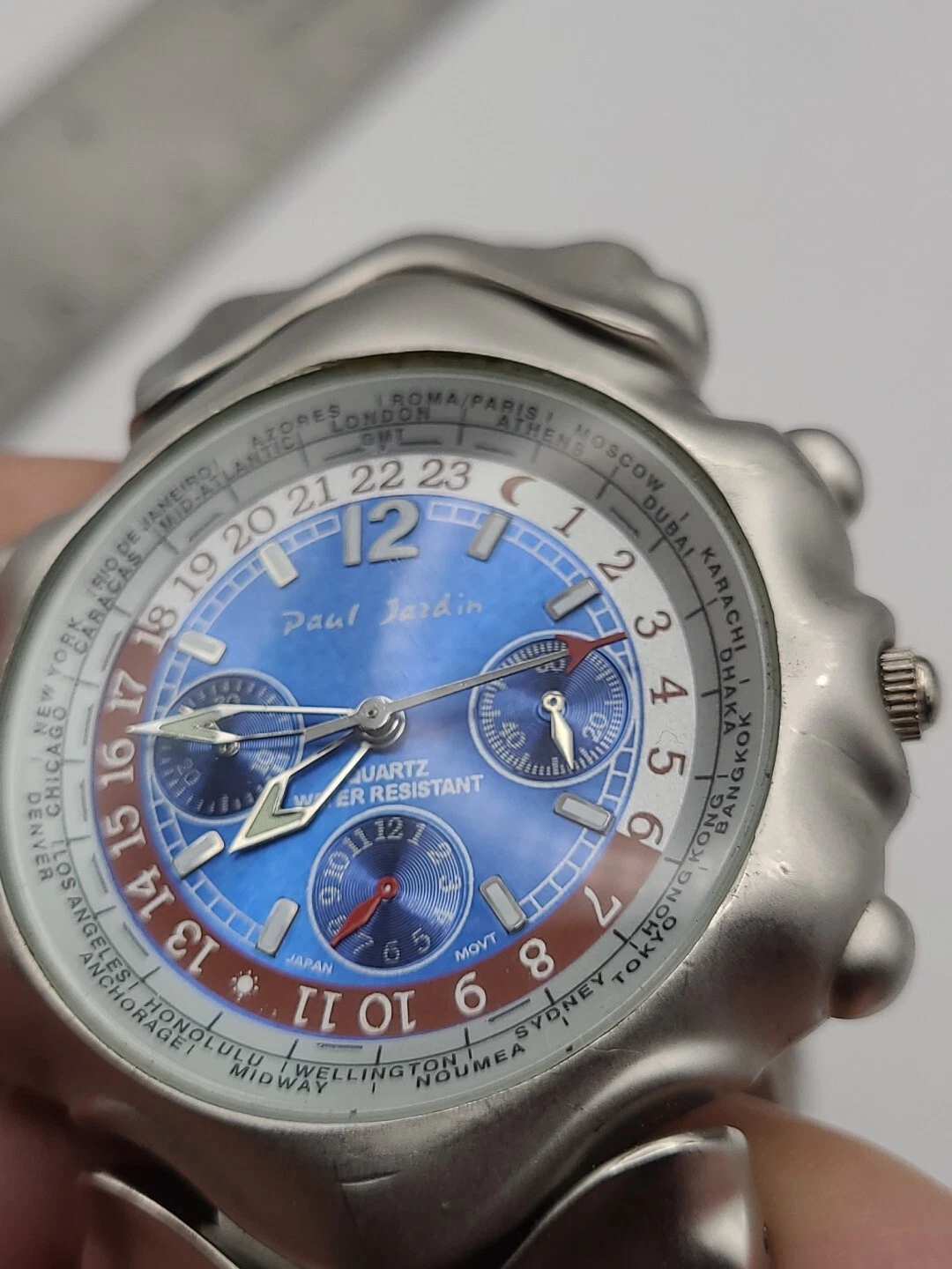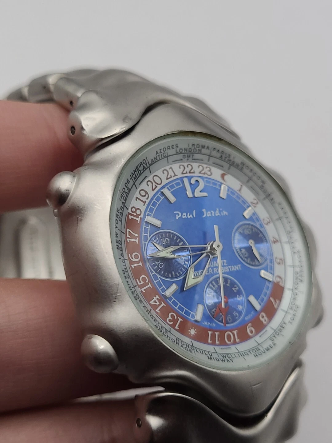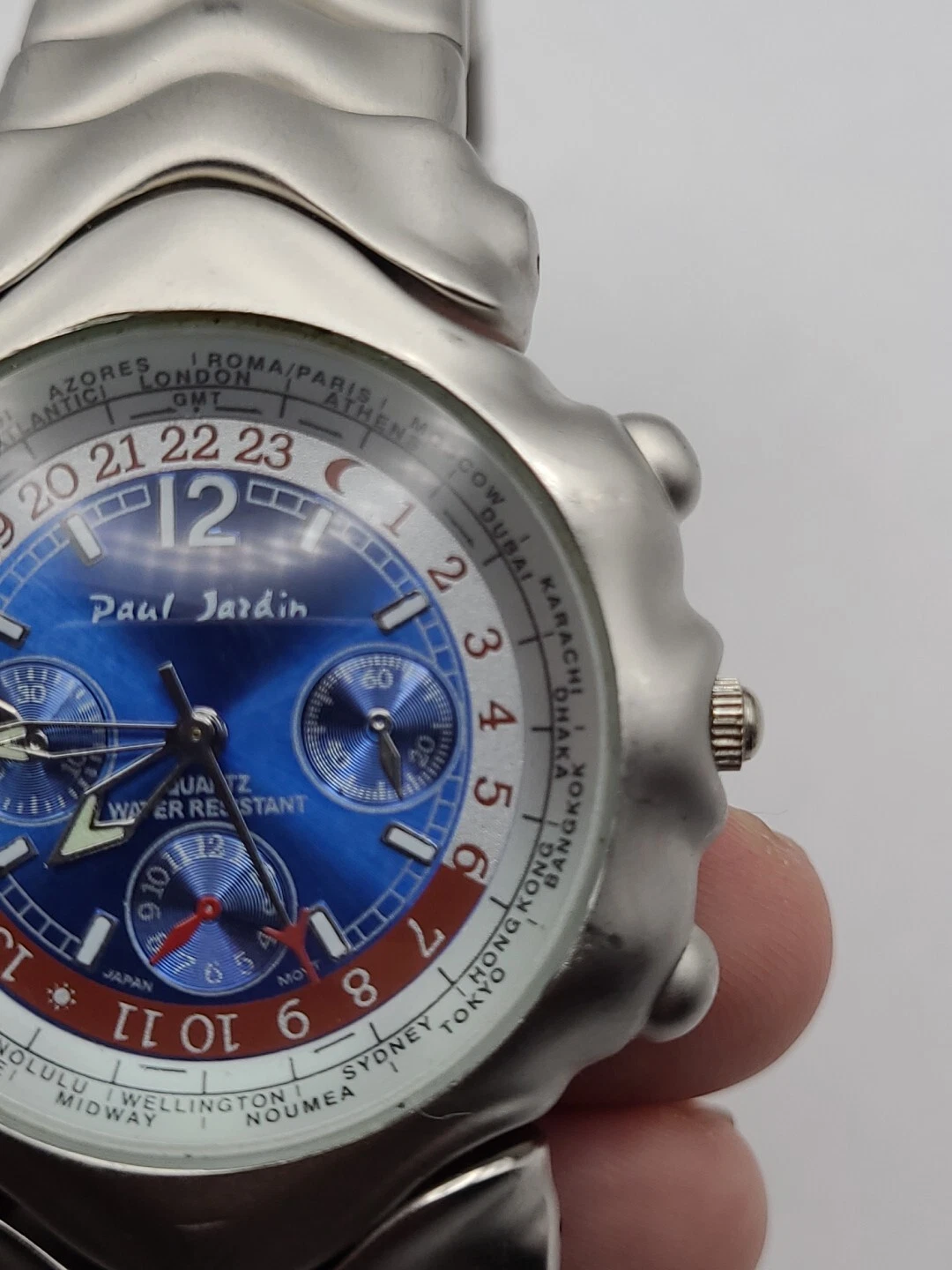 Men's PAUL JARDIN Silver Tone Bracelet Watch, Blue Dial Round Quartz New Battery