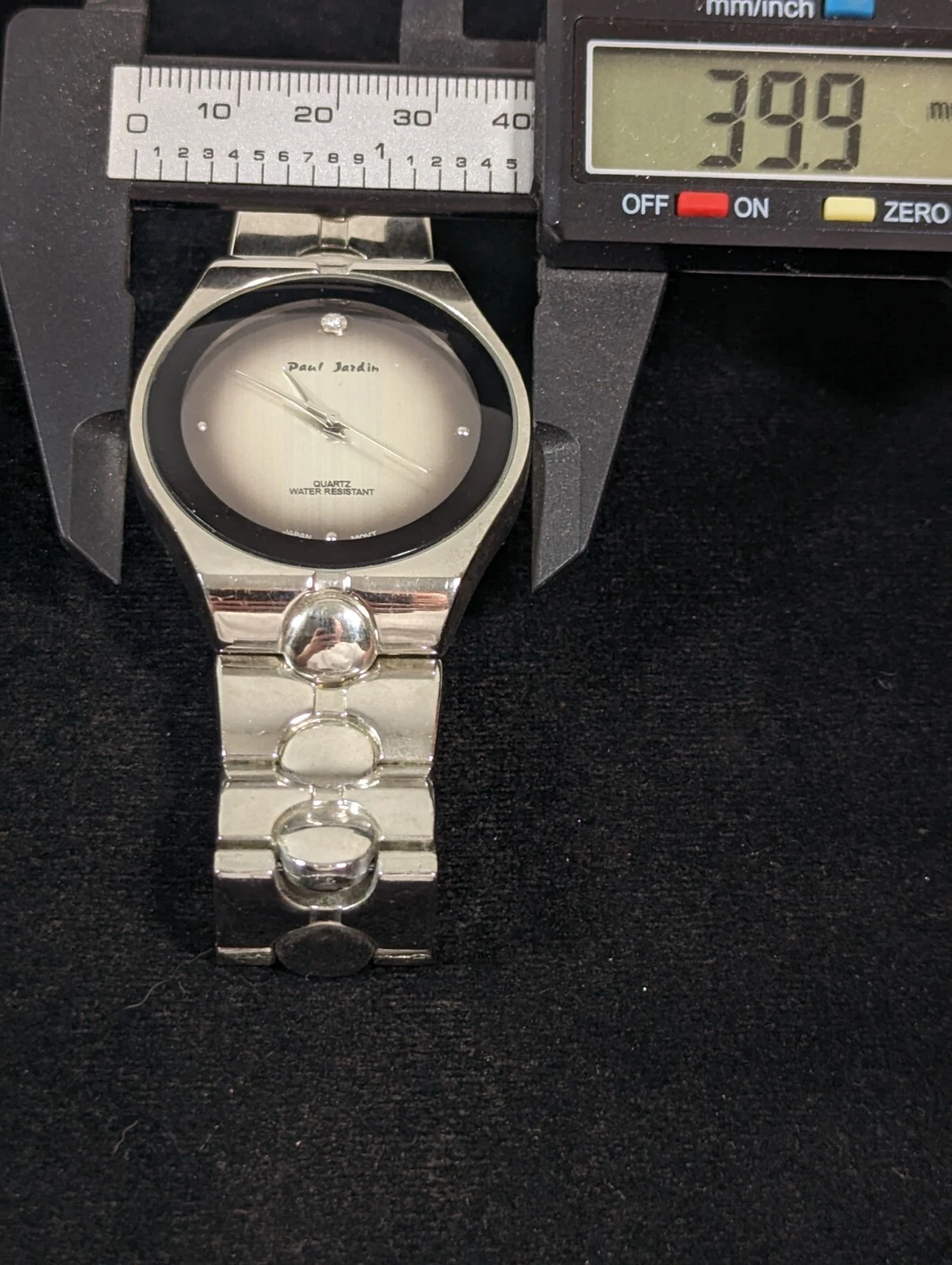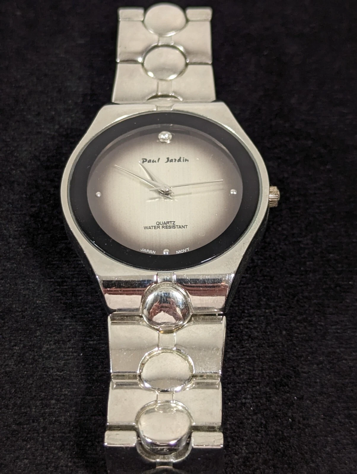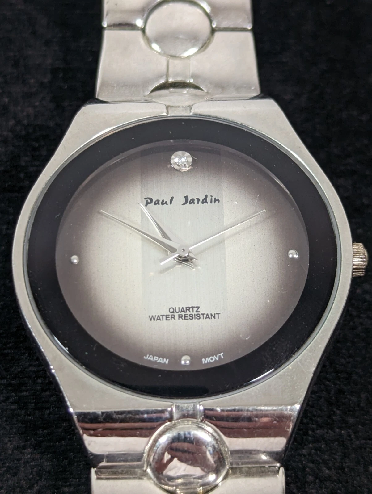 Mens Paul Jardin Brown Dial Silver Tone Stainless Steel Band Watch 8 Inch