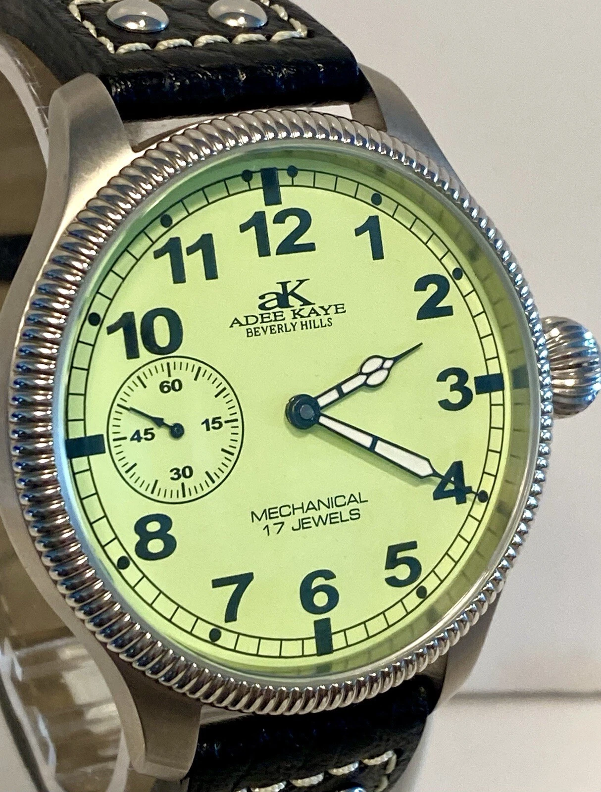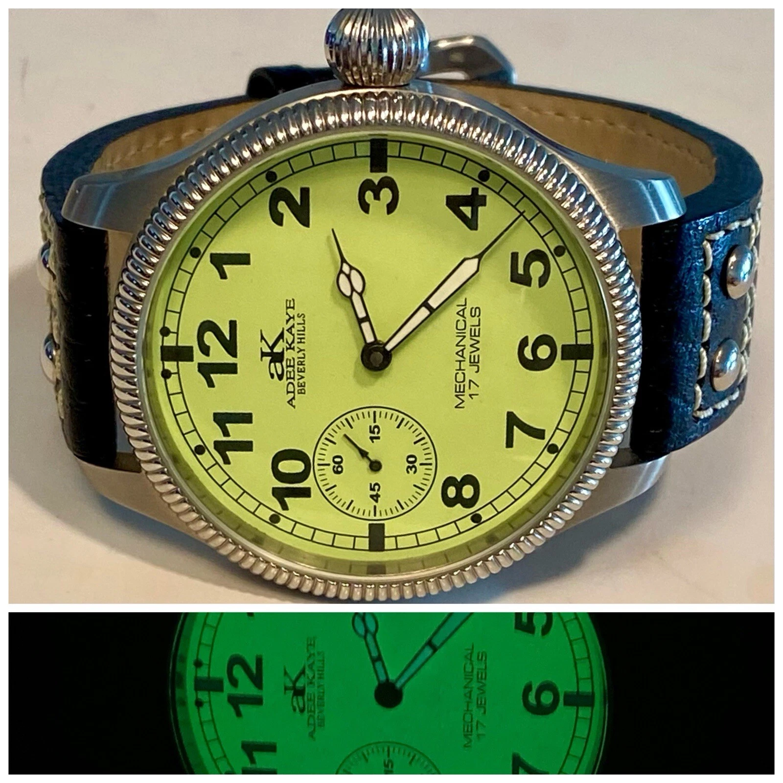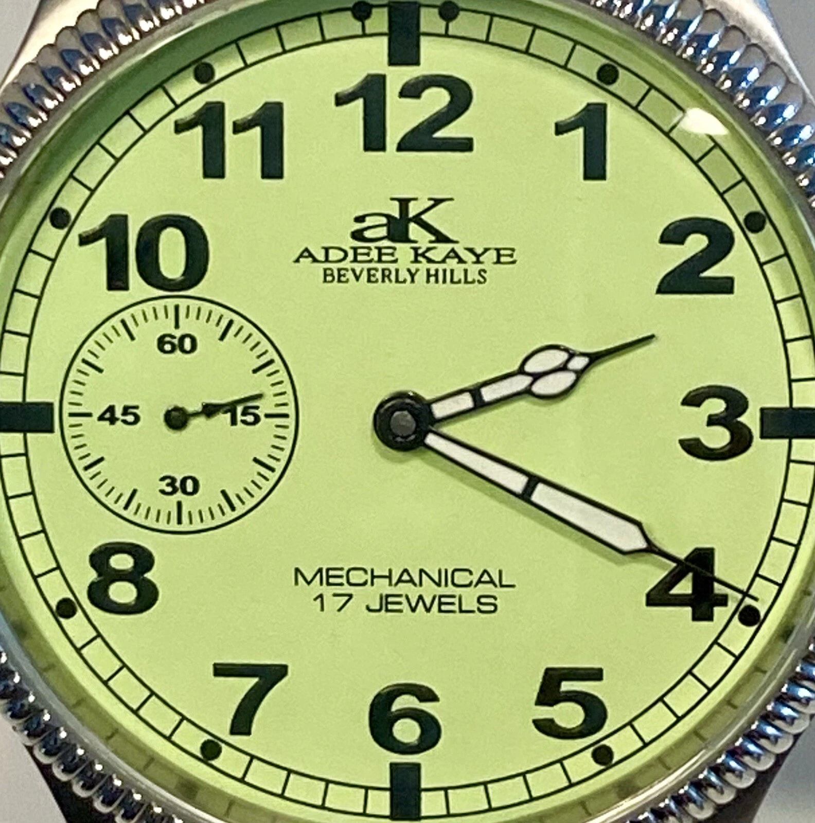 47mm Mechanical 17J Green/Luminous Dial MILLED Slvrtn Bezel ADEE KAYE Mens Watch