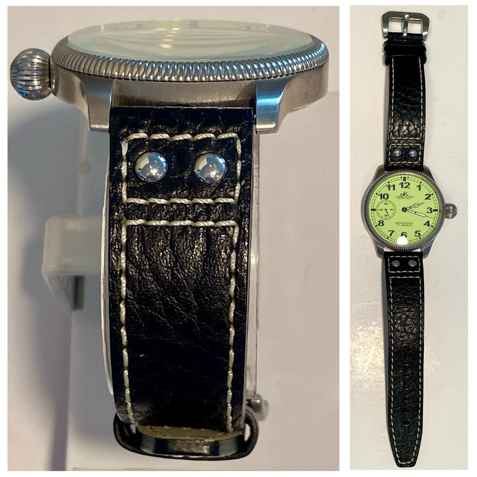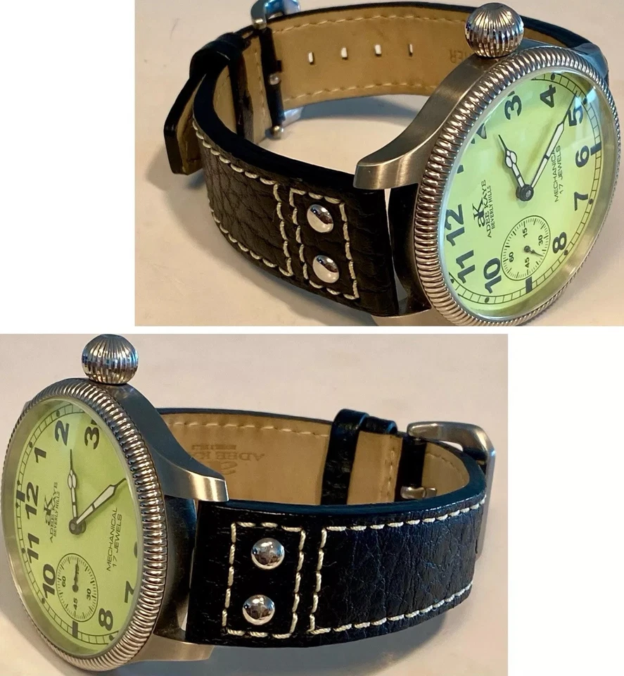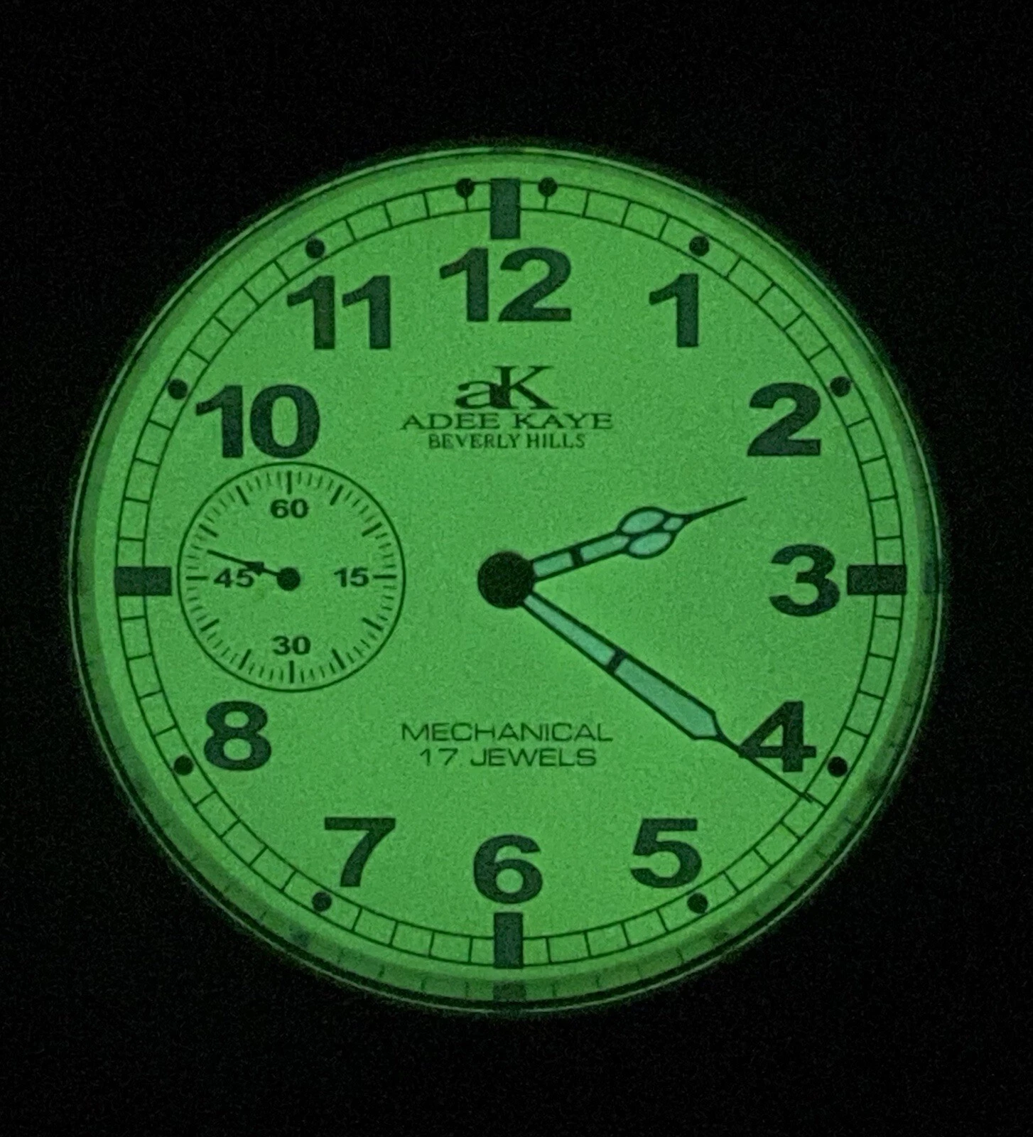47mm Mechanical 17J Green/Luminous Dial MILLED Slvrtn Bezel ADEE KAYE Mens Watch