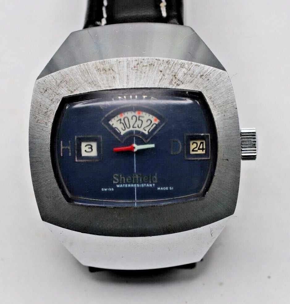 Sheffield Direct Read Mystery Dial Dashboard Watch 36mm Date Manual Wind UP