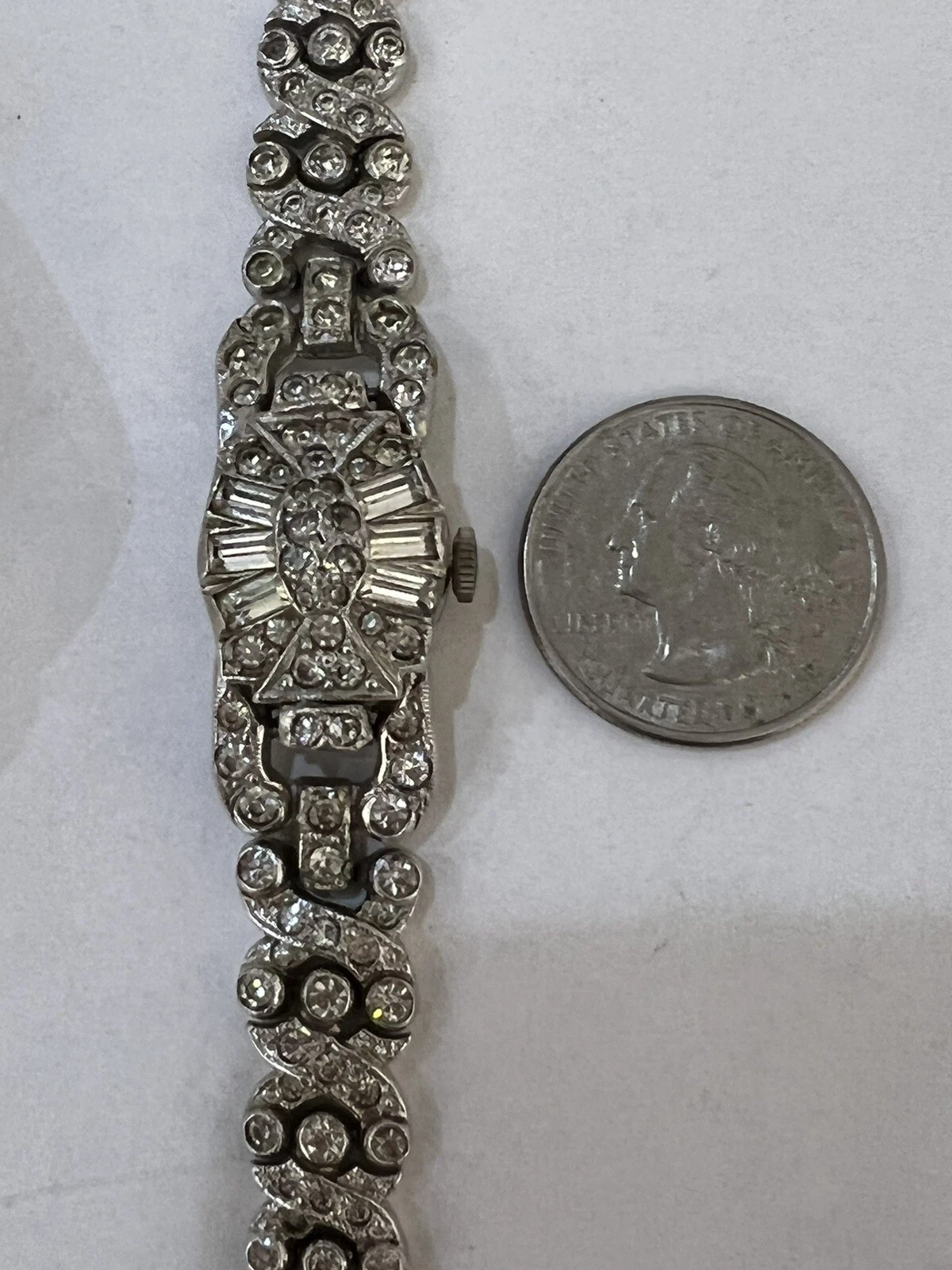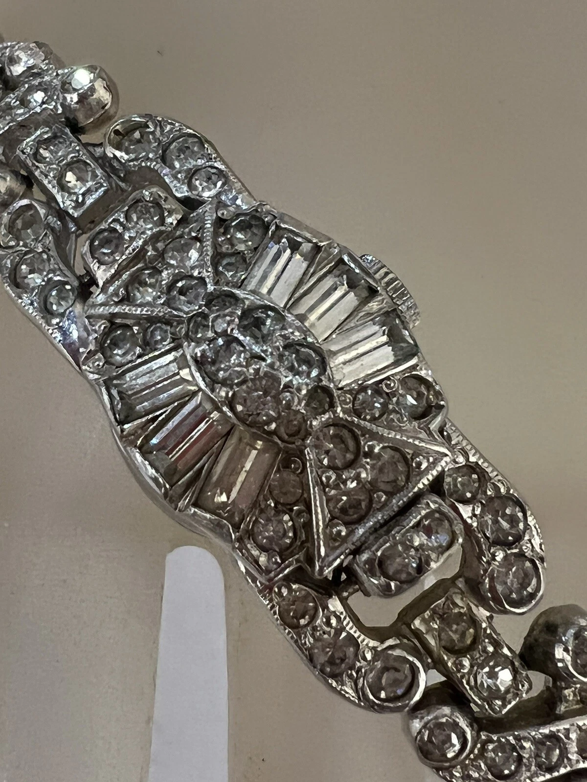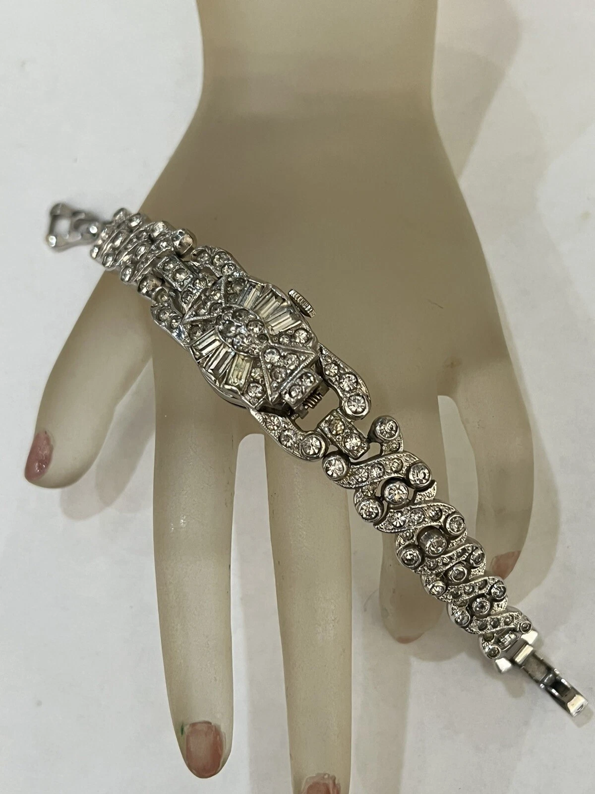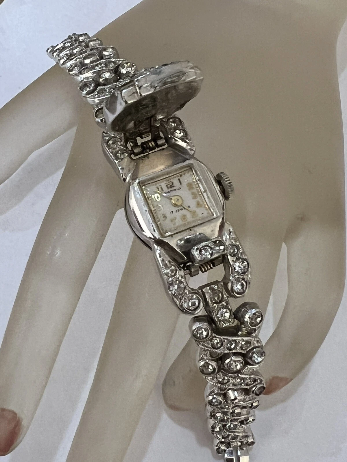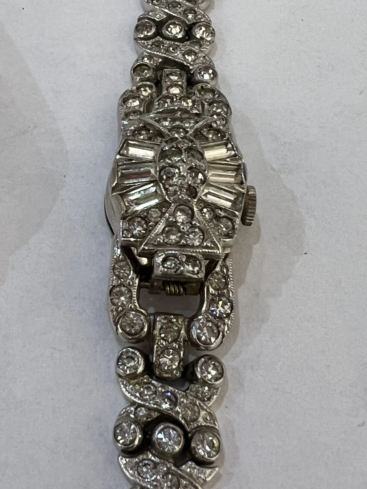 VINTAGE BEAUTIFUL SHEFFIELD RHINESTONE RHODIUM PLATE WATCH BRACELET