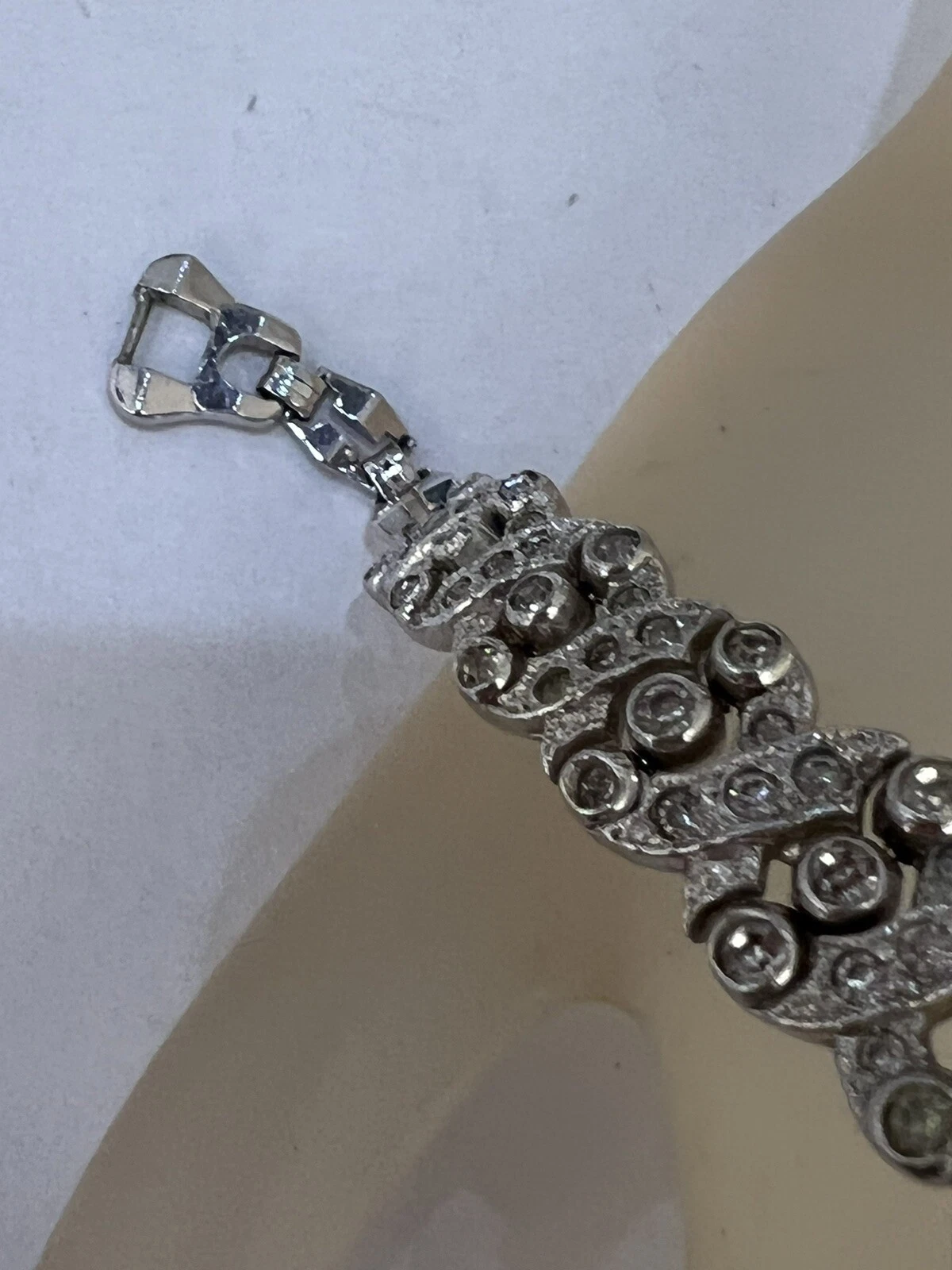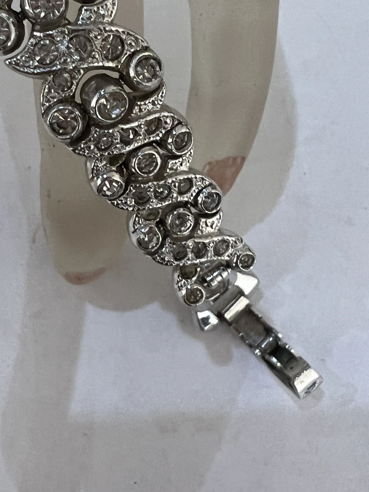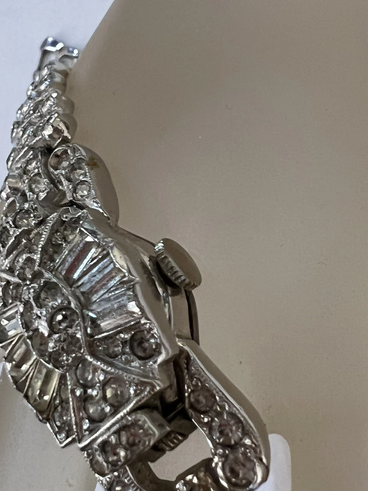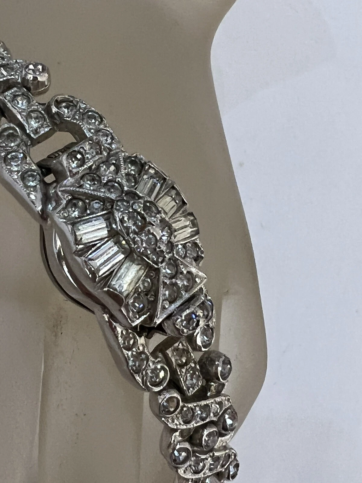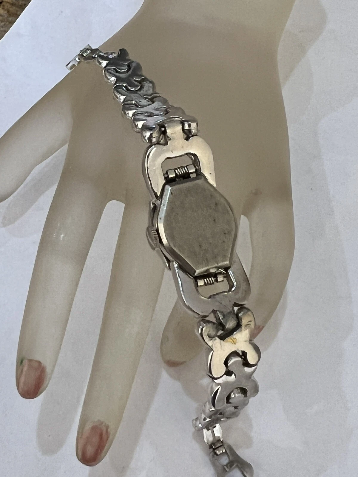 VINTAGE BEAUTIFUL SHEFFIELD RHINESTONE RHODIUM PLATE WATCH BRACELET