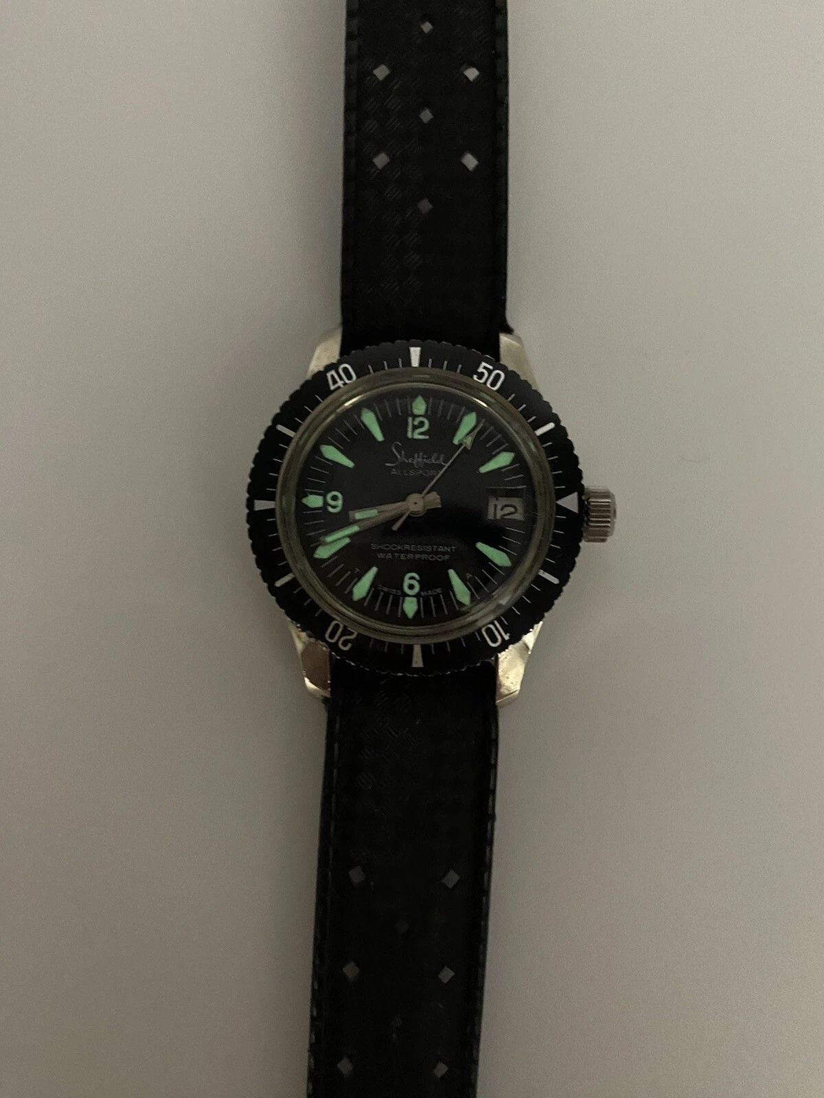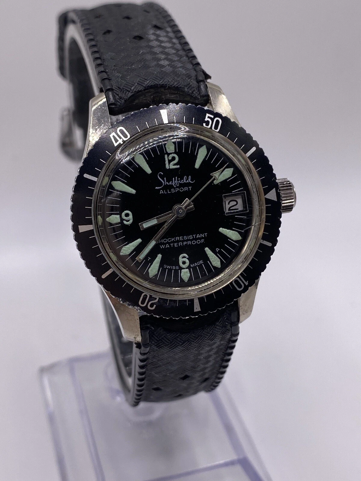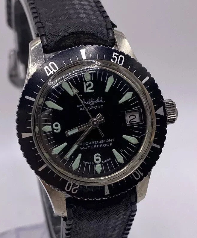 Vintage Sheffield Swiss Made Divers Lume Date Dial Ladies Watch New Batt